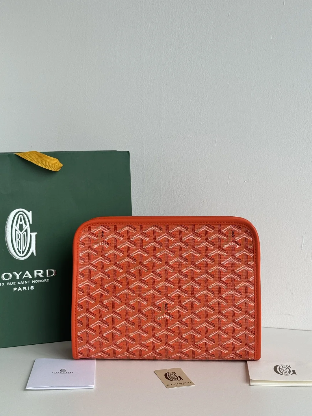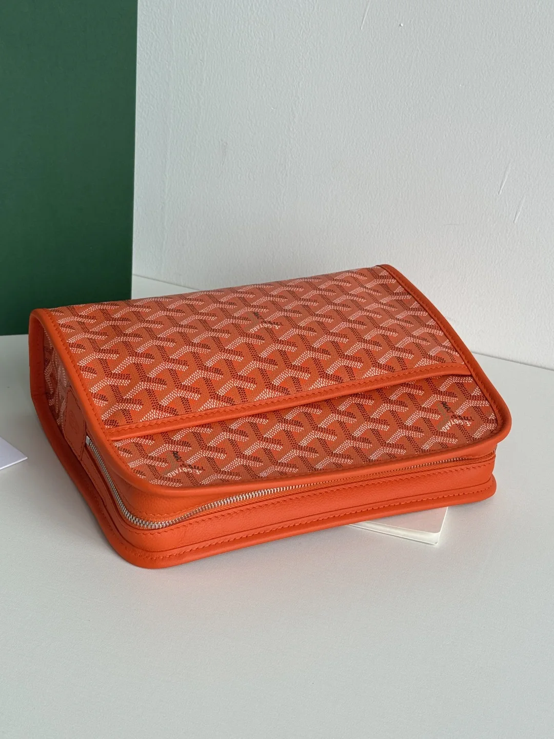 Goyard Jouvence Toiletry Pouch: A classic of Goyard s Art of Living and Travel. Handcrafted in calfskin with a yellow lining, it features a simple, lightweight design with one interior and one exterior compartment. Durable and with a clean interior, its elegant and stylish appearance makes it an indispensable functional item for travel. The large toiletry pouch is perfect for storing large-capacity items. The small toiletry pouch is ideal for carrying essentials for quick touch-ups on the go, and can also be used as a small bag or clutch, representing Goyard s practicality and urban style. Size: 25x18 7cm. Reference: 020802