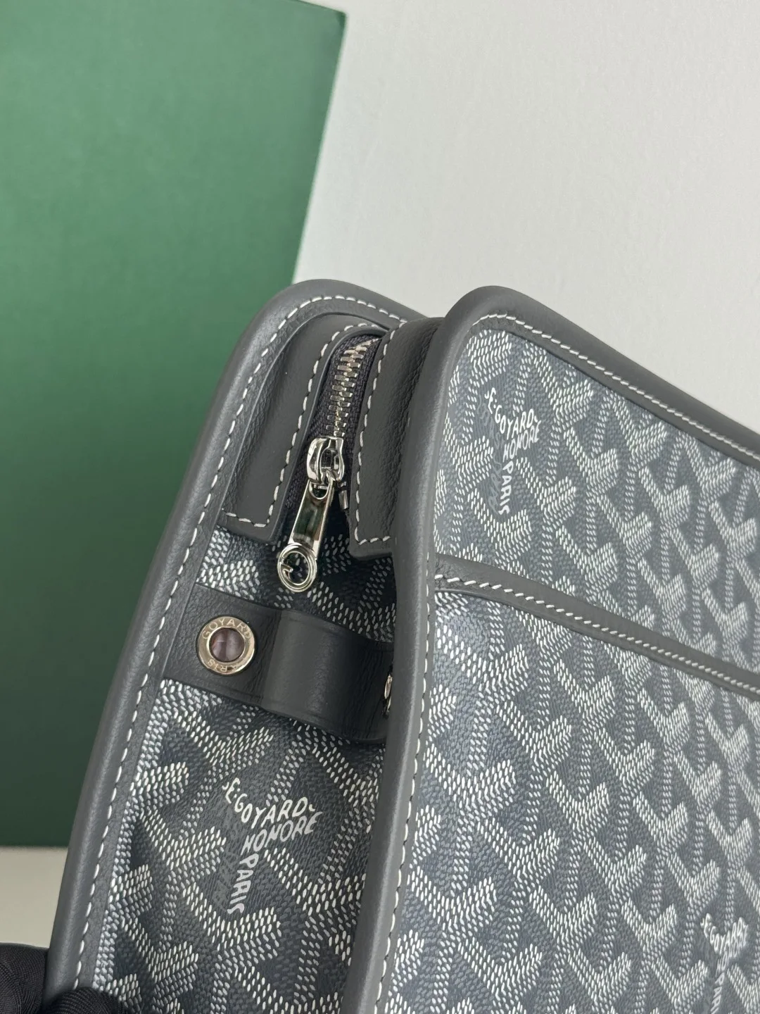 The Goyard Jouvence Toiletry Pouch series has always been a classic of Goyard s art of living and travel! Handcrafted in cowhide leather with a yellow fabric lining, it features a simple and lightweight design with one compartment inside and out. Sturdy and durable, with a clean and tidy interior and an elegant and stylish exterior, it is an indispensable functional product for travel. The large toiletry pouch is the perfect choice for storing large capacity items. The small toiletry pouch is ideal for carrying on the go, accommodating quick touch-up items, and can also be used as a small bag or clutch, representing Goyard s practicality and urban style. Size: 25x18 7cm. Code: 020802