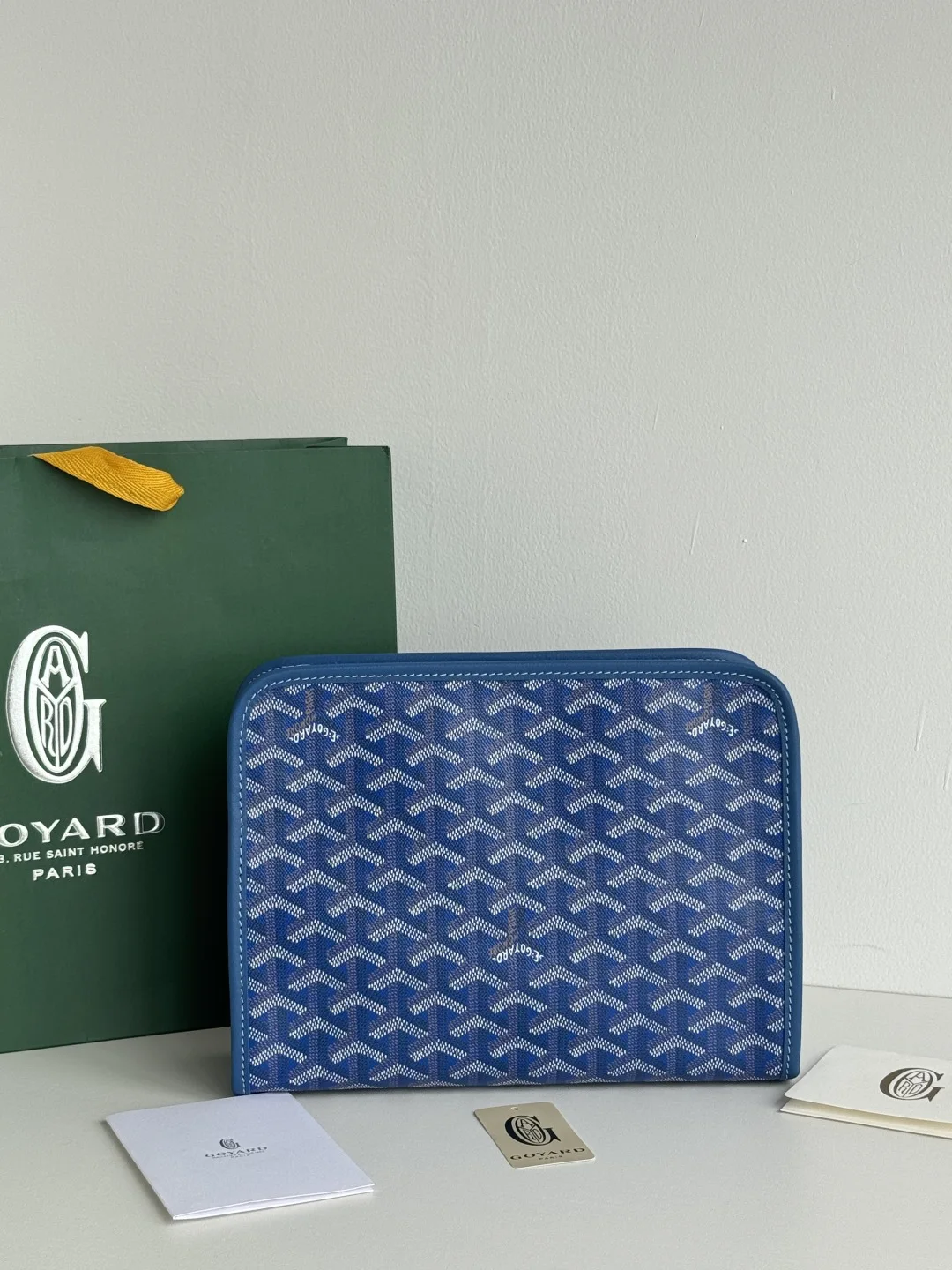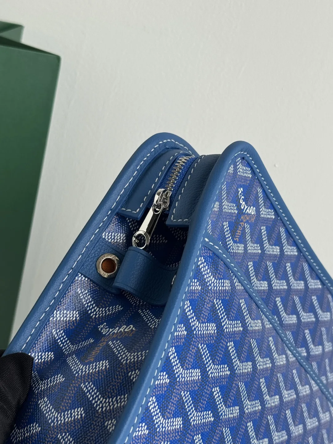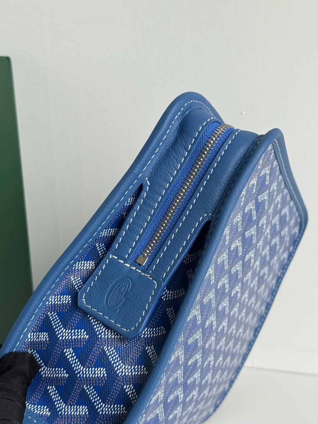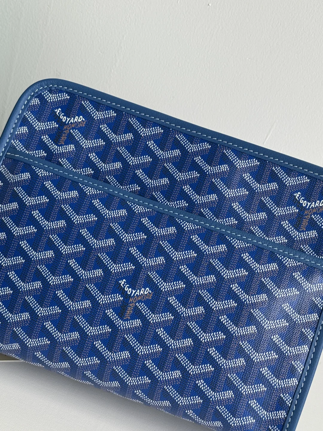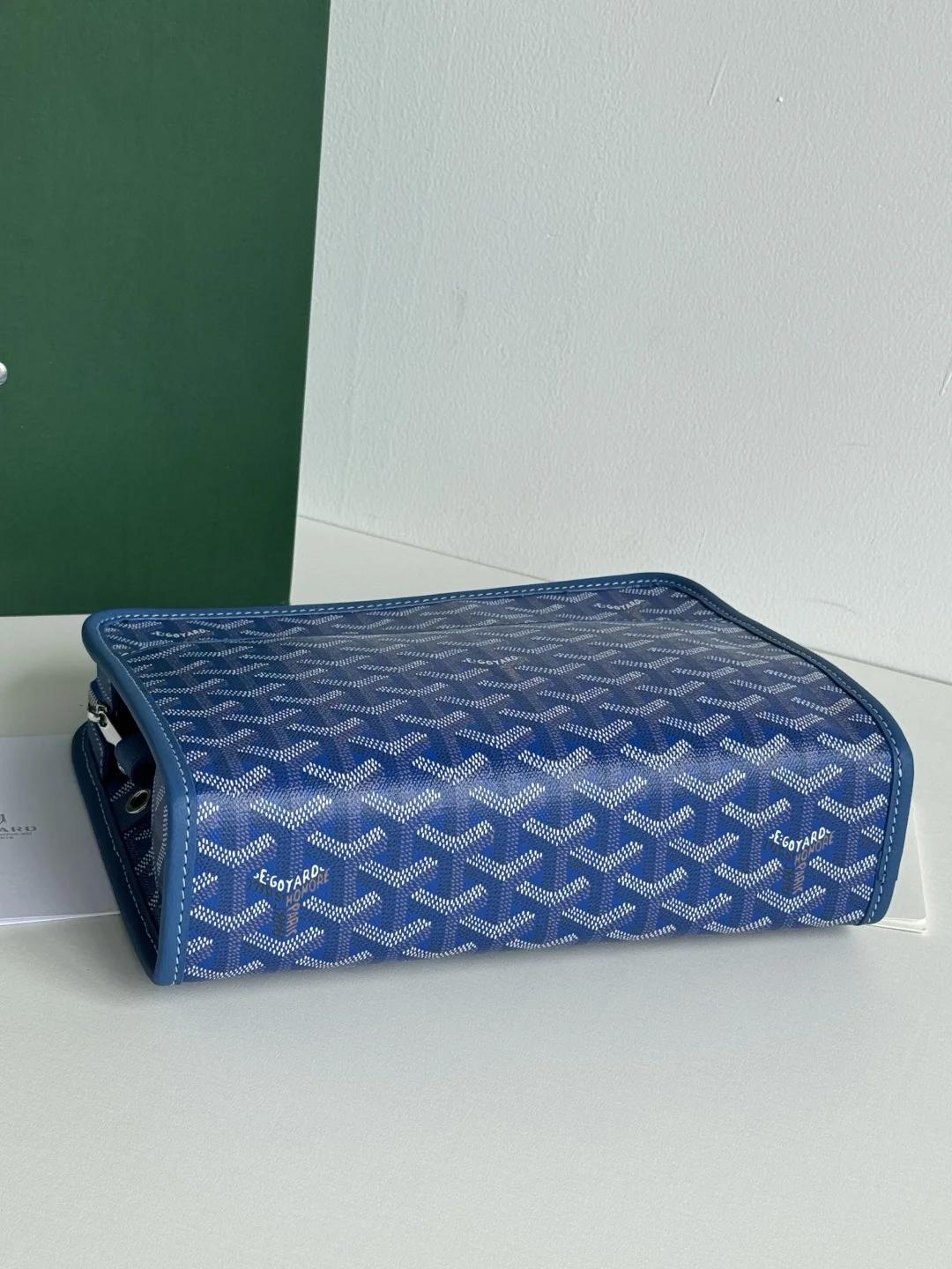 The Goyard Jouvence Toiletry Pouch series has always been a classic of Goyard s art of living and travel! Handcrafted in cowhide leather with a yellow lining, it features a simple and lightweight design with one compartment inside and out. Sturdy and durable, with a clean and tidy interior and an elegant and stylish appearance, it is an indispensable functional product for travel. The large toiletry pouch is the perfect choice for storing large capacity items. The small toiletry pouch is ideal for carrying on the go, accommodating quick touch-up items, and can also be used as a small bag or clutch, representing Goyard s practicality and urban style. Size: 25x18 7cm. Code: 020802