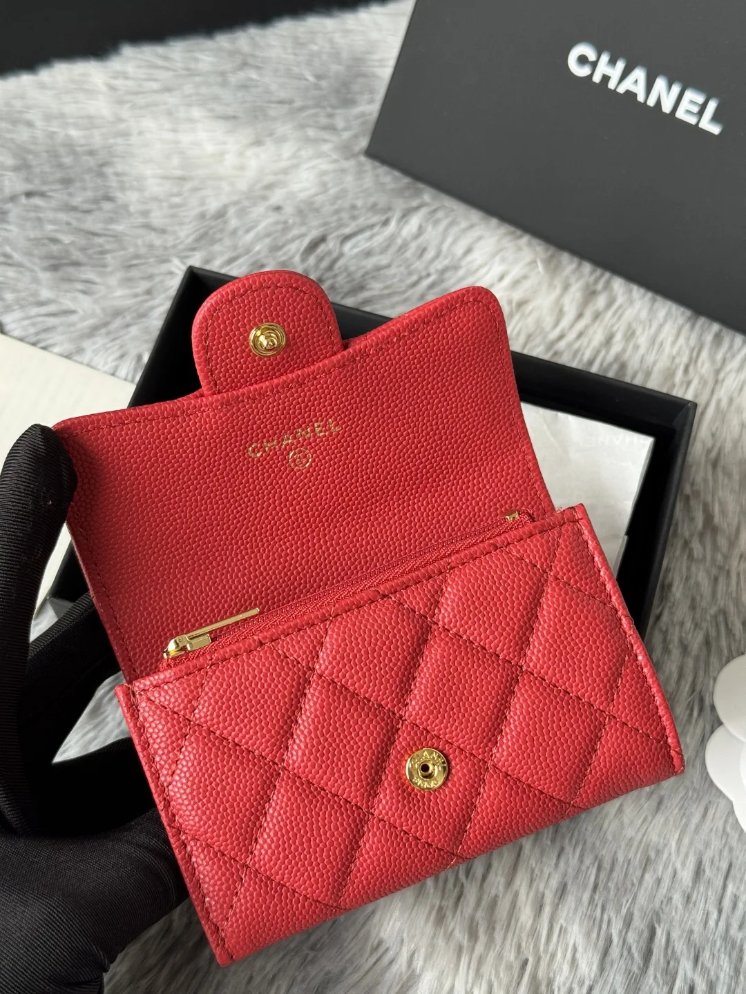 Chanel 2025 New CF Card Holder, Original Quality. This card holder is more practical and comes in the colors shown. It features a coin pocket on the back and an interior zipper for change. This mini and adorable version is crafted from caviar leather. Highly recommended Chanel card holder. Made with imported Italian leather. Style number: 0219 (with interior zipper). Hardware: Full steel wheat. Colors as shown. Dimensions: 11*8.5*3cm.