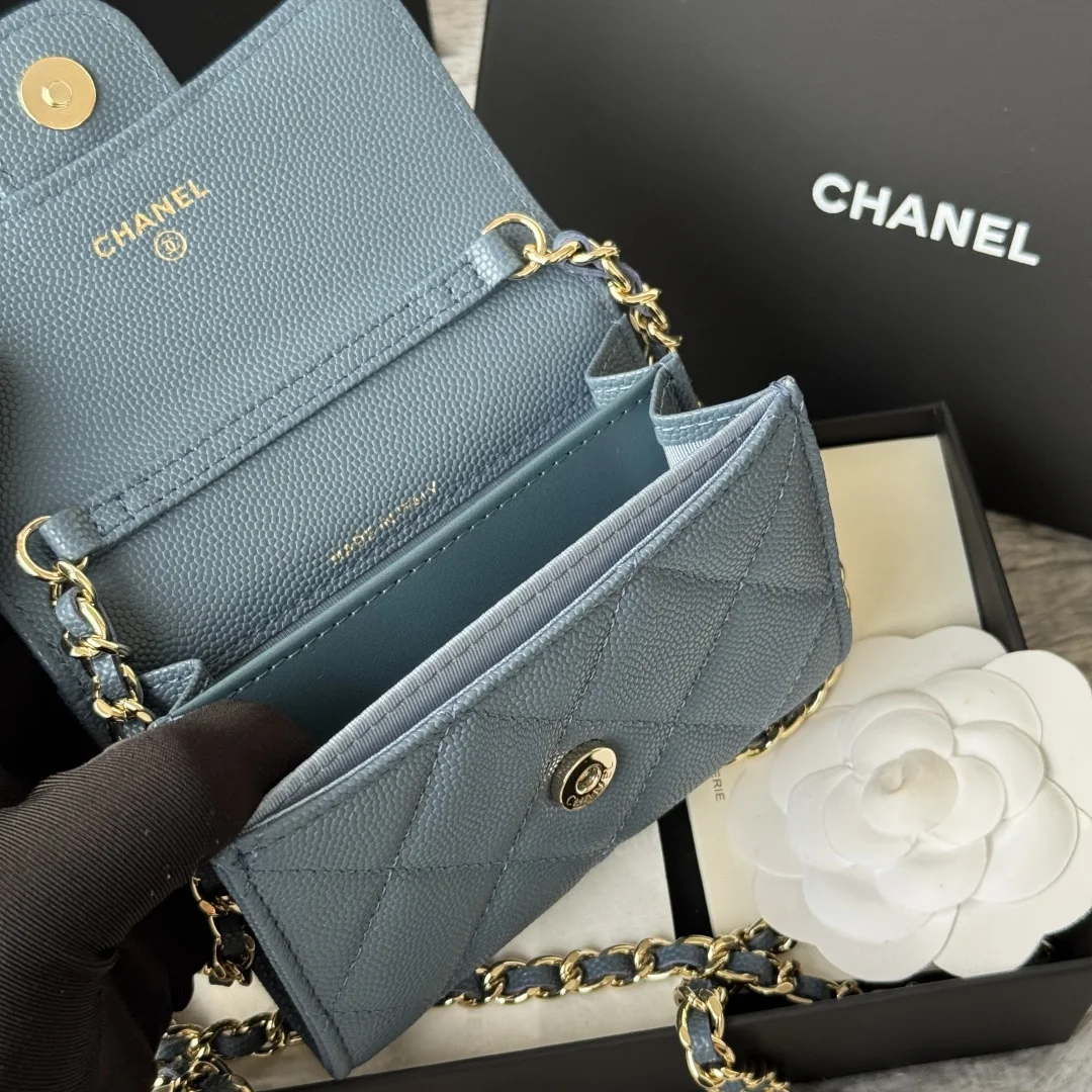 SS19 Magnetic Clasp Chain Bag, New Upgrade in 2025, Magnetic Snap Small Chanel Chain Bag, Made of Caviar Leather, Can Hold Lipstick, Credit Cards, and Some Small Change. Style Number: 0238 (Original Quality). Size: 8.5*12.5*2.5cm. Full Set of Packaging, Box, Card, Ribbon, and Dust Bag. Exclusive Photoshoot
