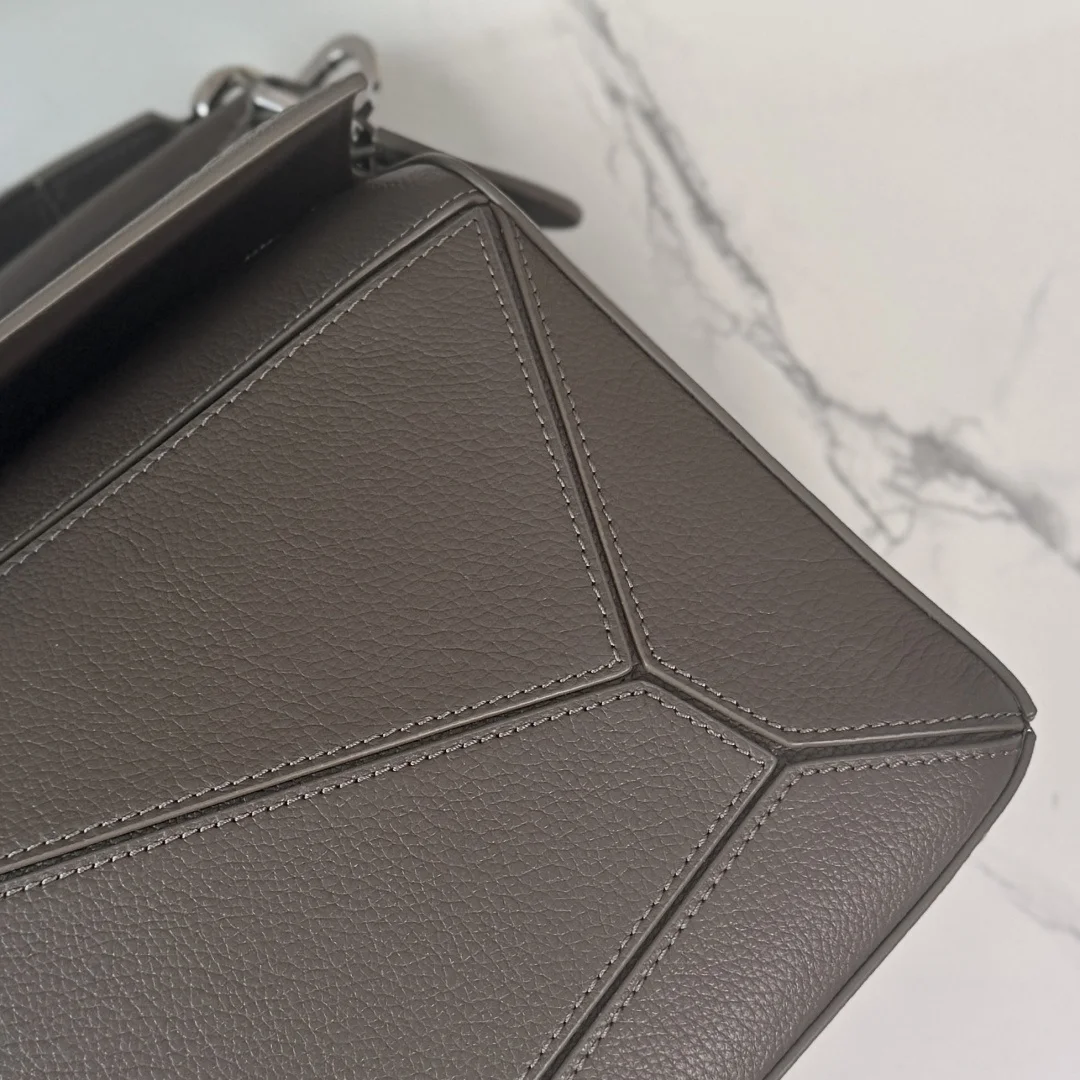 LOEWE new size large soft deerskin Puzzle bag features a cuboid shape outlined with distinctive geometric lines. This large version is made of deerskin leather and can be carried o..
