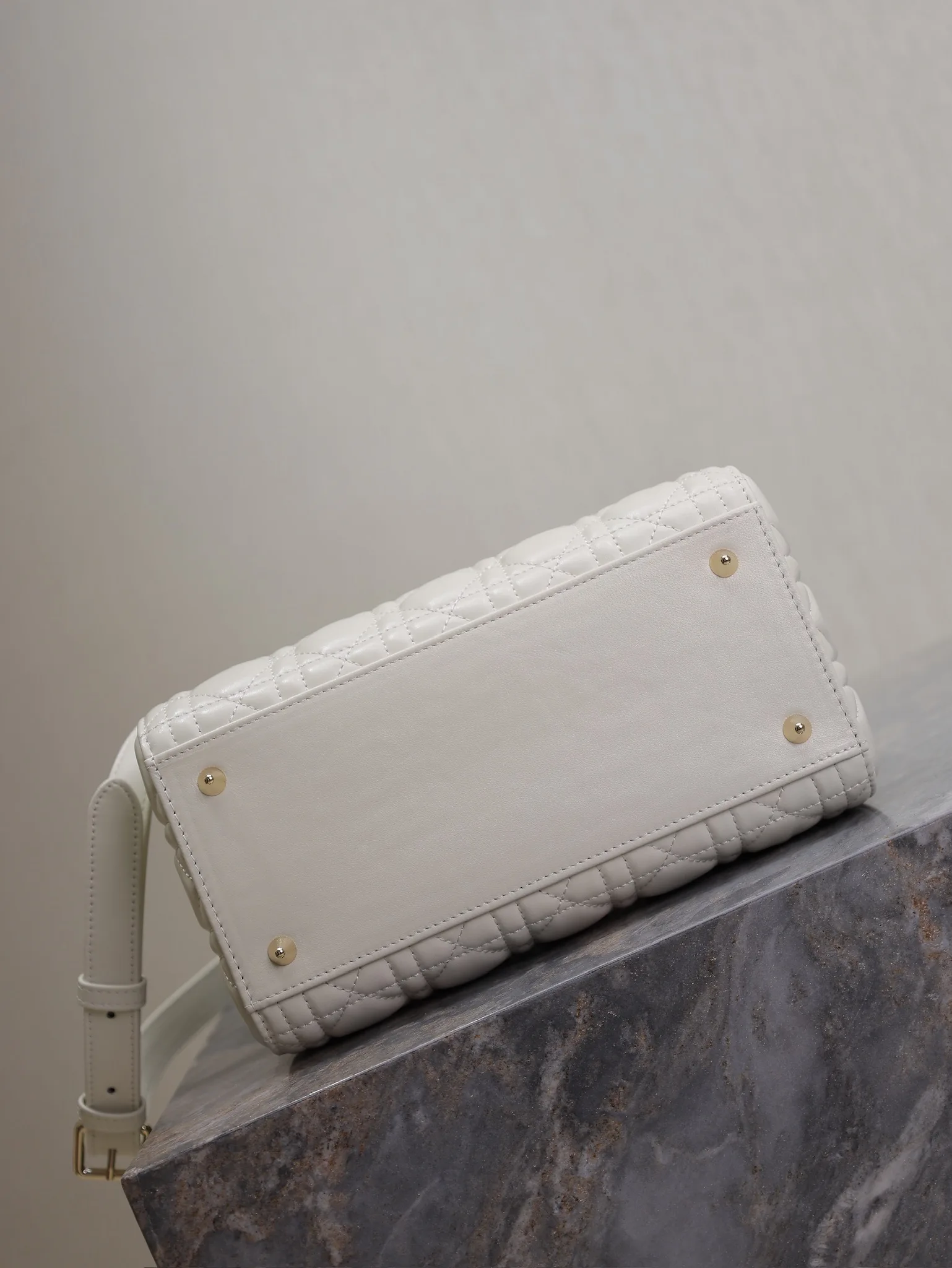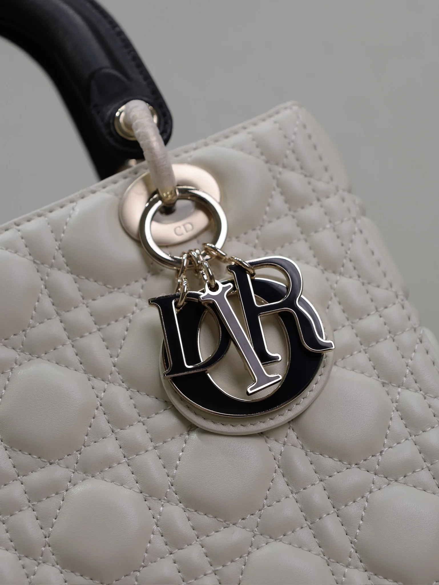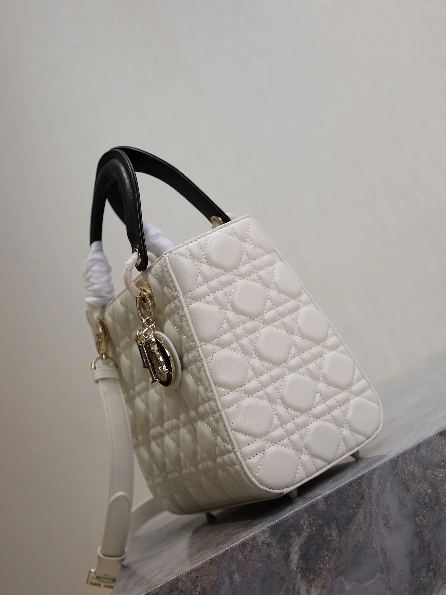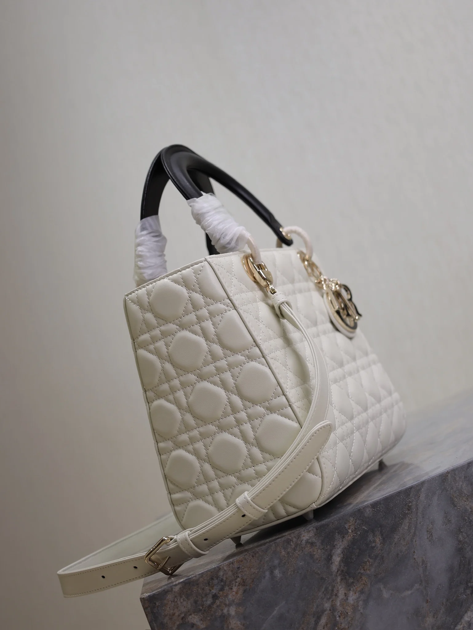 Lady Dio.r White and Black / Five-Grid Lambskin Adjustable Shoulder Strap /