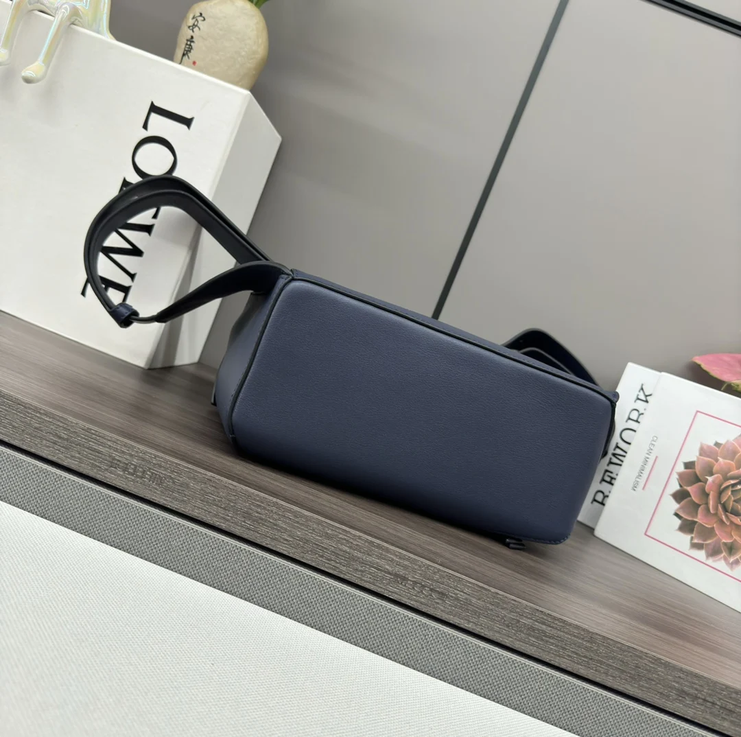 Loewe new version small classic calfskin Puzzle belt bag. The Puzzle s unique geometric lines are created by its rectangular shape and precise cutting technique. This small belt bag is crafted in classic calfskin with overlapping edges. It can be worn on the shoulder or crossbody. * Adjustable shoulder strap with metal buckle closure, engraved with the LOEWE logo * Zip closure with calfskin zip pull * External zip pocket and internal slip pocket * One external zip pocket * Herringbone cotton canvas lining * Anagram embossed size: 24*16*10.5 Model: 052344