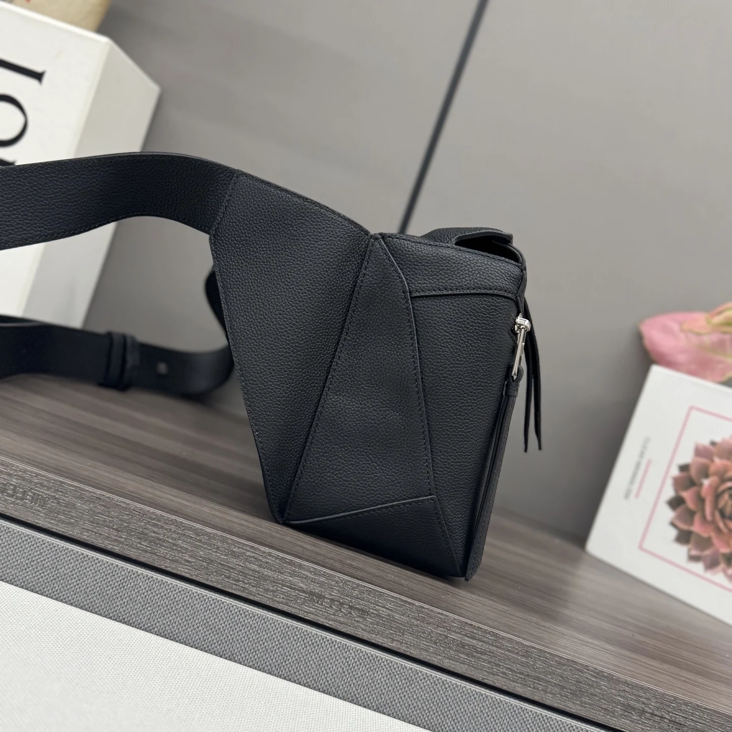 Loewe New Version Small Classic Grained Calfskin Puzzle Belt Bag. The Puzzle s distinctive geometric lines are created through a cuboid shape and precise cutting technique. This sm..