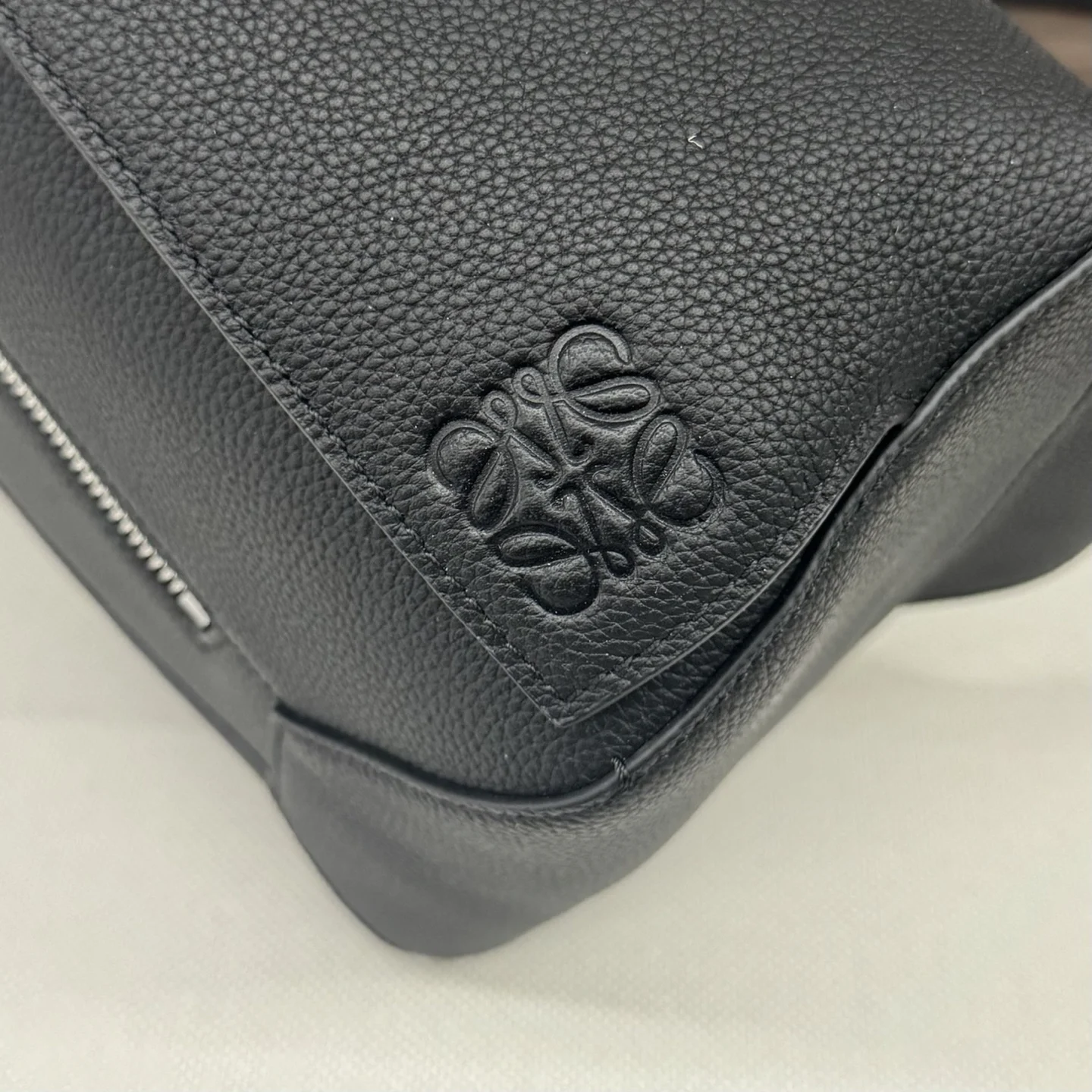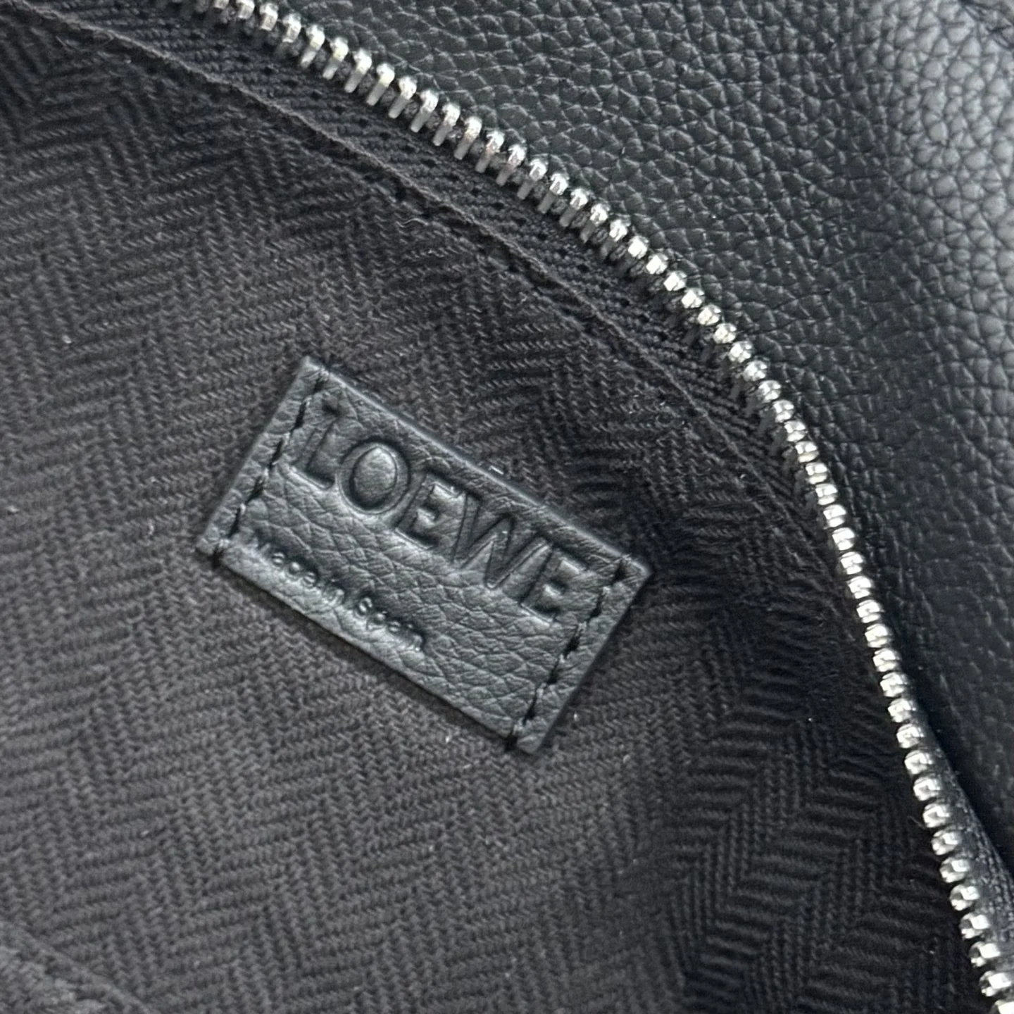 Loewe New Version Small Classic Grained Calfskin Puzzle Belt Bag. The Puzzle s distinctive geometric lines are created through a cuboid shape and precise cutting technique. This small belt bag is crafted in classic grained calfskin with overlapping edges. It can be worn on the shoulder or crossbody. *Adjustable shoulder strap with metal buckle closure, embossed with the LOEWE logo. *Zip closure with calfskin zip pull. *External zip pocket and internal slip pocket. *One external zip pocket. *Herringbone cotton canvas lining. *Anagram embossed. Size: 24*16*10.5. Model: 052344