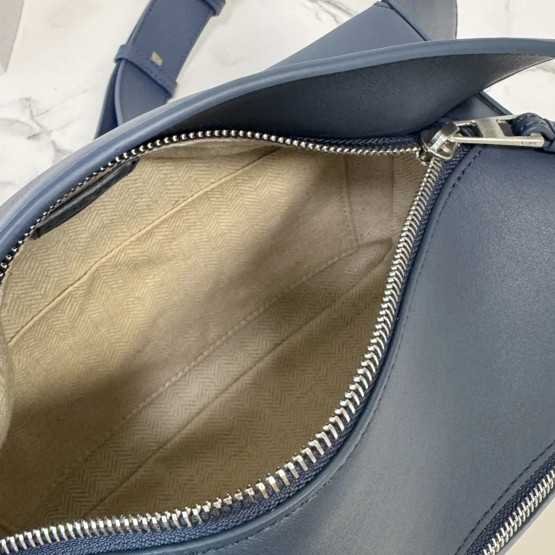 Loewe new version small classic calfskin Puzzle belt bag. The Puzzle s unique geometric lines are created by its rectangular shape and precise cutting technique. This small belt bag is crafted in classic calfskin with overlapping edges. It can be worn on the shoulder or crossbody. * Adjustable shoulder strap with metal buckle closure, engraved with the LOEWE logo * Zip closure with calfskin zip pull * External zip pocket and internal slip pocket * One external zip pocket * Herringbone cotton canvas lining * Anagram embossed. Size: 24*16*10.5 Model: 052344