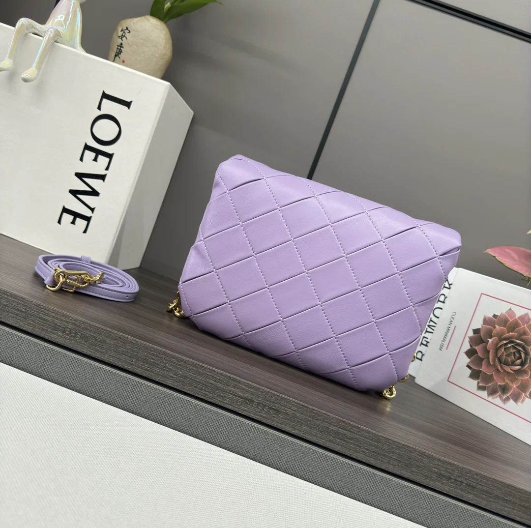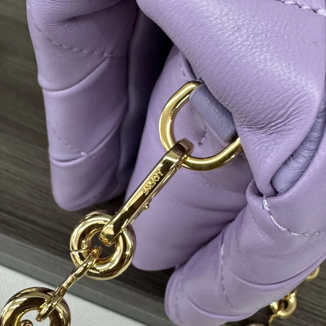 The LOEWE Padded Goya bag in shiny nappa lambskin takes inspiration from the Goya aesthetic, bringing a new sensory and tactile dimension through shiny nappa lambskin with goose feather padding. It features a detachable and adjustable metal donut chain and a detachable leather strap. This version is crafted from pleated lambskin, which is cut, sewn, and hand-woven. Can be worn on the shoulder or carried in hand.* Magnetic closure* This bag comes with a detachable chain and a leather strap* One main compartment, one zip pocket, and one slip pocket* Nappa lambskin lining* Model: 062466* Size: 23*9*17cm