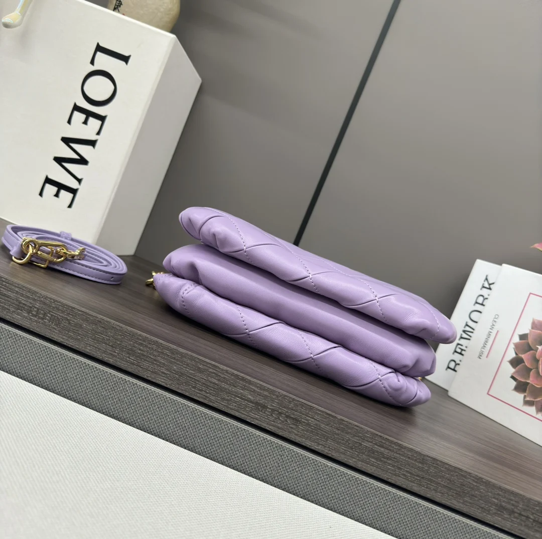 The LOEWE Padded Goya bag in shiny nappa lambskin takes inspiration from the Goya aesthetic, bringing a new sensory and tactile dimension through shiny nappa lambskin with goose fe..