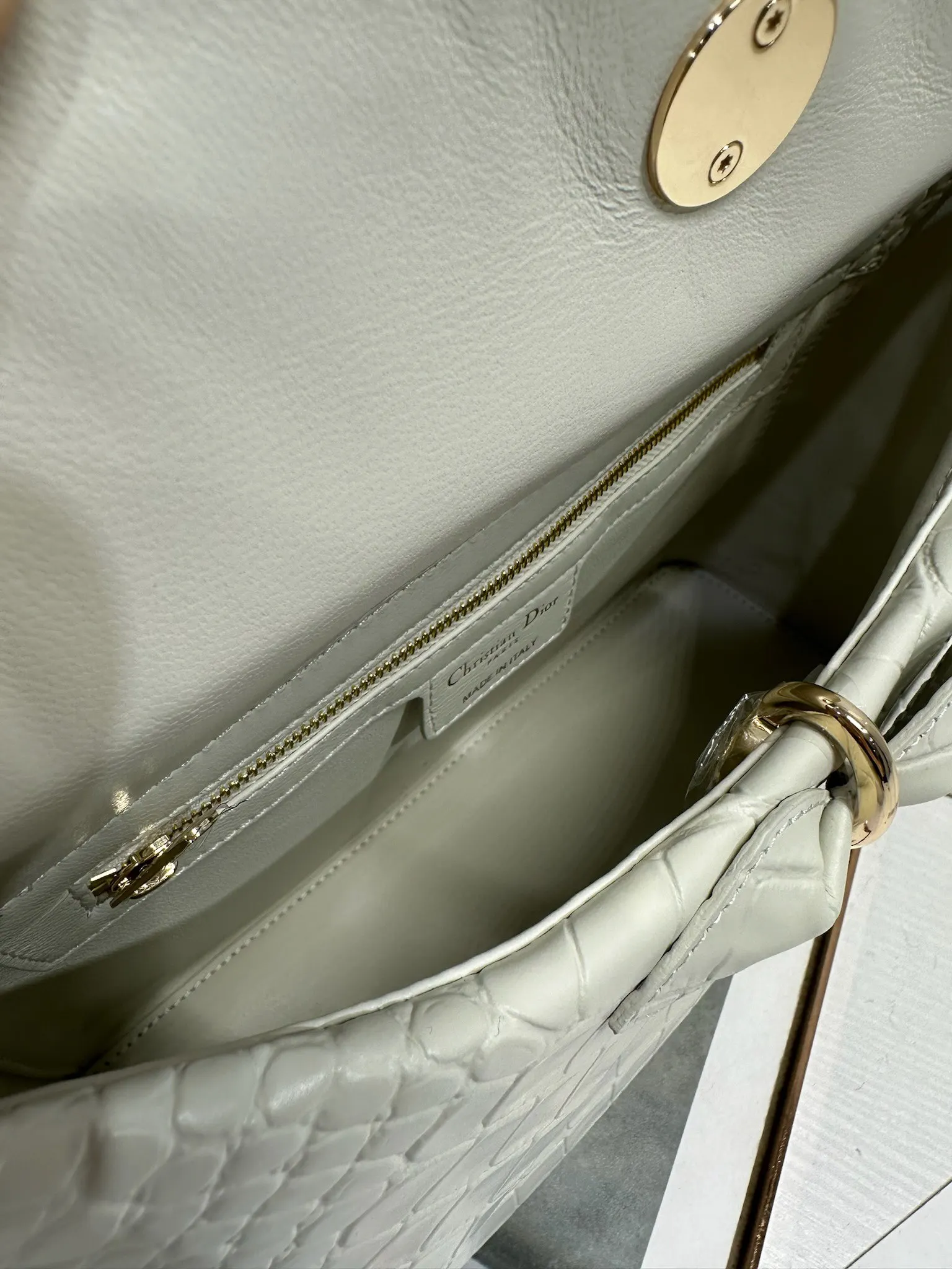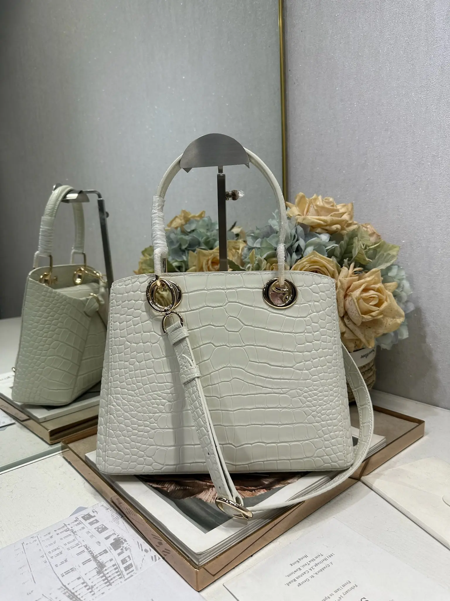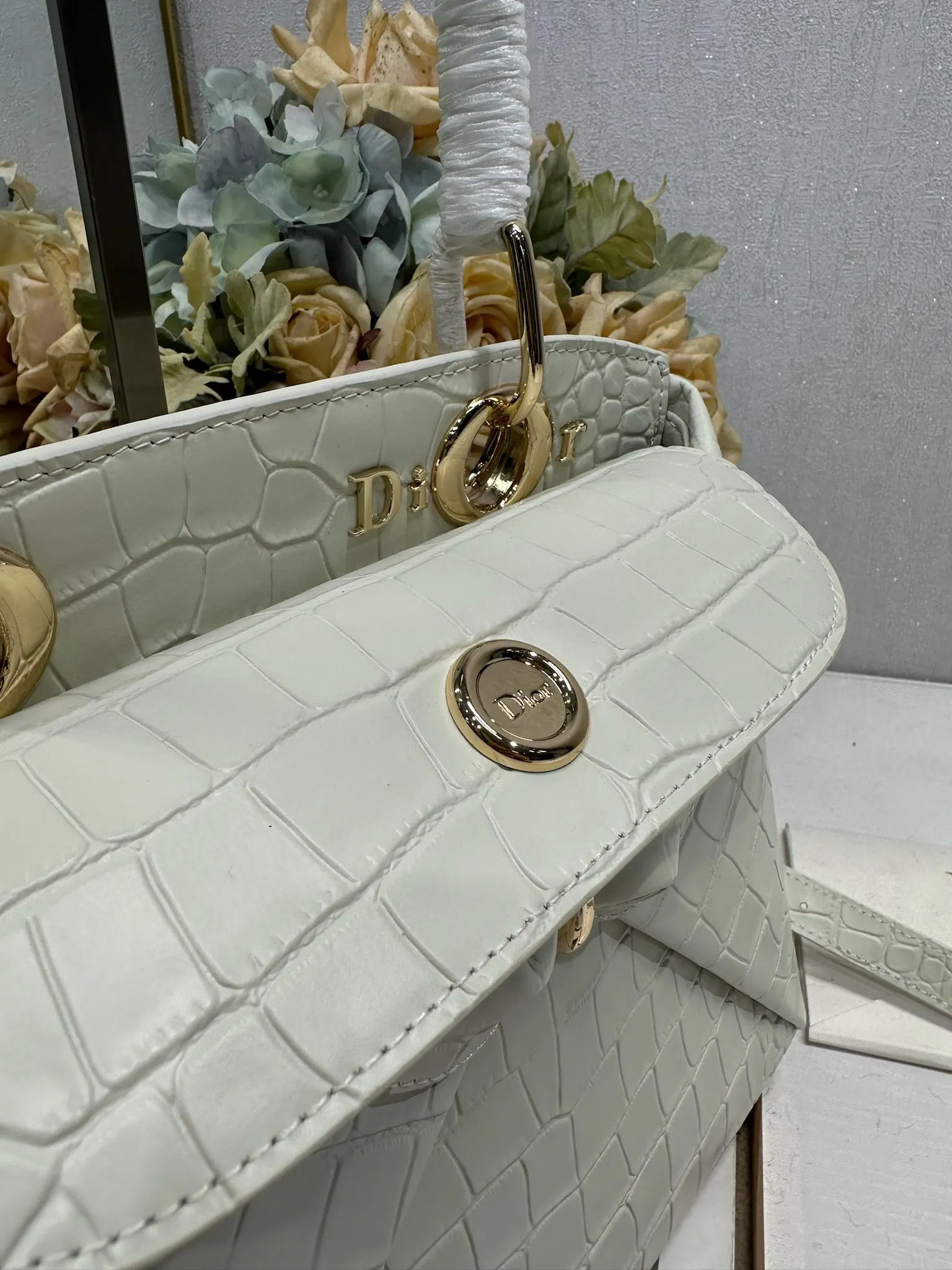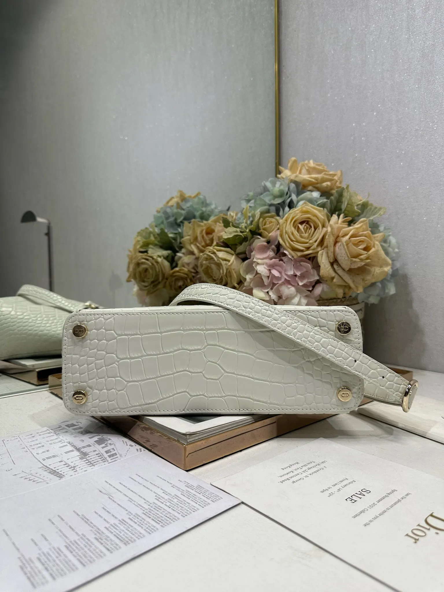 Dior Spring/Summer New Product Bow Tote Bag Crocodile Pattern White The new design features a rich color palette and a versatile silhouette suitable for many! Notably, this bag also comes with a leather long shoulder strap. Especially when traveling, you can switch to the long shoulder strap, freeing your hands and giving a relaxed and casual look. Model: 0737