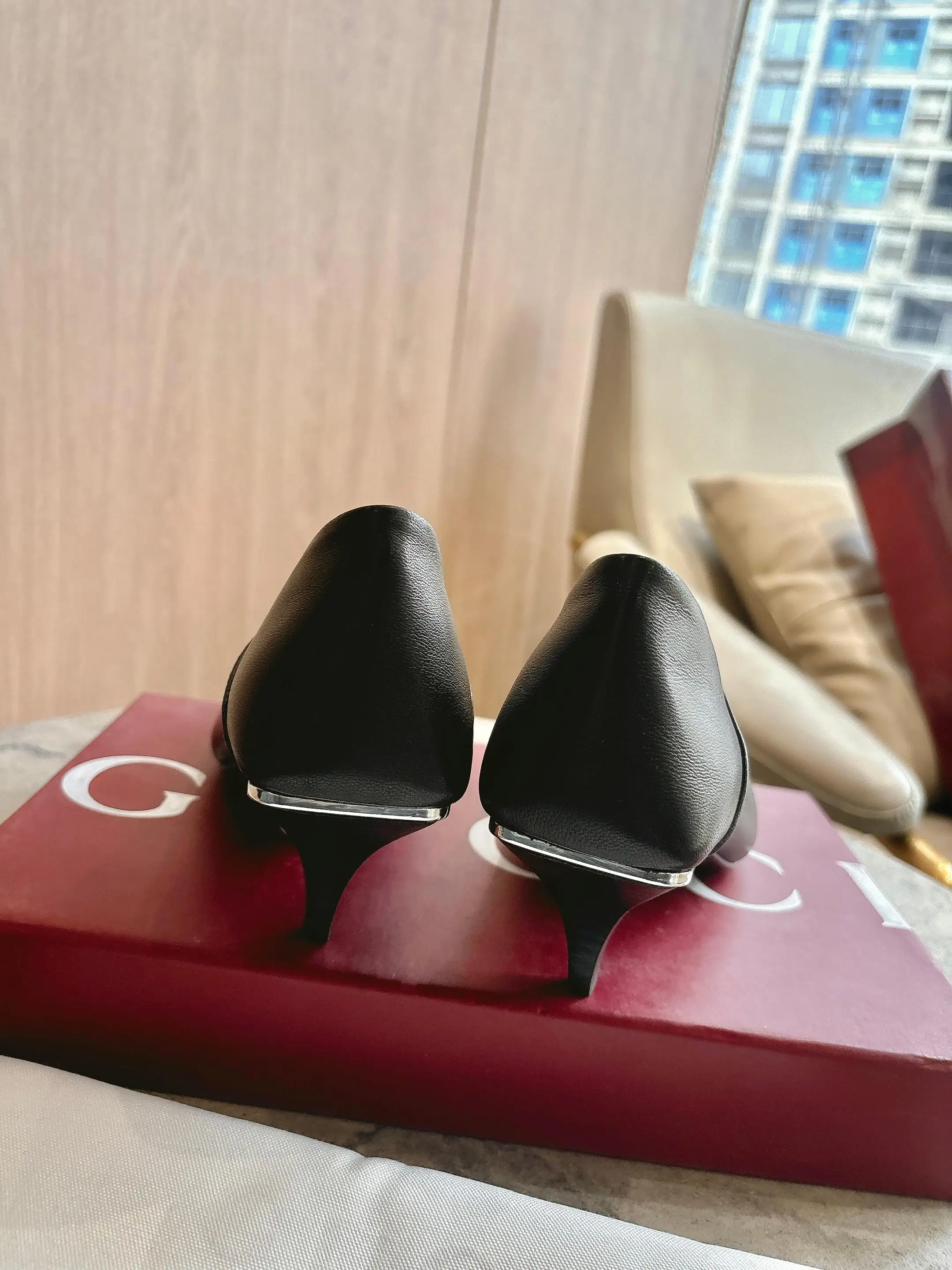 3570-1 黑 35-42 2026春夏系列全新上市 Vittoria系列以简约利落的加长鞋头与锥形鞋跟匠心呈献出众柔软的鞋履廓形 为 La Famiglia 增添亮眼新作 这款鞋履甄选柔软皮革打造 后帮可向下翻折 一展随性优雅气韵 其鞋款名称正源于此设计巧思