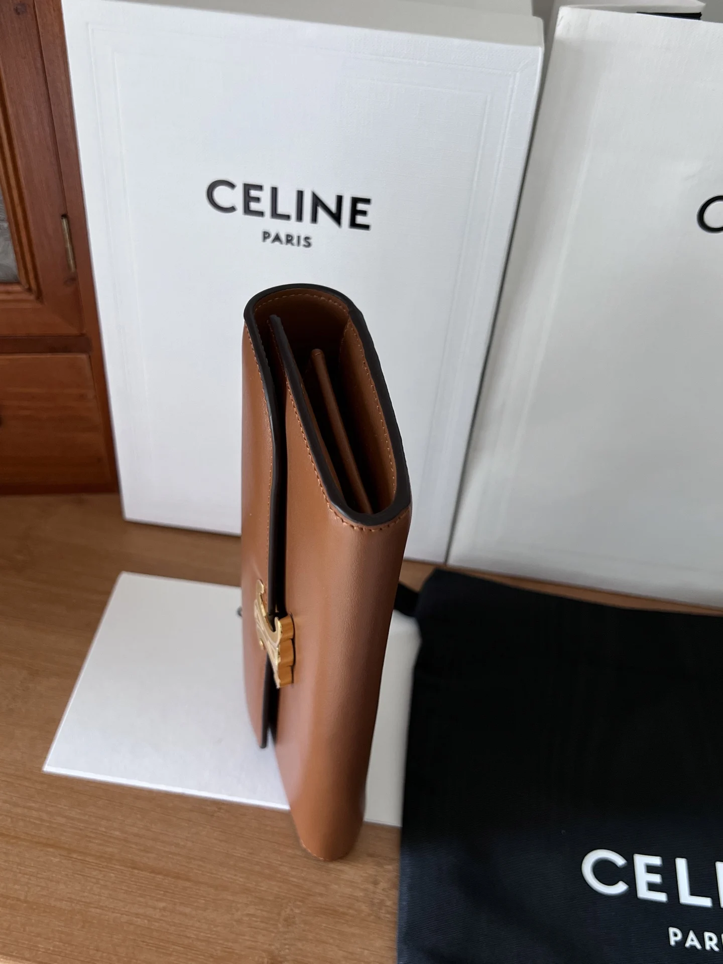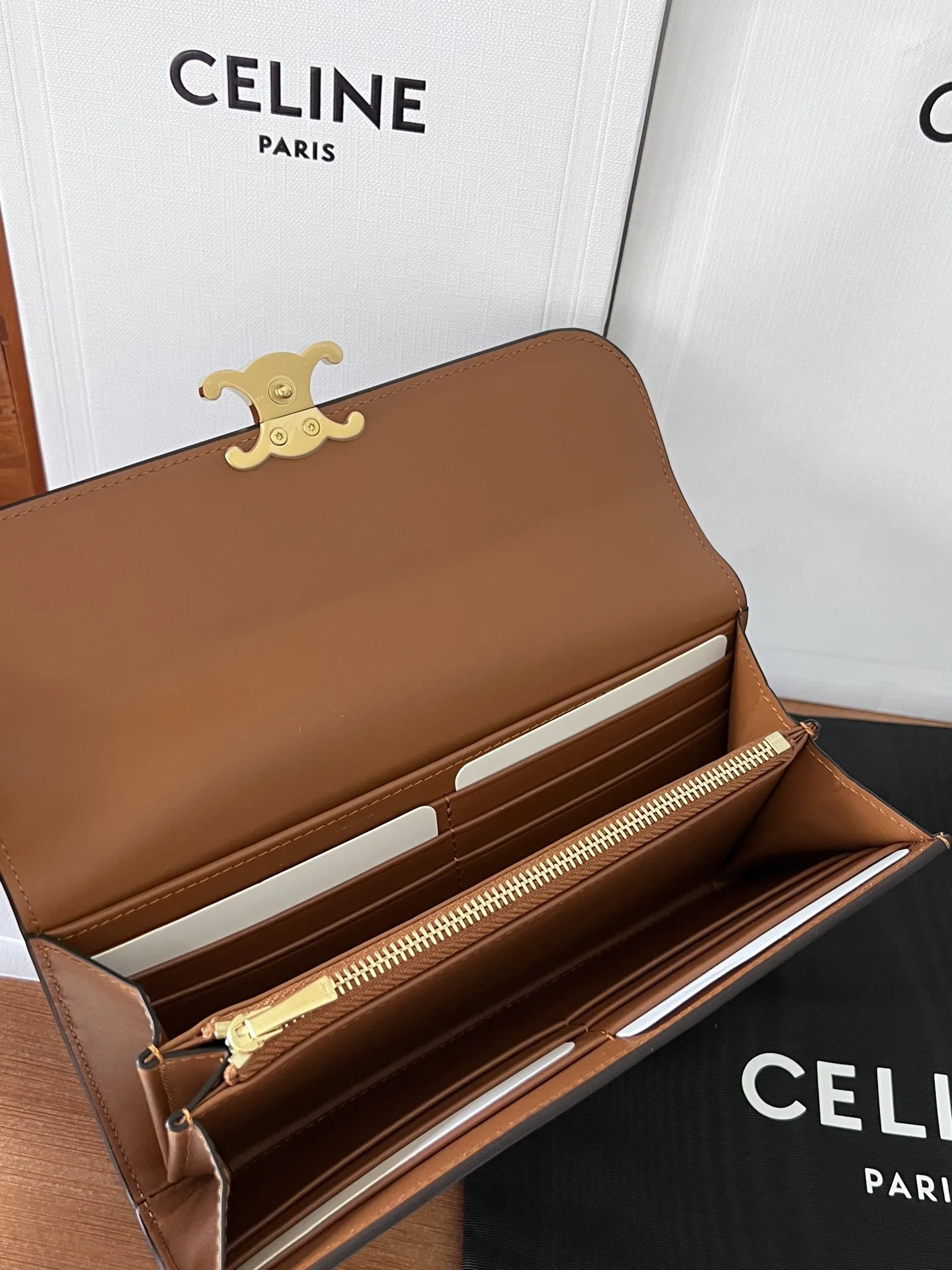 TRIOMPHE Large WalletReference: 10E313Product Information7 X 4 X 1 IN (19 X 10 X 3 CM)CalfskinCalfskin LiningTextileGold FinishingTRIOMPHE Metallic Snap Button1 Zipped Coin Pocket12 Card Slots2 Gusset Compartments1 Flat PocketReference: 10E313