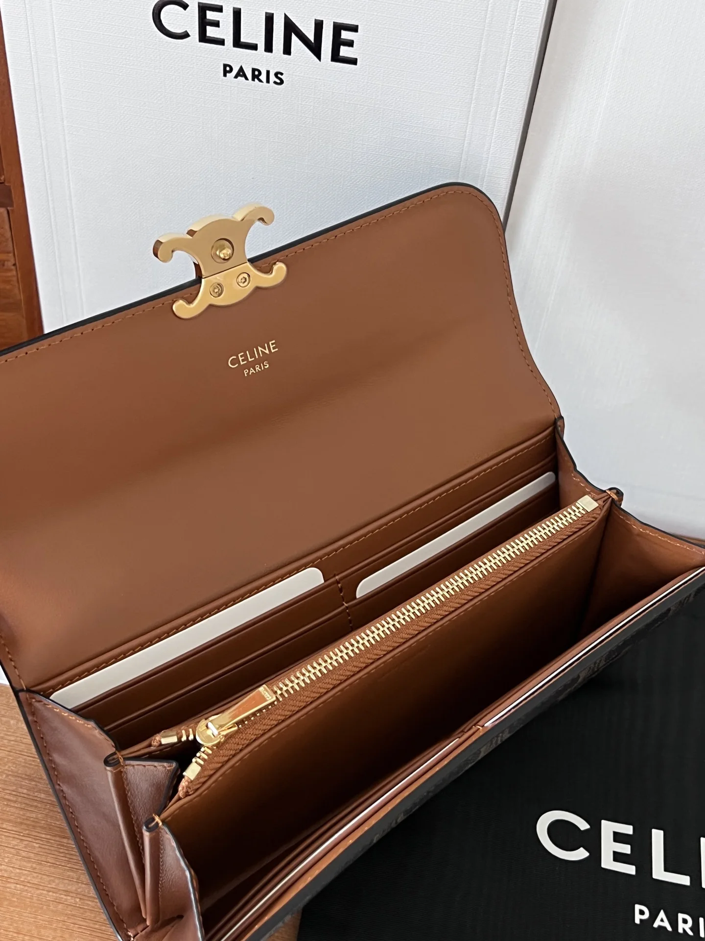 TRIOMPHE Large Wallet Product Information Reference: 10E313 7 X 4 X 1 IN (19 X 10 X 3 CM) Calfskin Lining: Calfskin Textile GOLD FINISH METAL TRIOMPHE snap button 1 zipped pocket 12 card slots 2 gusset compartments 1 flat pocket Reference: 10E313