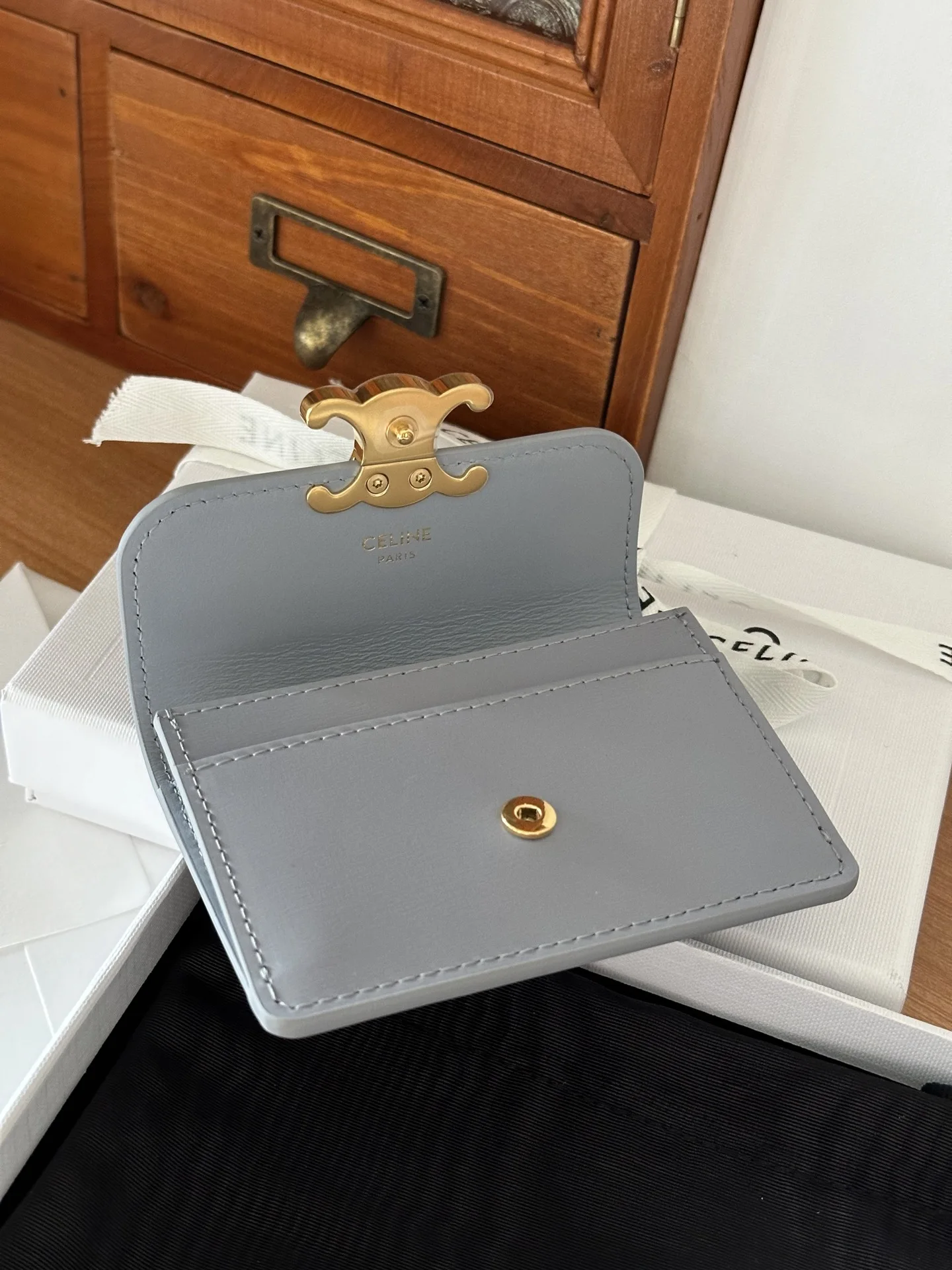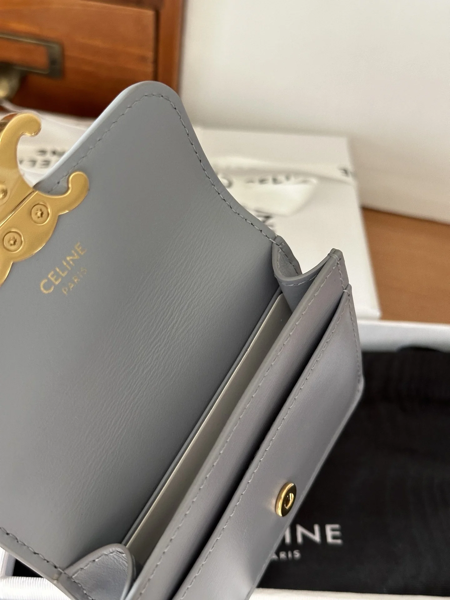 Celine 10i5834 TRIOMPHE Glossy Cowhide Leather Flap Card Holder