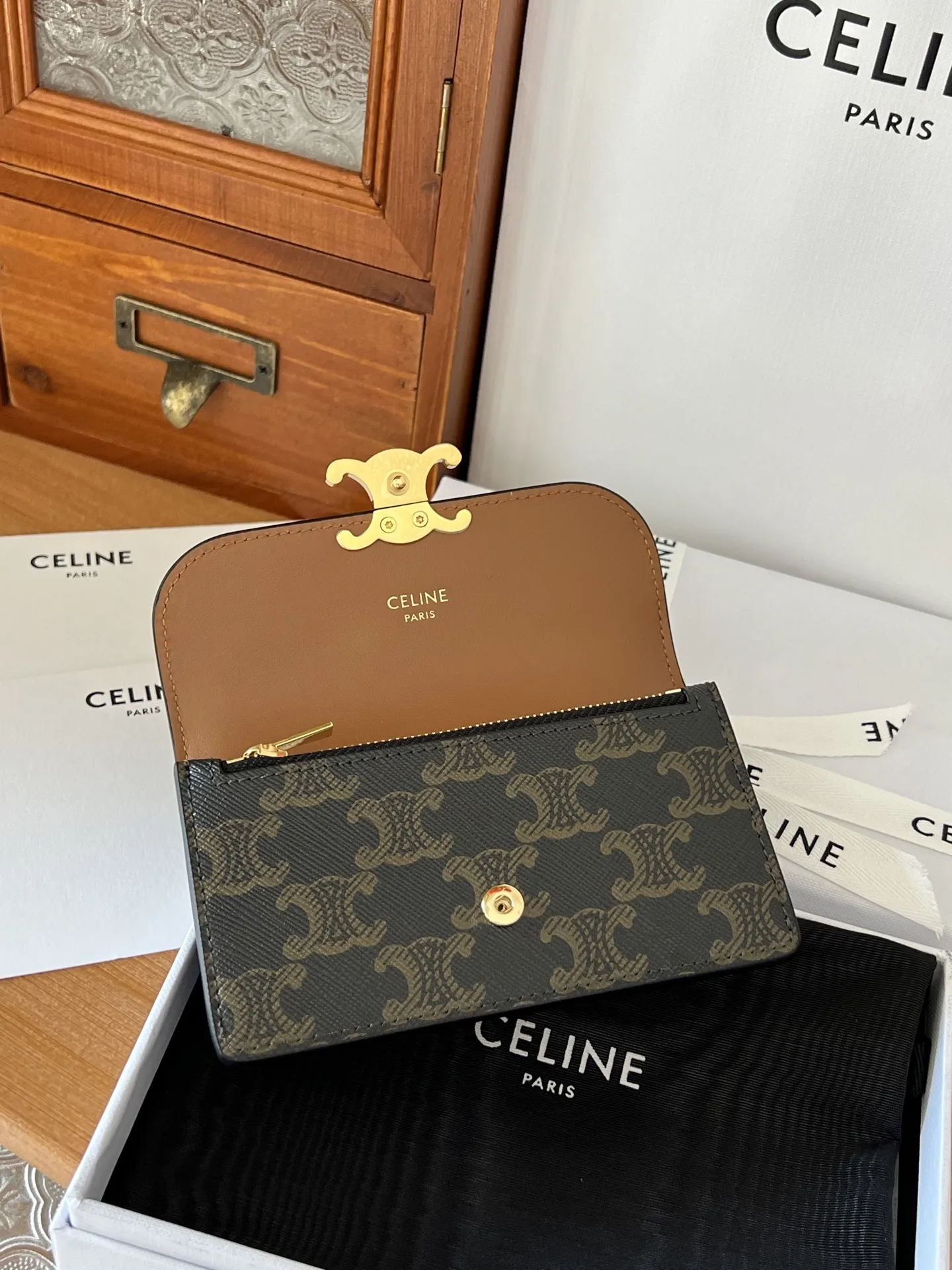 Celine 10P073 TRIOMPHE FLAP WALLET CARD HOLDER