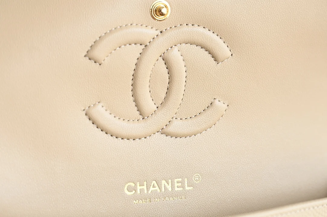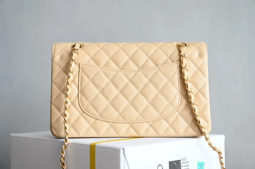 Platinum Edition Authentic Grade. New release with packaging as shown in the picture. The latest 2024 version of the CF series is developed based on the genuine product purchased from the counter for 84,000. Classic Flap Medium, apricot caviar calfskin with a unique grainy texture. Exquisite and durable, good quality is worth collecting. A bag that will never go out of style. Leather: Haas calfskin caviar. Lining: Cutting department authentic product inner lambskin. Accessories: Italian imported sponge, backing material. Hardware: All-steel gold buckle with plum blossom screws. Size: 15.5*25.5*6.5cm