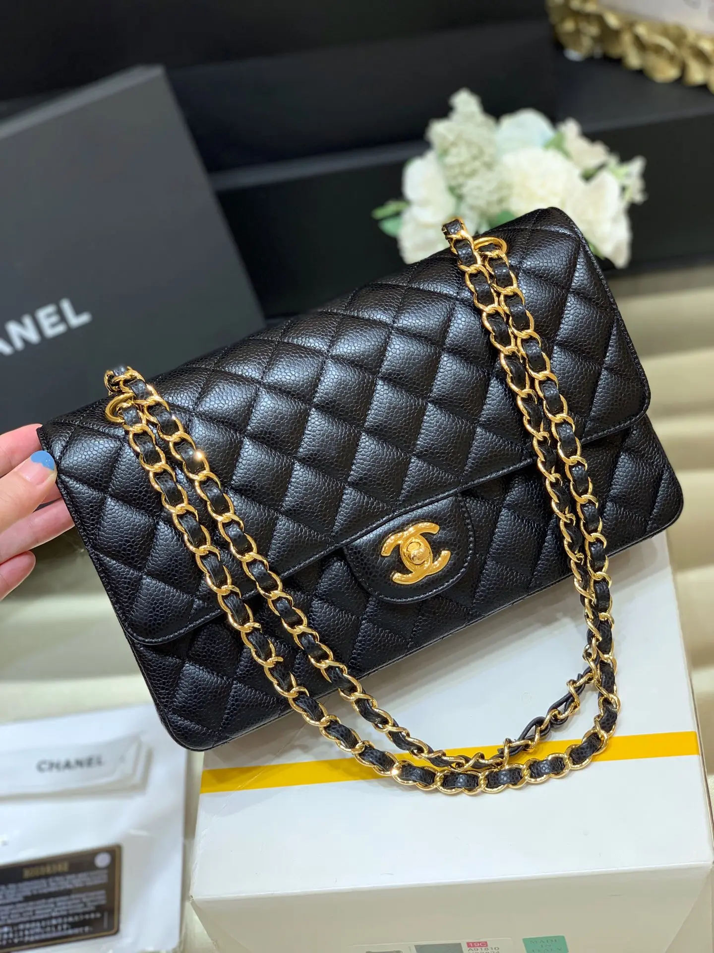 Authentic-grade, original factory CF Medium Classic Flap Bag. Leather: European original Haas genuine cowhide. Hardware: Italian imported 24k gold-plated steel lock. Supply is limited and often out of stock. The overall feel of the bag is perfectly consistent with the authentic product. Style 1112, Medium 25cm.