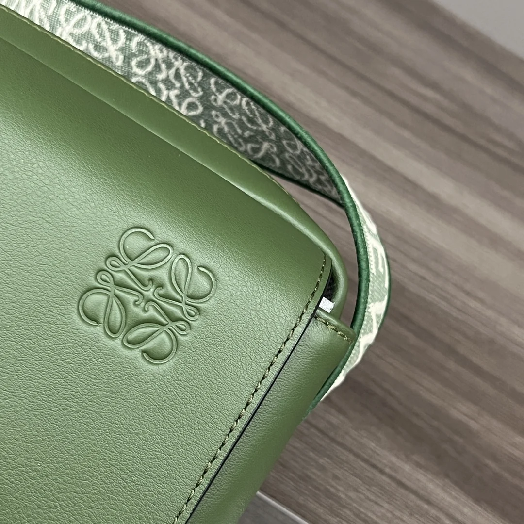 Loewe 2022 New Soft Smooth Calfskin and Jacquard Military Messenger Bag with Zip Top Compartment and Additional Front Flap Compartment *This version with flap is made of calfskin a..
