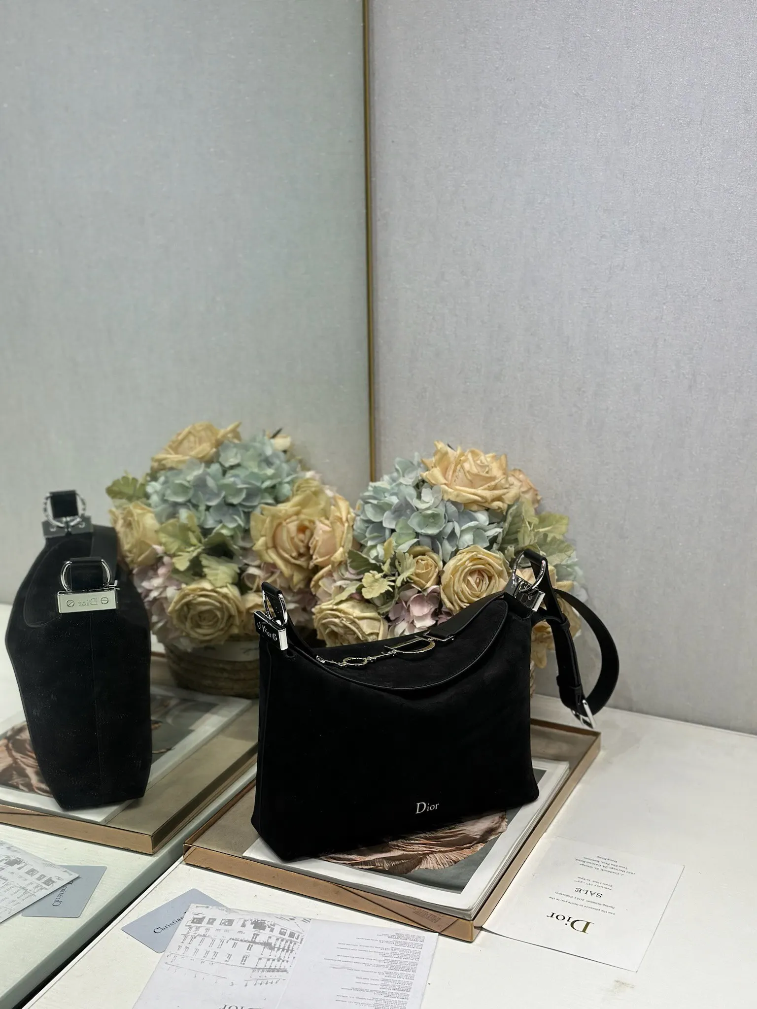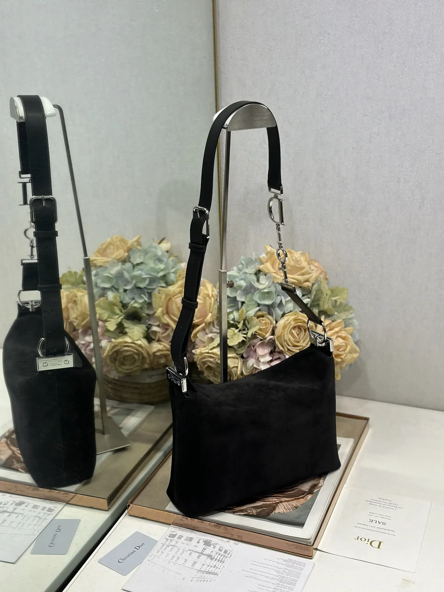 Christian Dior Spring/Summer 2026 Small Handbag Collection Black Velvet with Leather and Silver Hardware