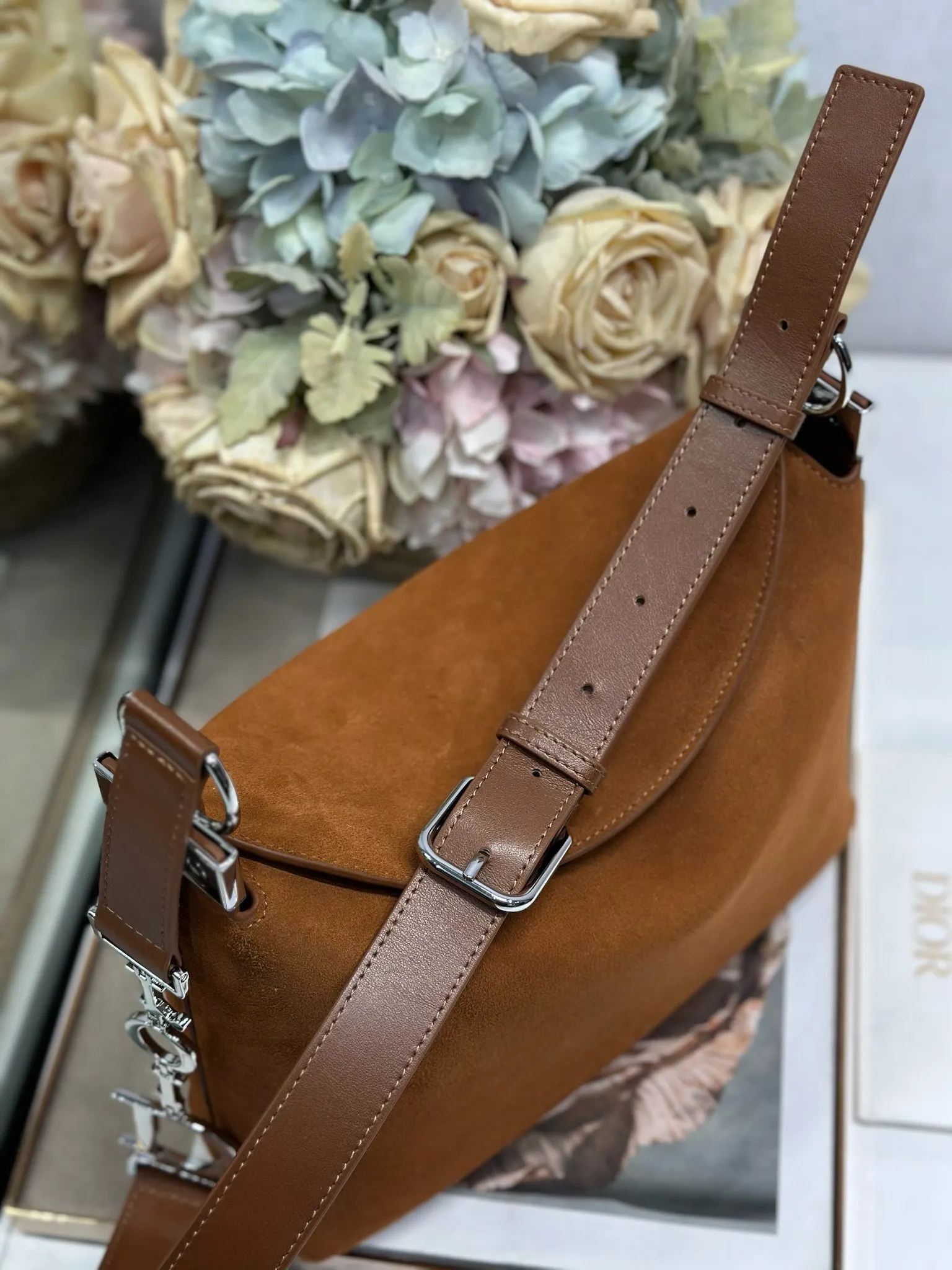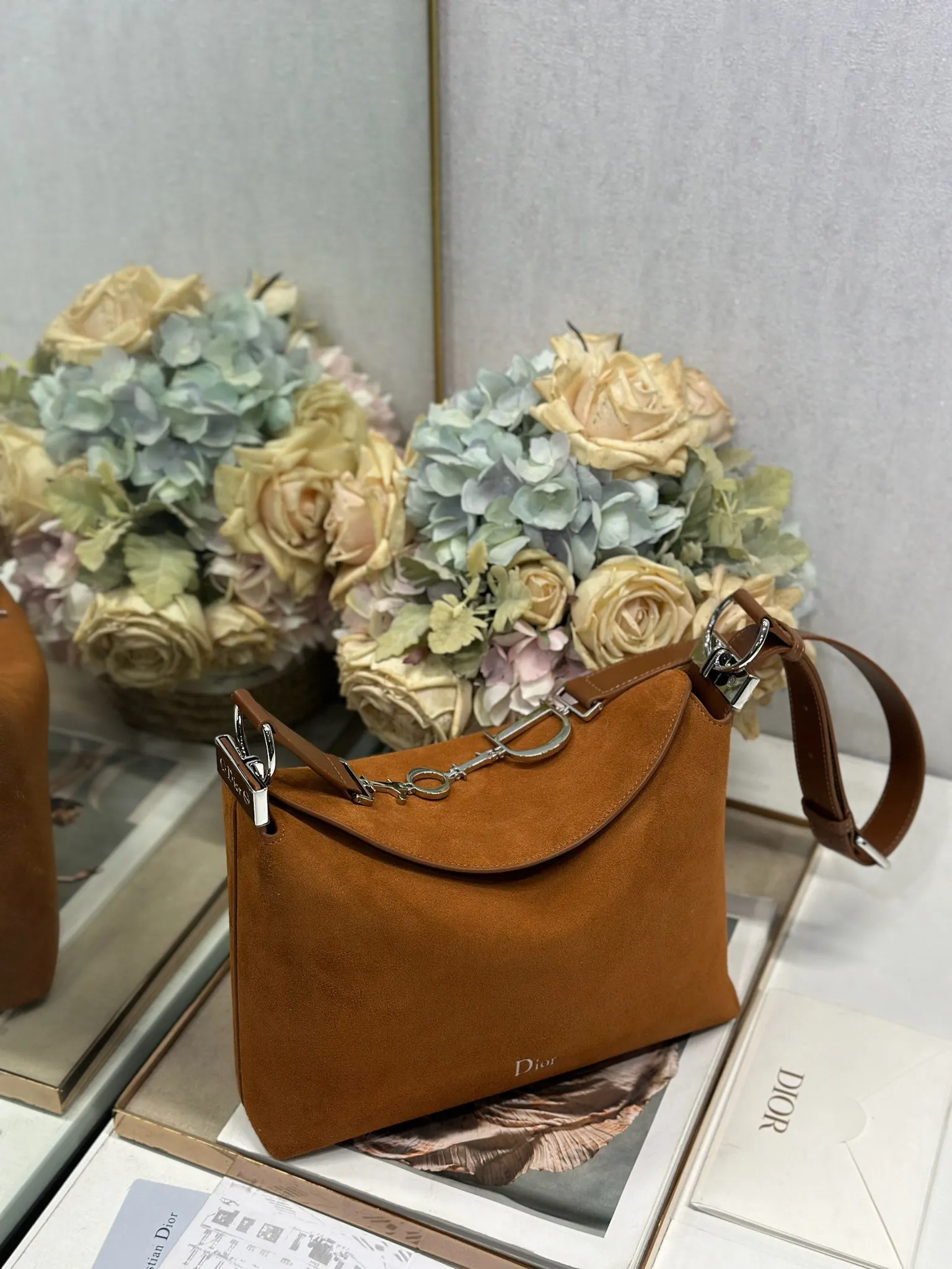 Christian Dior Spring/Summer 2026 Small Handbag Collection Brown Suede and Leather with Silver Buckle