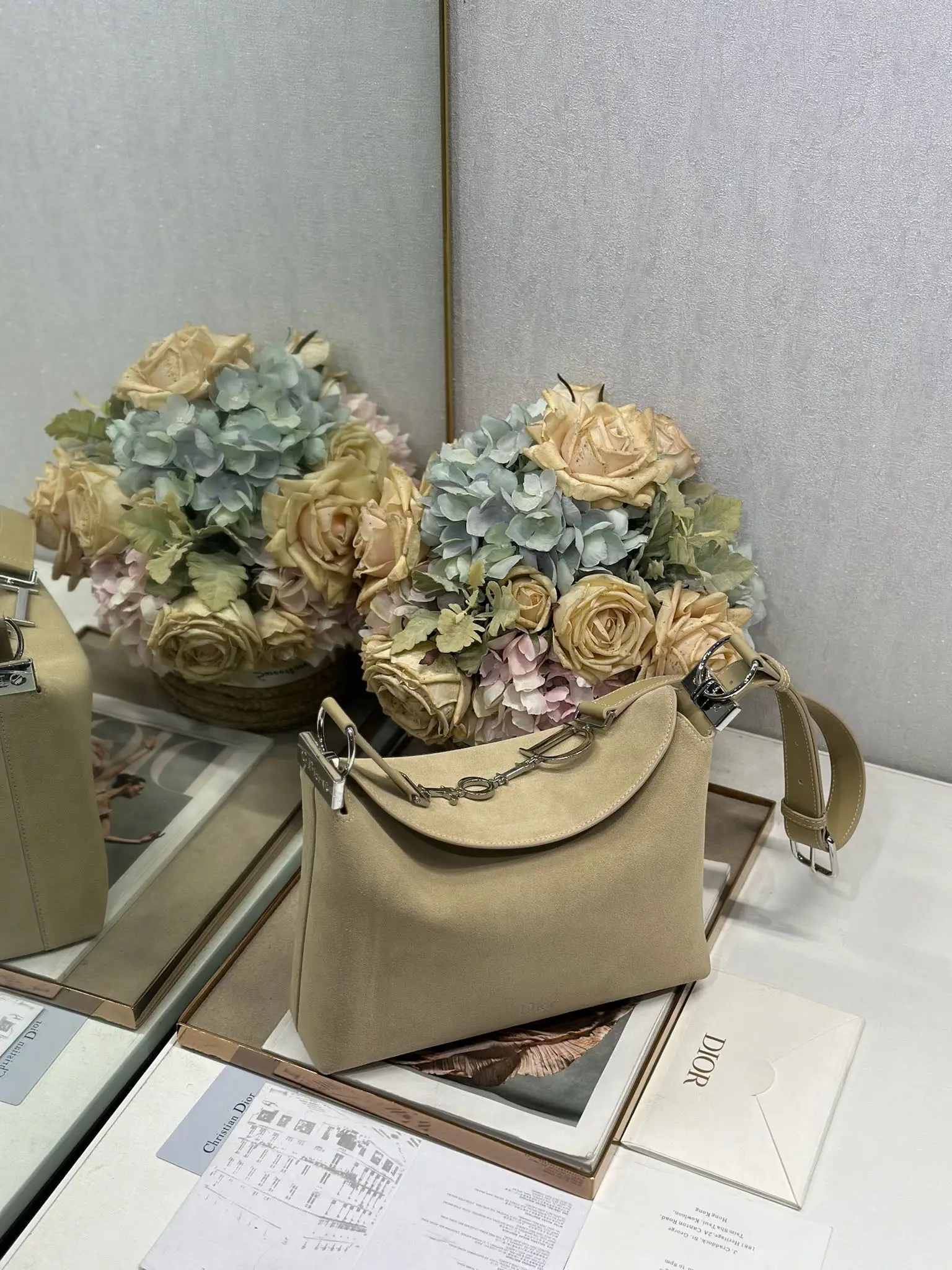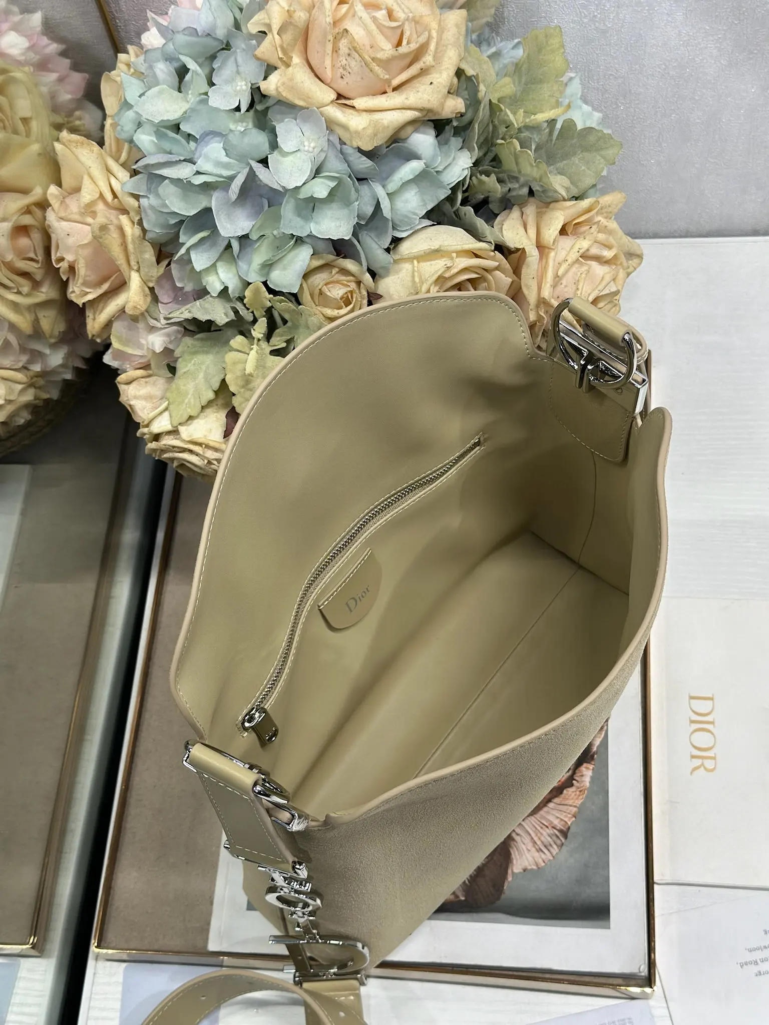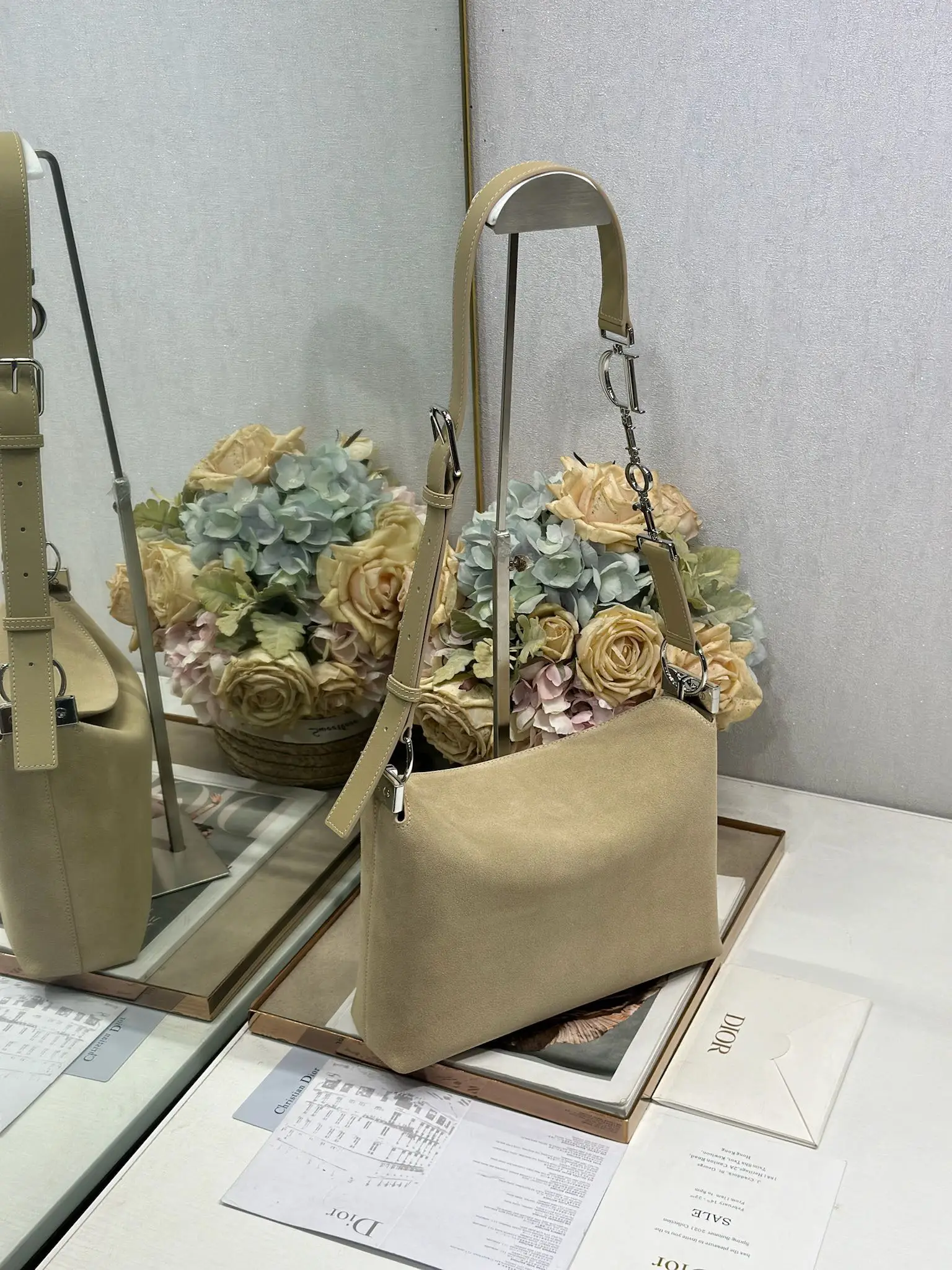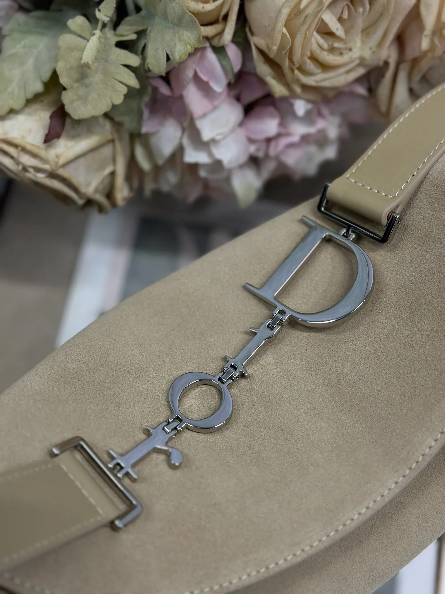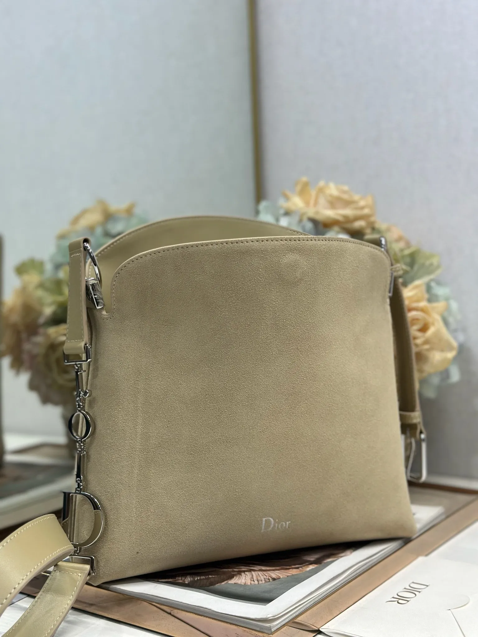 Christian Dior Spring/Summer 2026 Small Handbag Collection Apricot Velvet with Leather and Silver Buckle