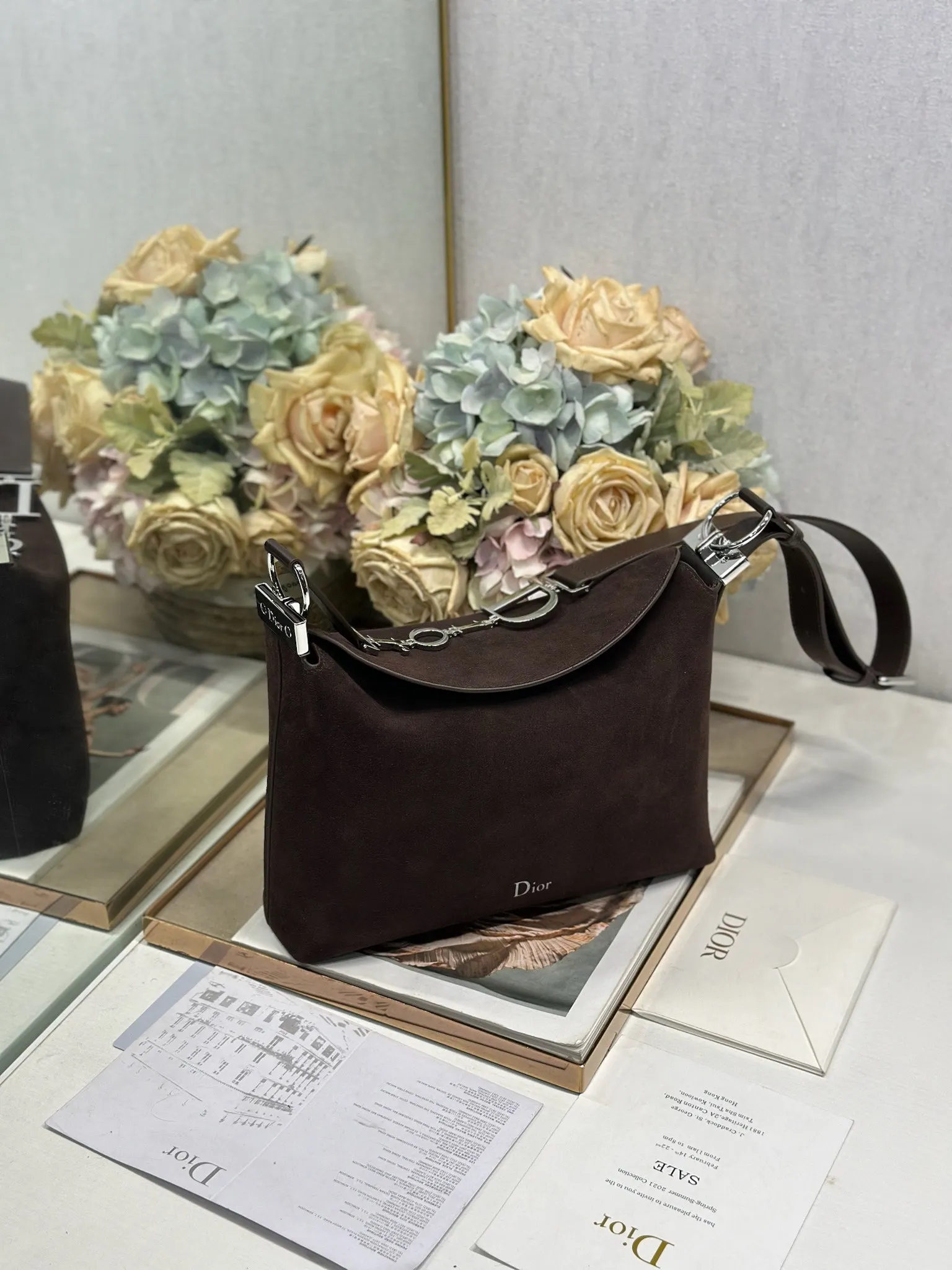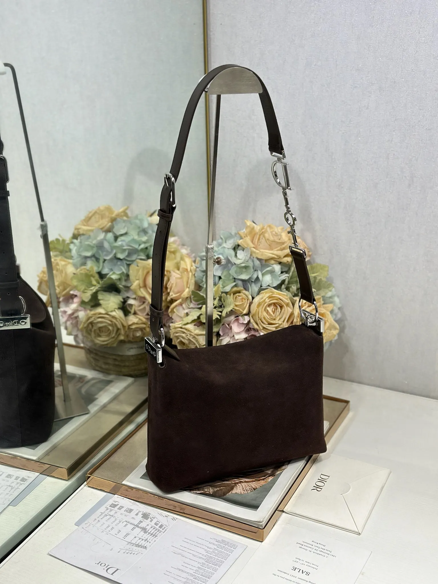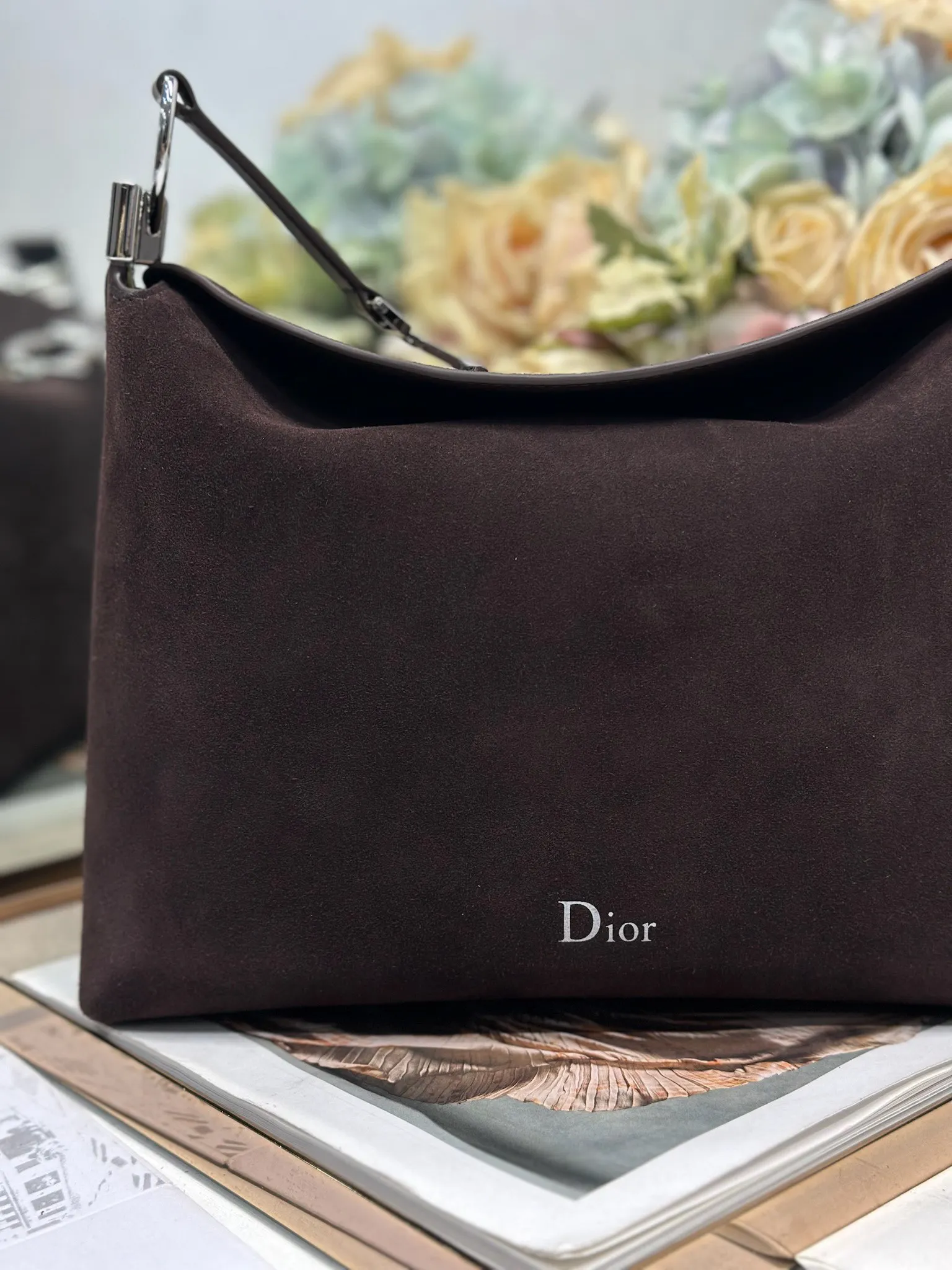 Christian Dior Spring/Summer 2026 Small Handbag Collection Coffee Velvet with Leather and Silver Buckle