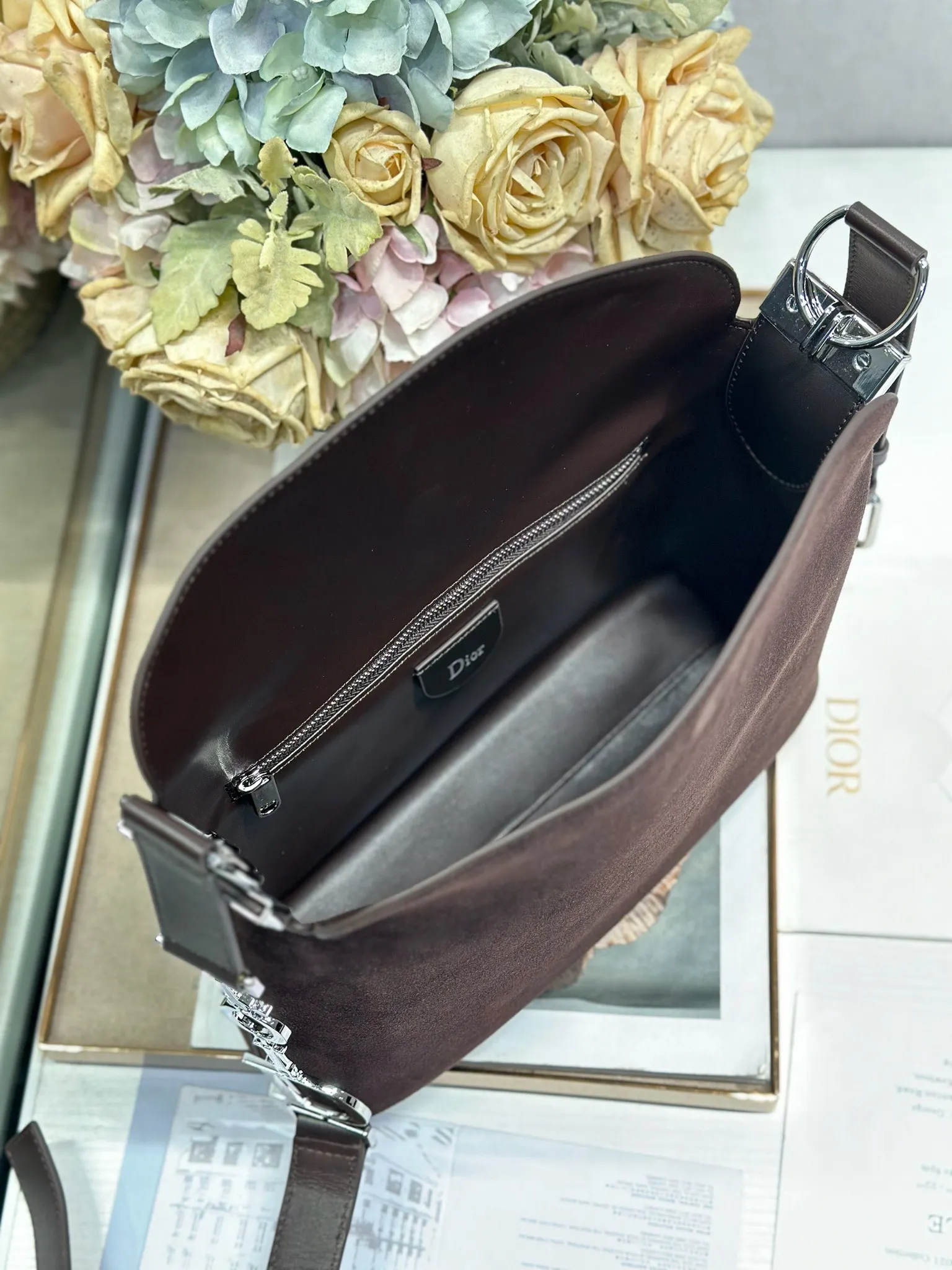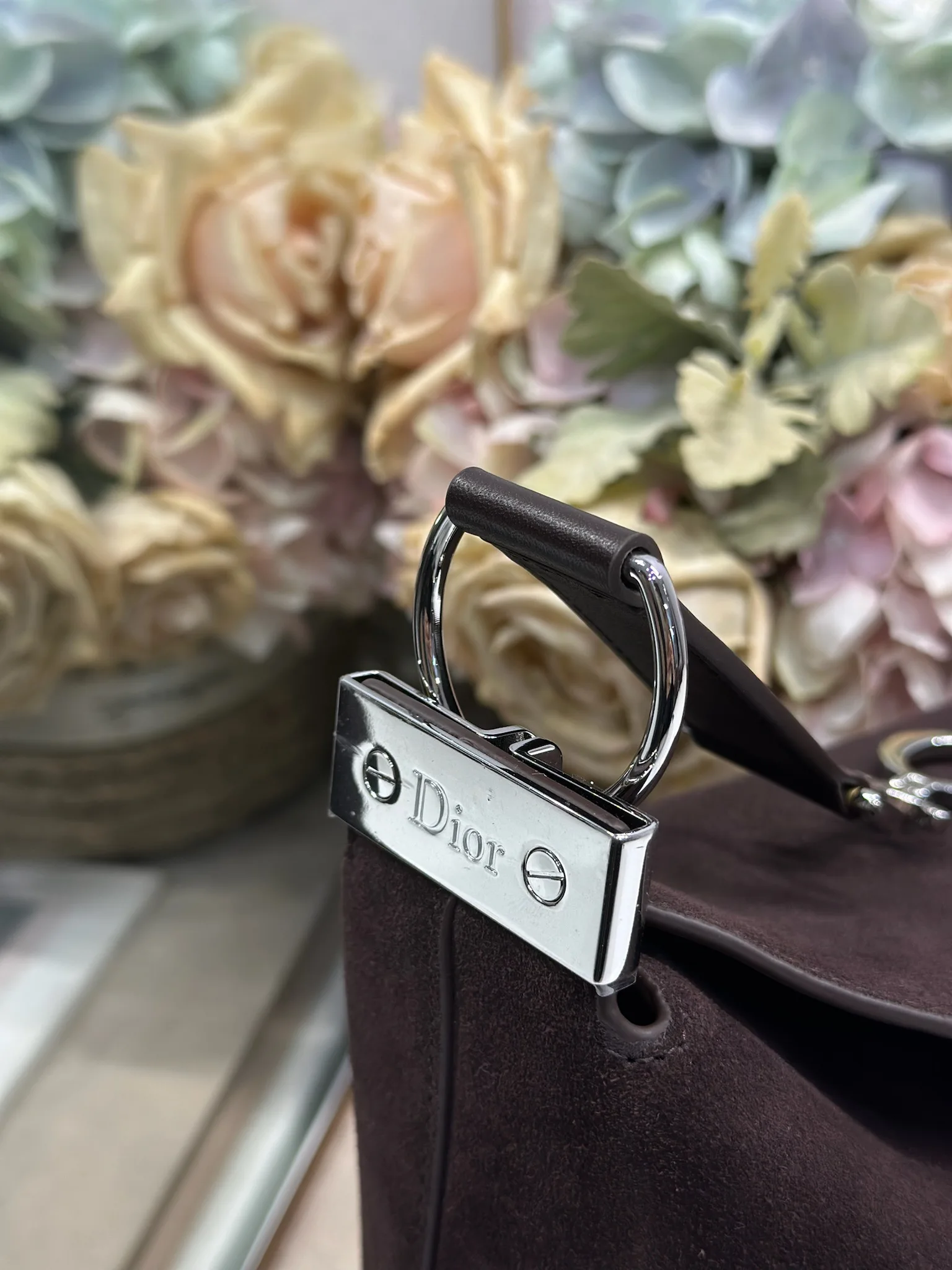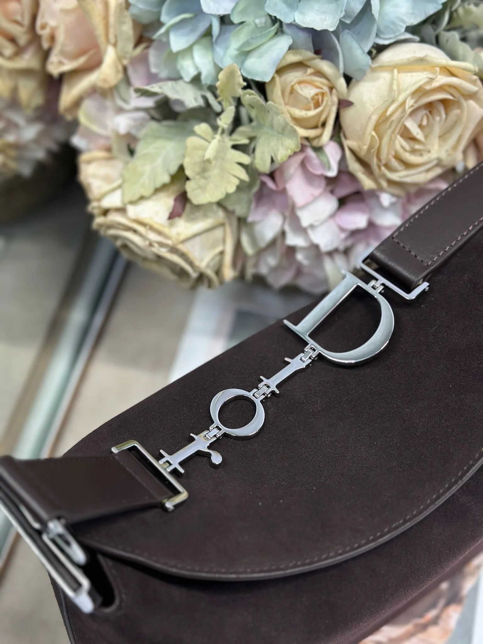 Christian Dior Spring/Summer 2026 Small Handbag Collection Coffee Velvet with Leather and Silver Buckle