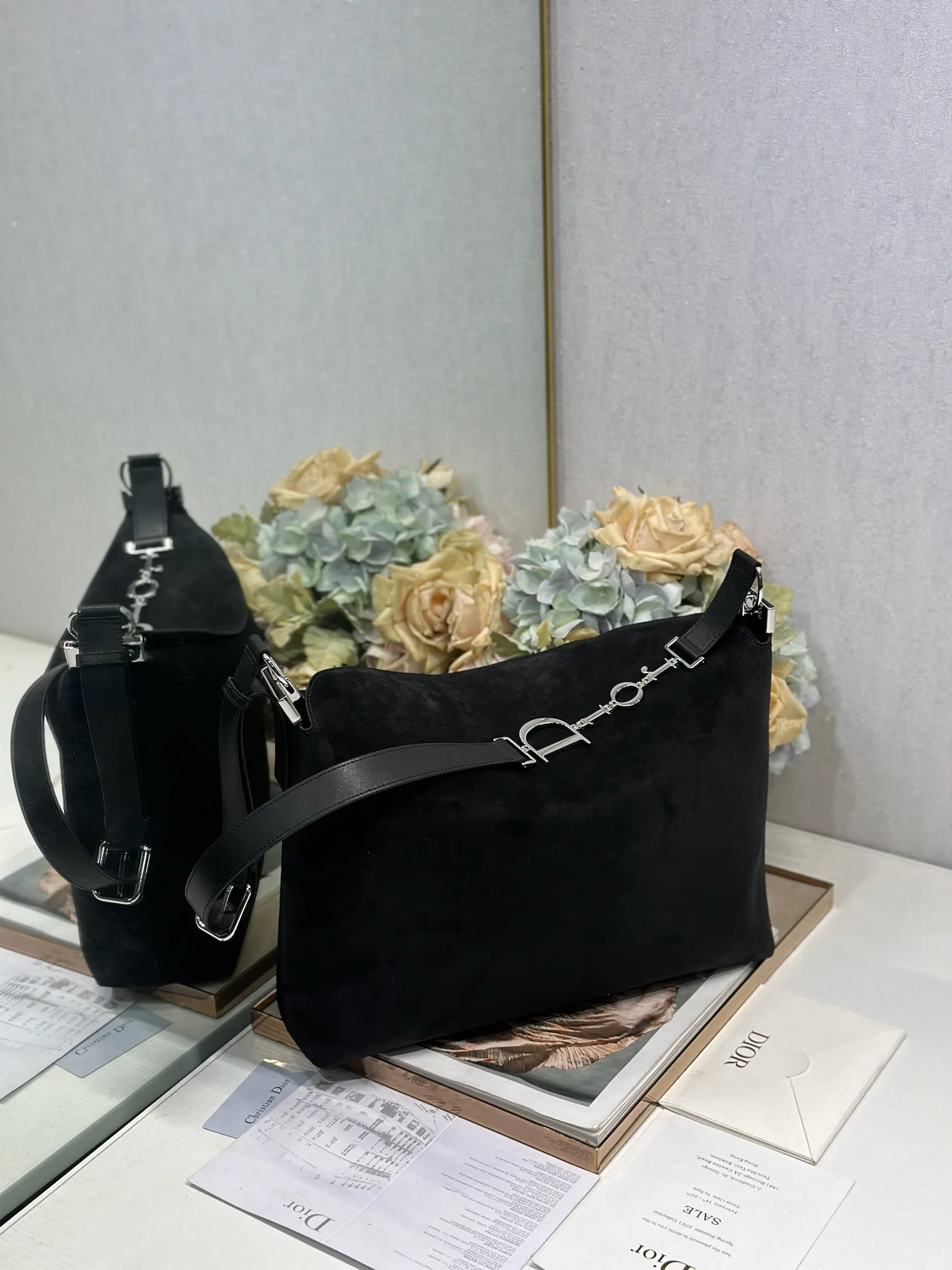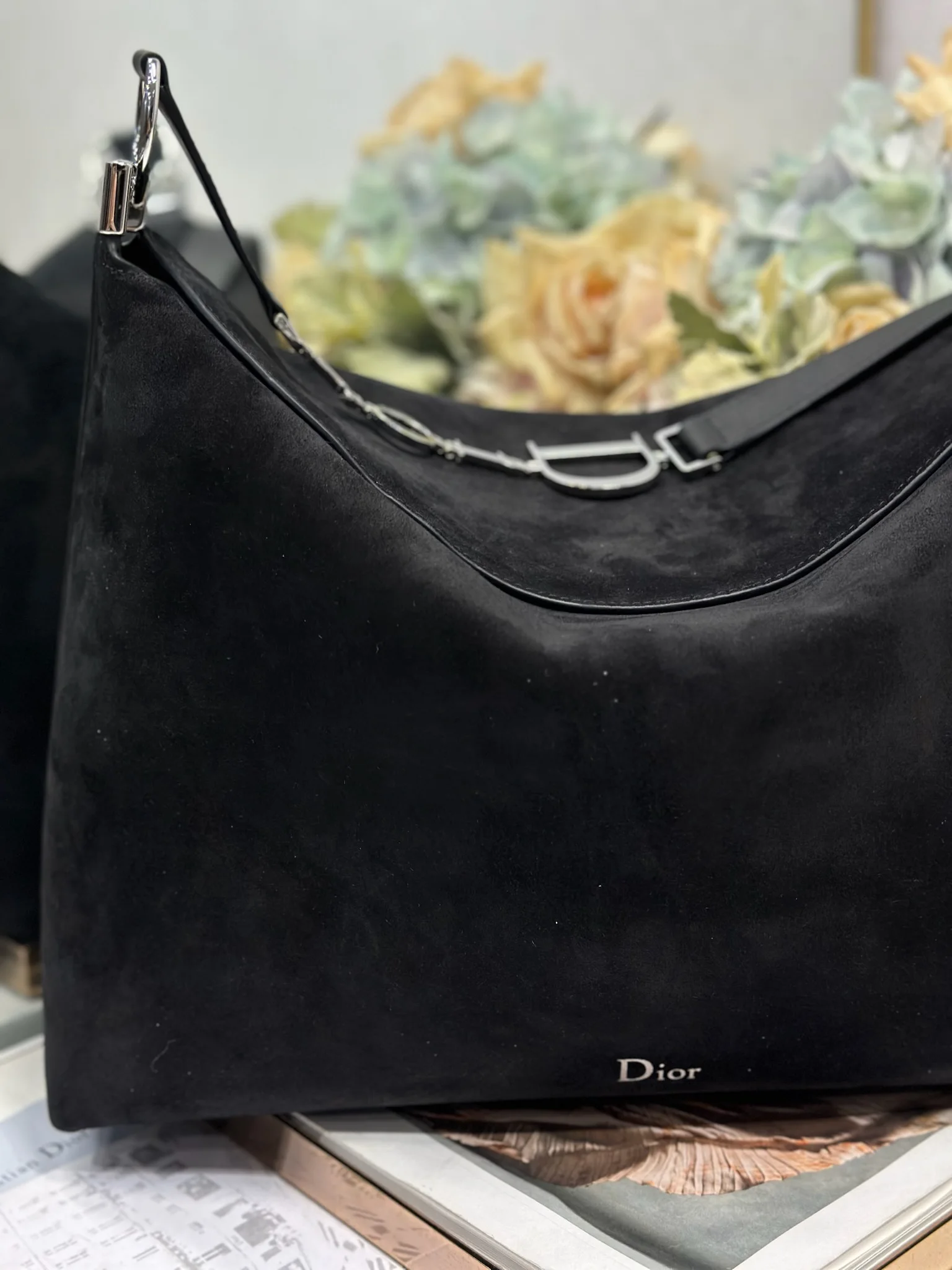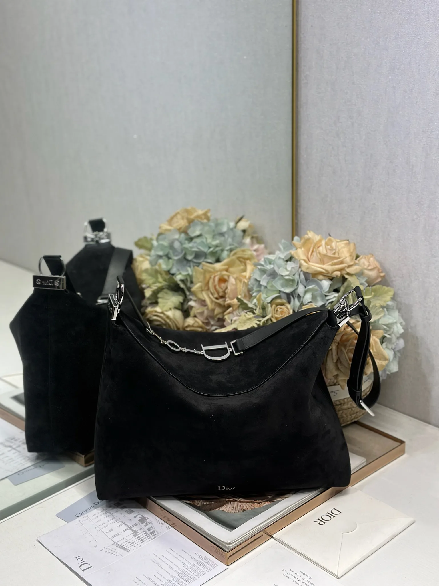 Christian Dior Spring/Summer 2026 Large Handbag Collection Black Velvet with Leather and Silver Buckle