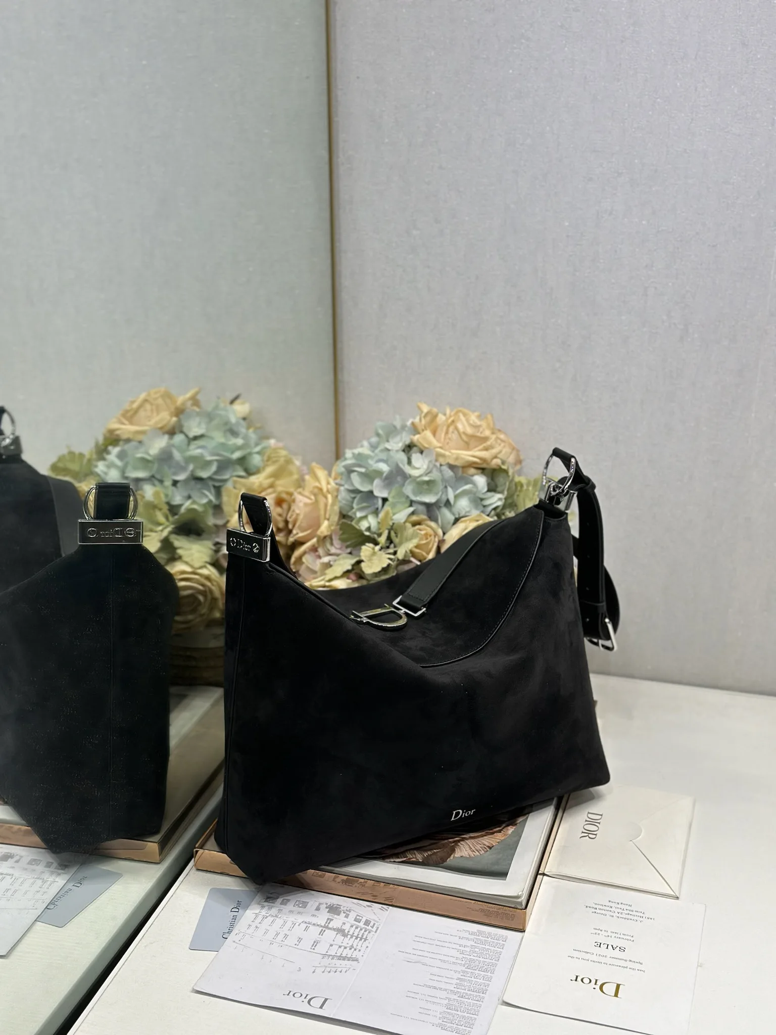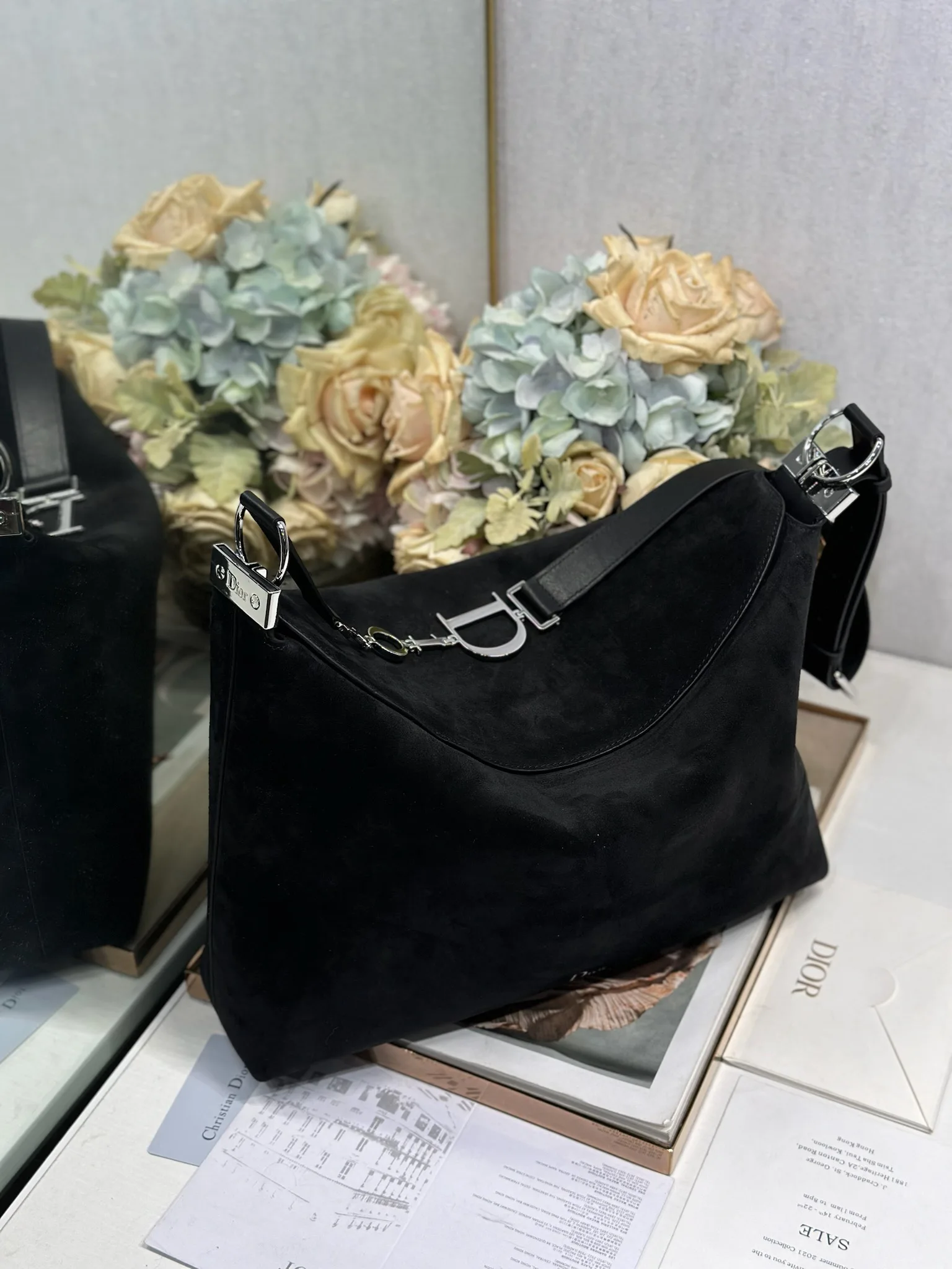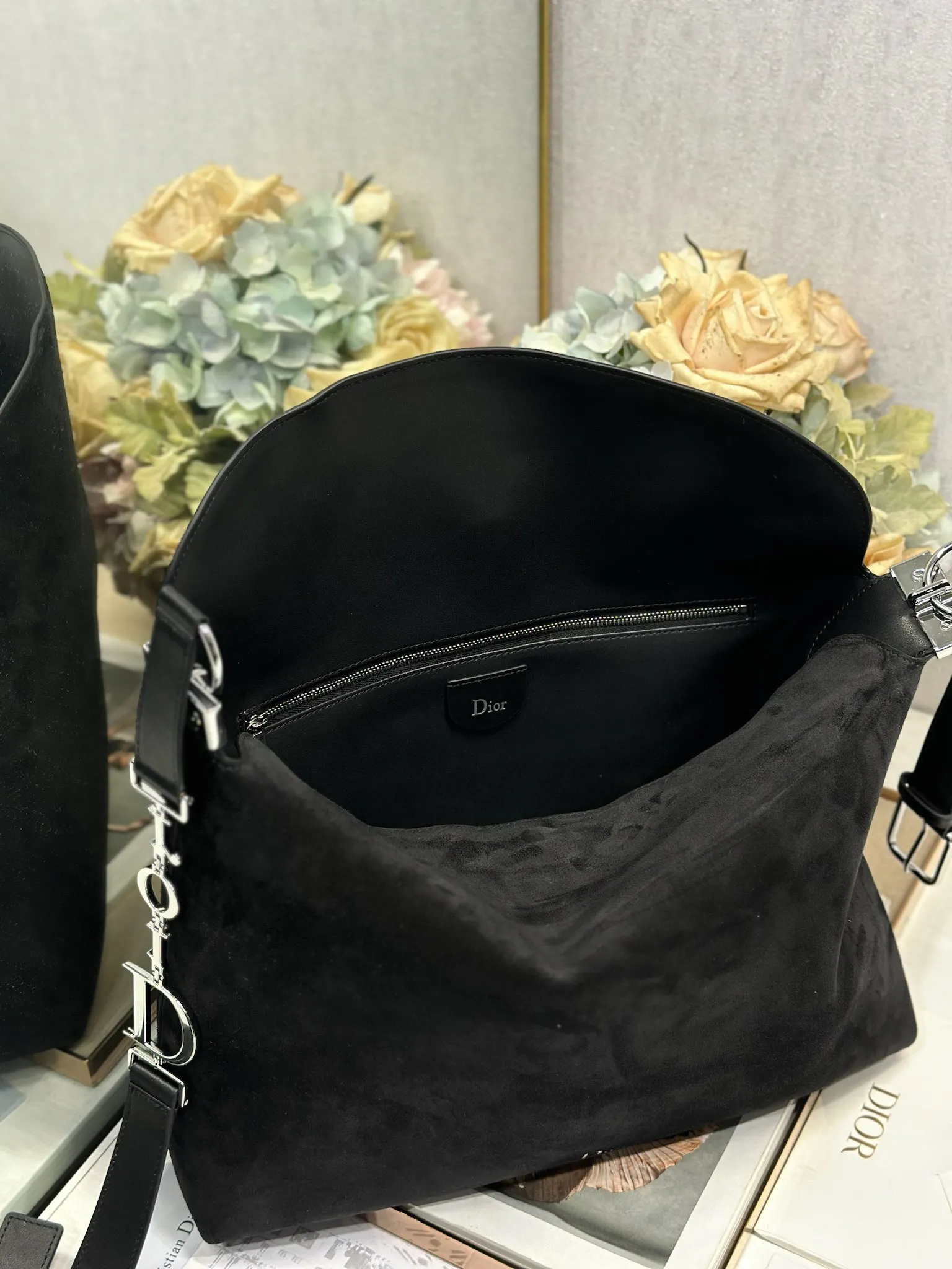Christian Dior Spring/Summer 2026 Large Handbag Collection Black Velvet with Leather and Silver Buckle