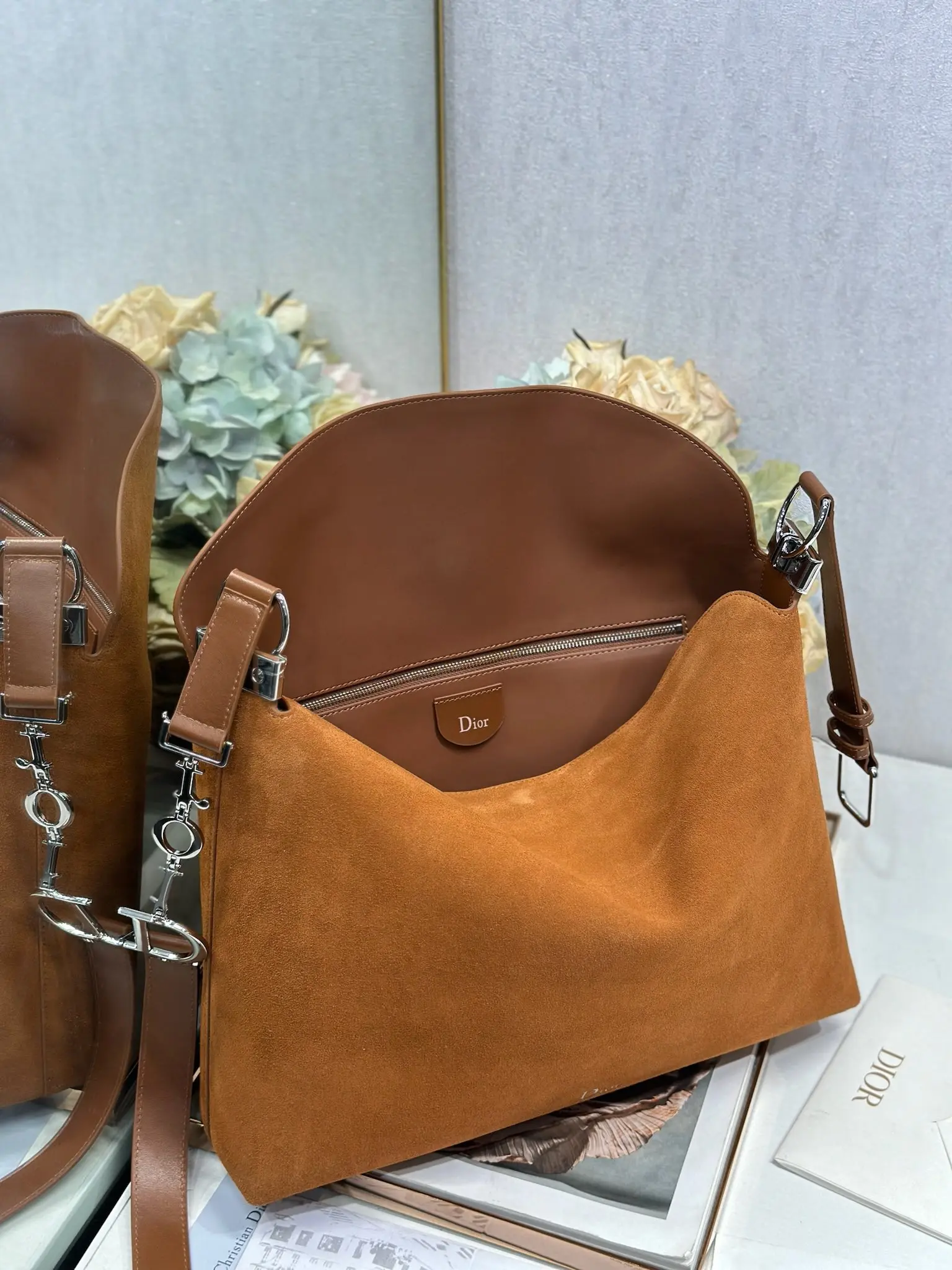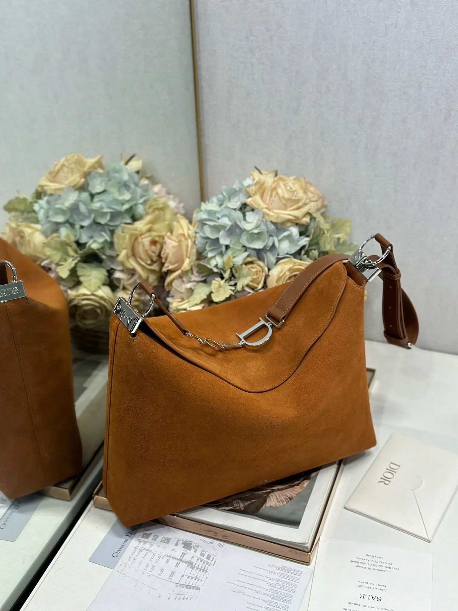 Christian Dior Spring/Summer 2026 Large Handbag Collection Brown Suede and Leather with Silver Buckle