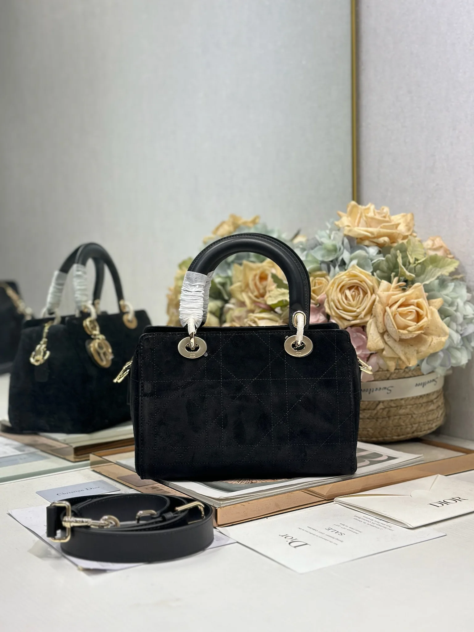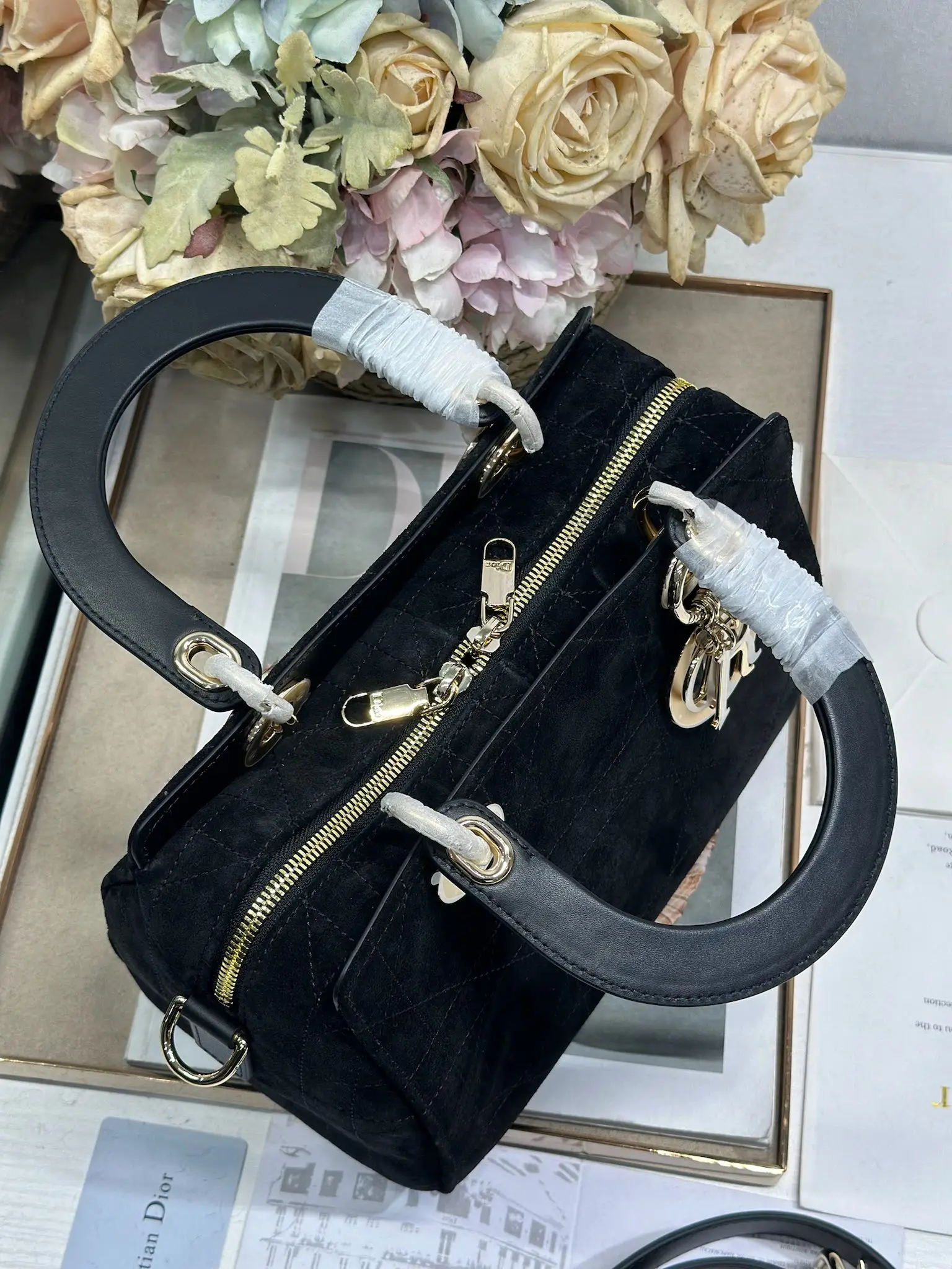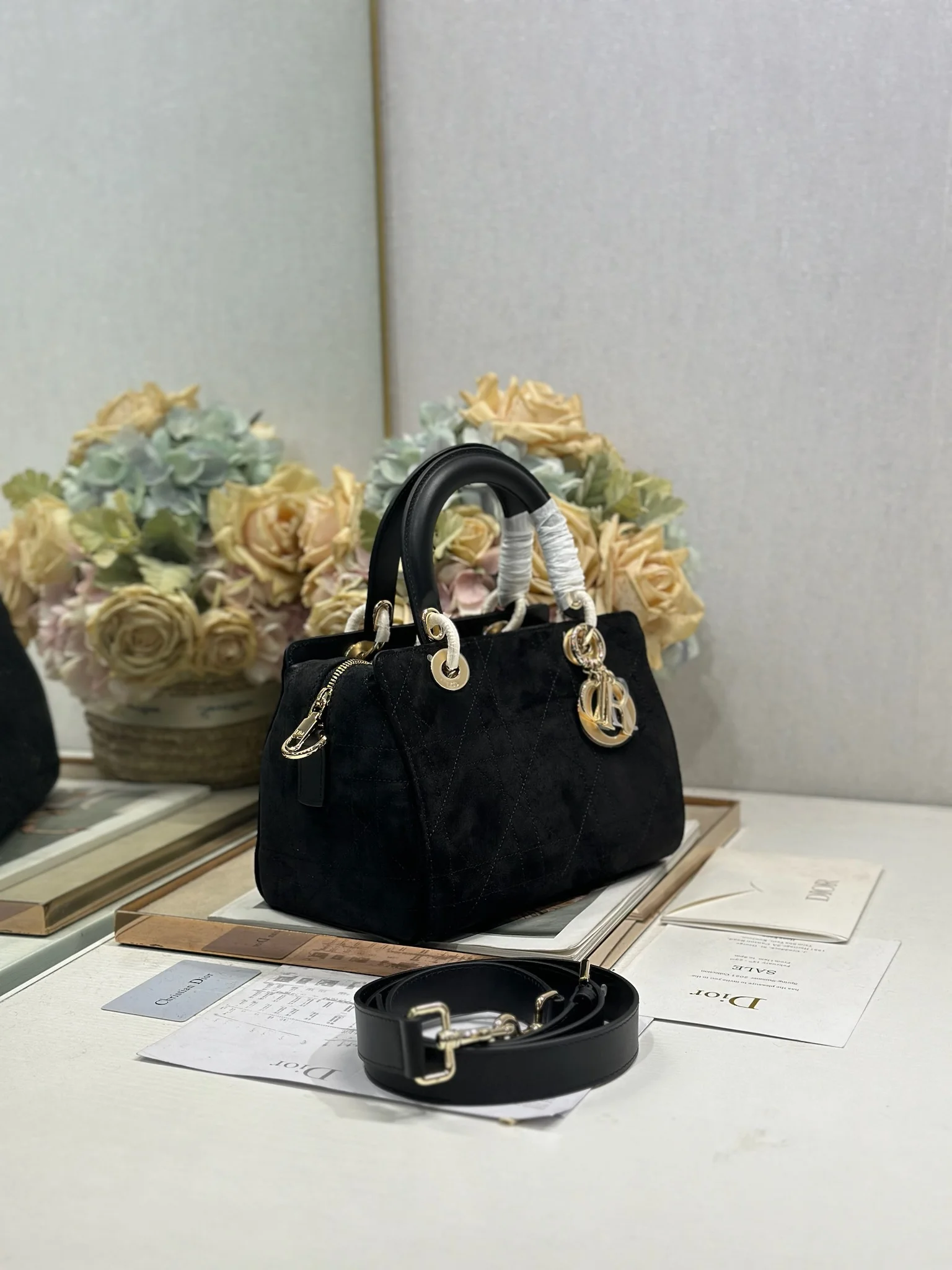 The LADY handbag reinterprets the silhouette of the LADY DIOR handbag, with a stylish and refined curved shape that showcases a fashionable personality, creating a strikingly elegant look. The double handle design, made of leather and metal, is exquisite and elegant, adorned with a DIOR charm that echoes Mr. Dior s lucky symbol.