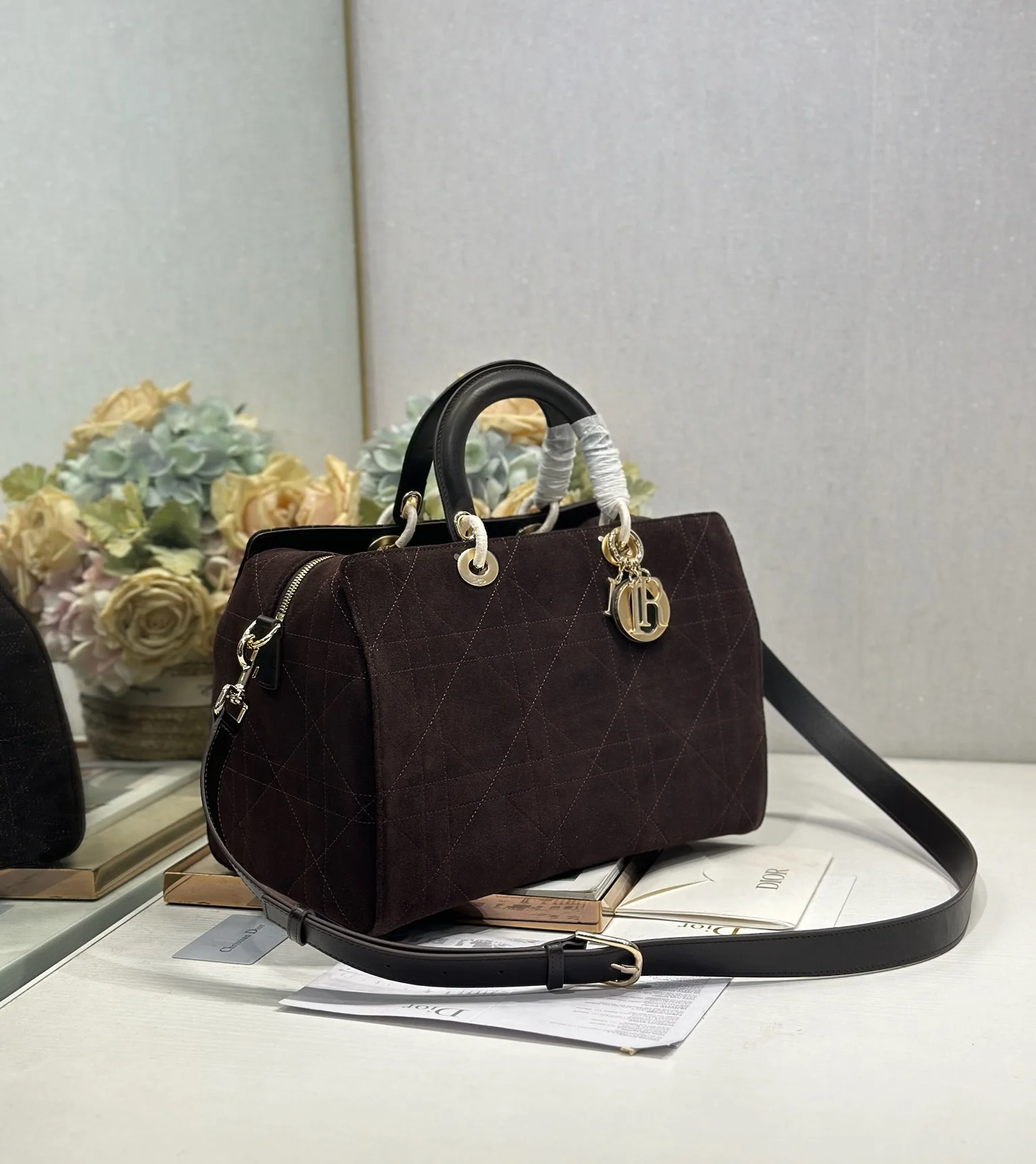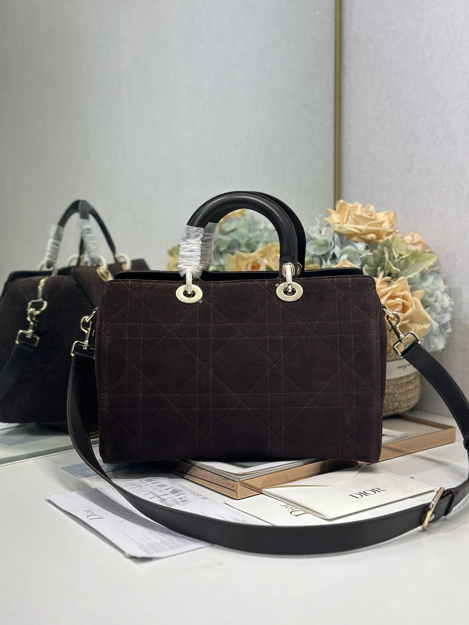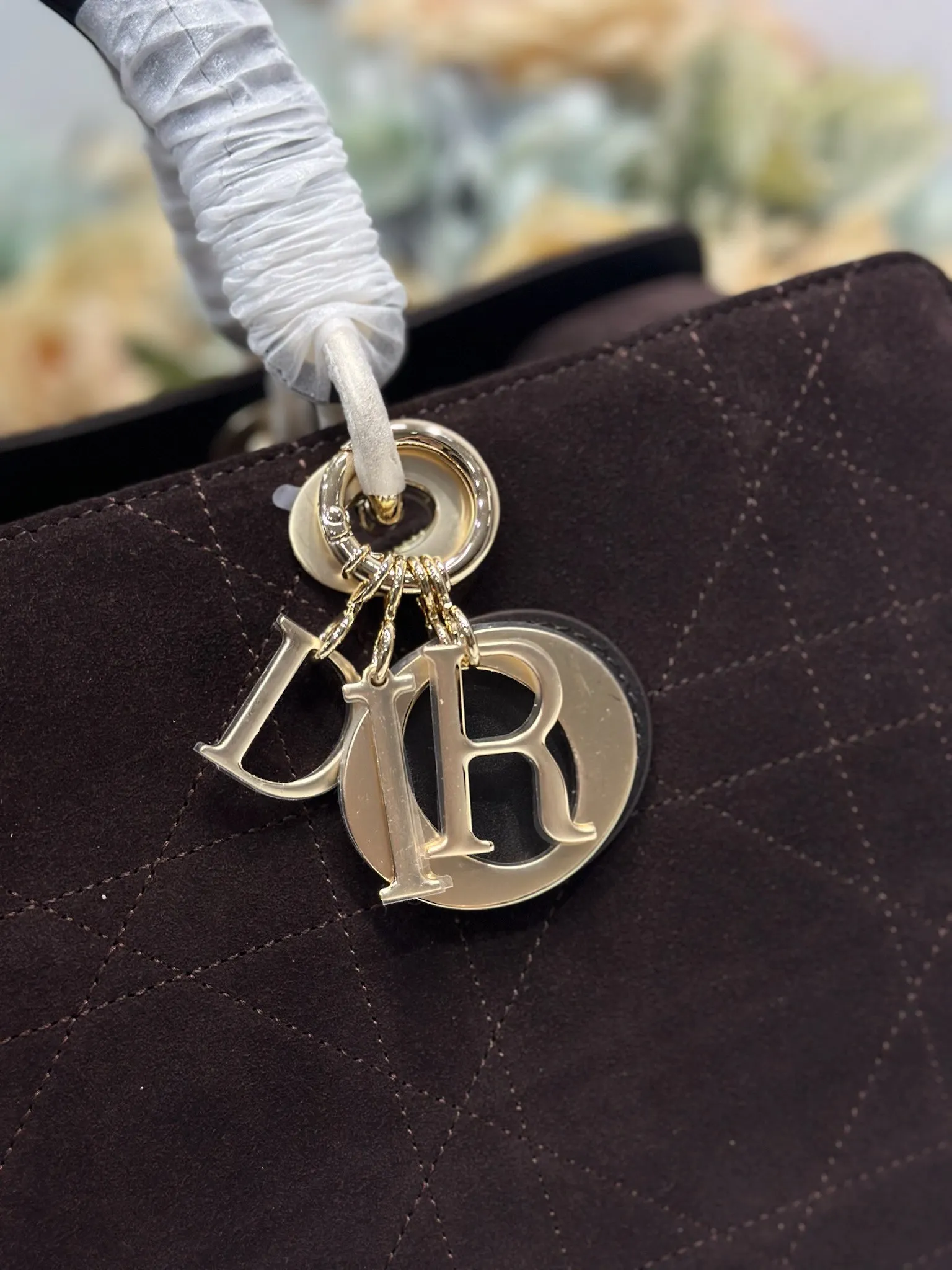 The LADY handbag reinterprets the silhouette of the LADY DIOR handbag, with a stylish and refined curved shape that showcases a fashionable personality, creating a strikingly elegant look. The double handle design, made of leather and metal, is exquisite and elegant, adorned with a DIOR charm that echoes Mr. Dior s lucky symbol.
