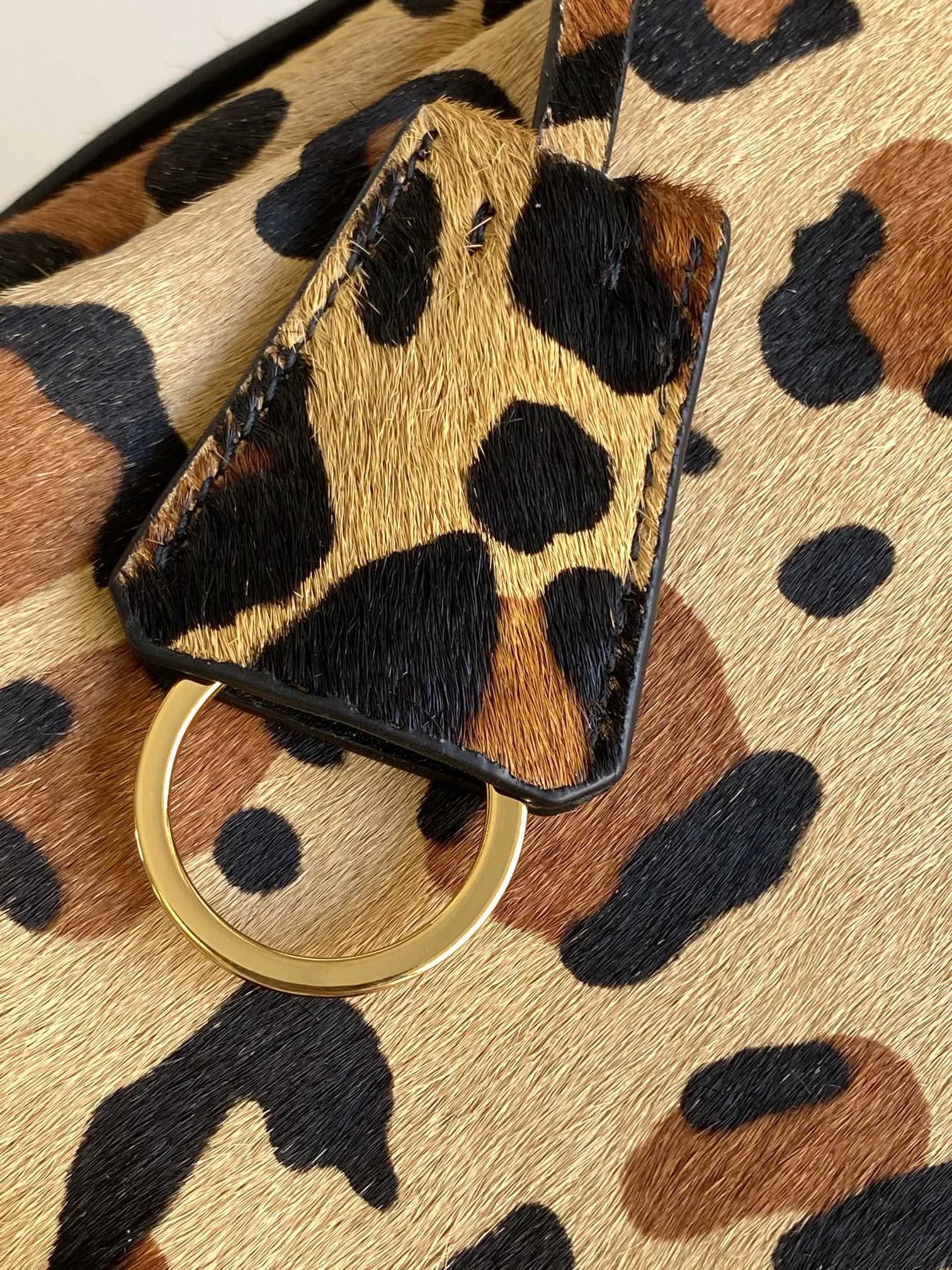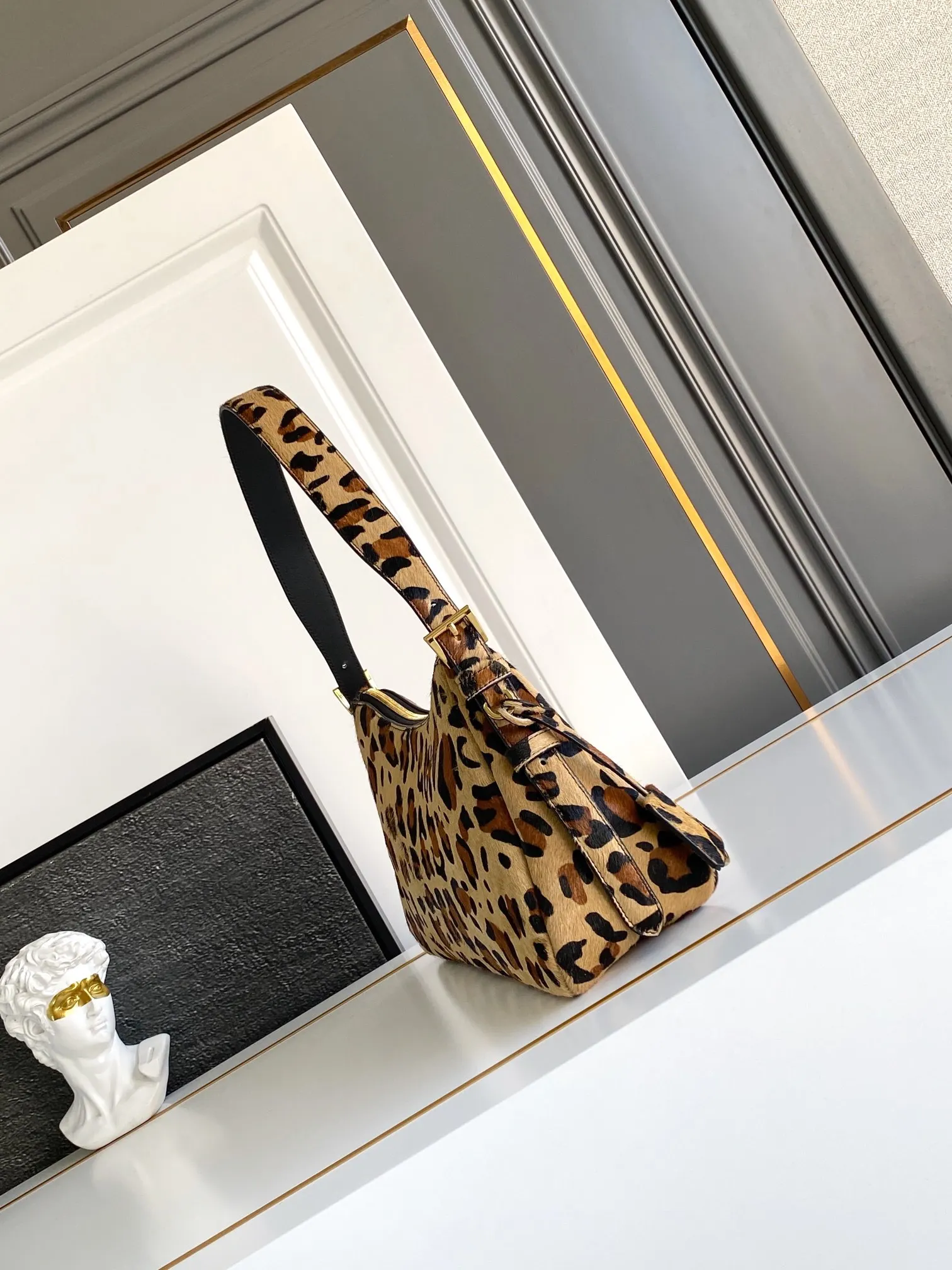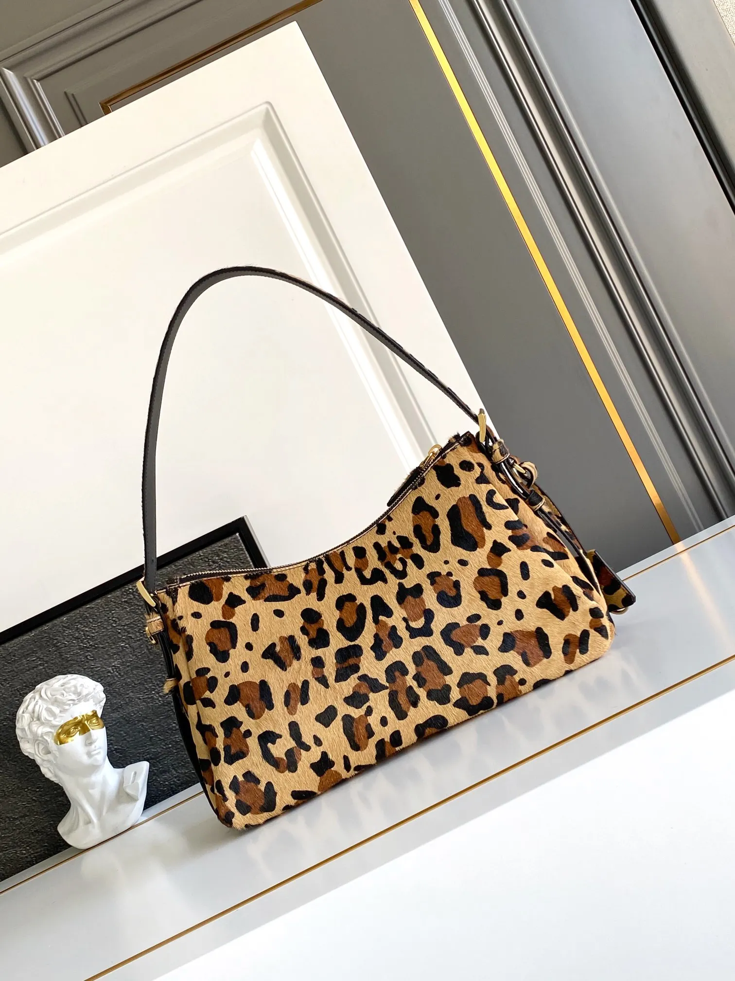 This Hobo shoulder bag features a minimalist design with a leopard print that adds personality. It has a metal triangular enamel logo on the front and comes with a detachable leopard print shoulder strap. Practical, lightweight, and spacious, it is a versatile high-end item and another fashion hit. Get it now, it s stunning!