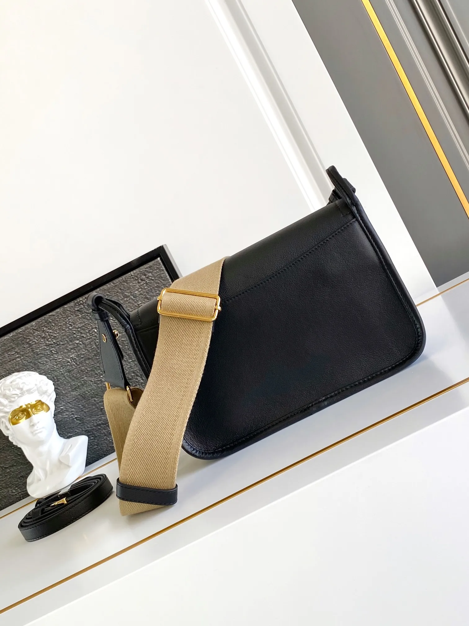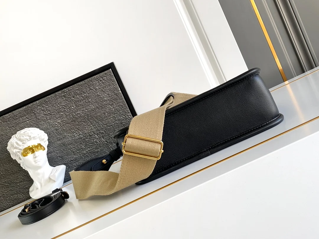 The new crossbody bag (double shoulder straps) features the Lindy woven leather shoulder strap, made from imported Italian Soft Grain calfskin, with top-quality hardware. Its modern design showcases a casual attitude, and the exquisite details paired with metal hardware accessories add a dynamic touch. The style is compact and versatile, with the soft-grained leather highlighting smooth, minimalist lines. This accessory demonstrates extraordinary craftsmanship, with a flap adorned with an enamel-coated triangular metal logo. It can be worn on the shoulder or crossbody, offering ample storage space while being both simple and practical, featuring an interior zipper with lining and slip pockets.