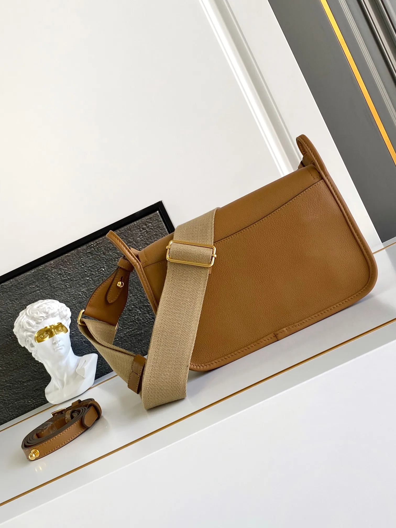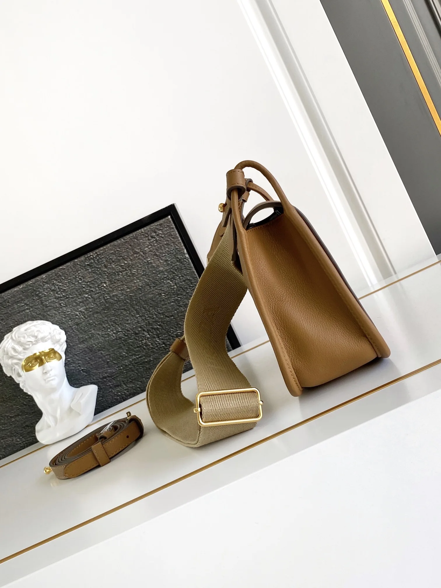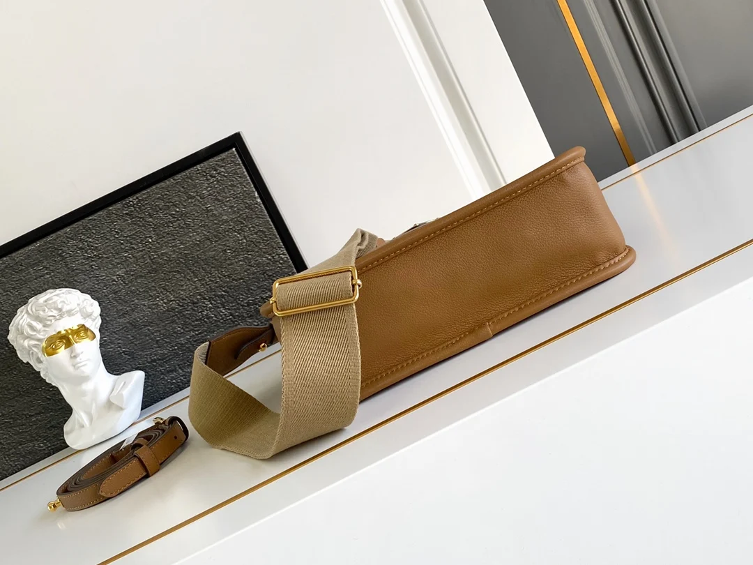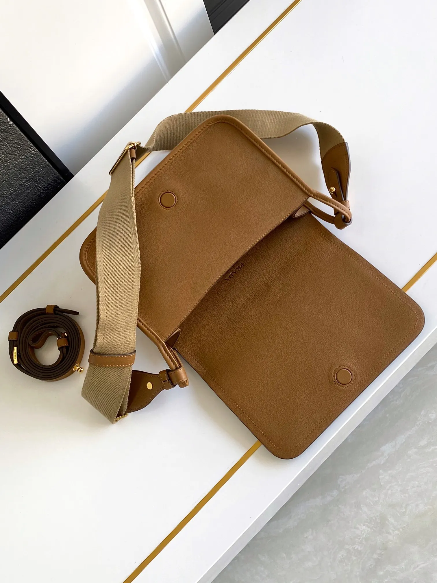 The new crossbody bag (with dual shoulder straps) features the Lindy woven leather shoulder strap, made from imported Italian Soft Grain calfskin, top-quality hardware, and a modern design that showcases a casual attitude. The exquisite details paired with metal hardware accessories add a sense of dynamism. The style is compact and versatile, with the soft-grained leather highlighting smooth, minimalist lines. This accessory demonstrates exceptional craftsmanship, with a flap adorned with an enamel-coated triangular metal logo. It can be worn on the shoulder or crossbody, offering ample capacity while being both simple and practical, featuring an interior zipper with lining and slip pockets.