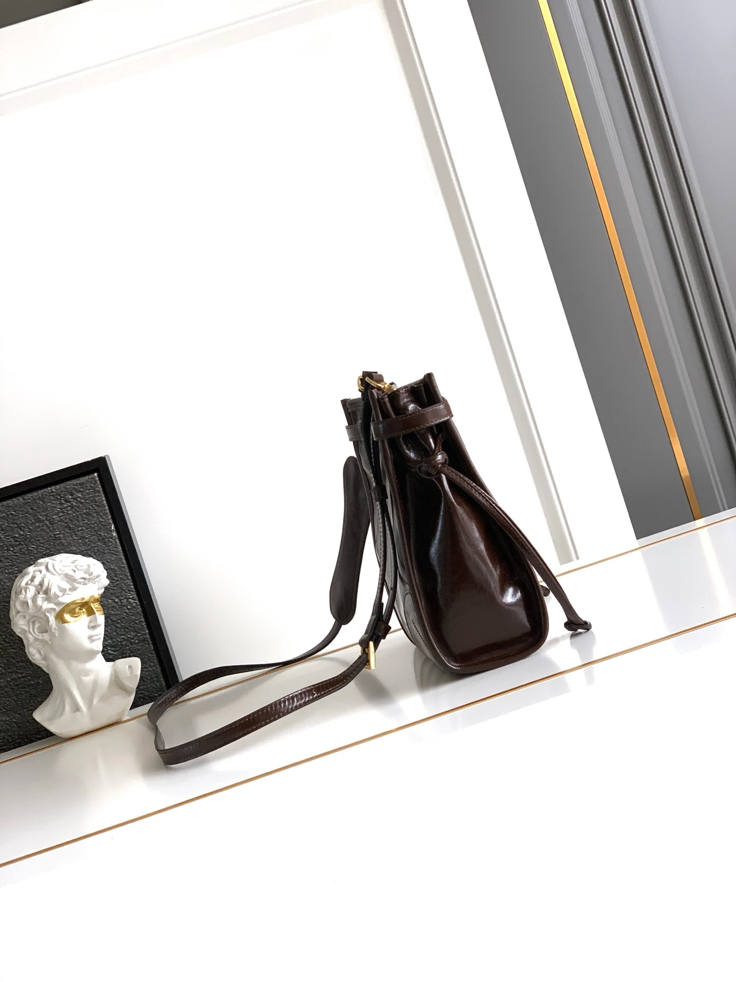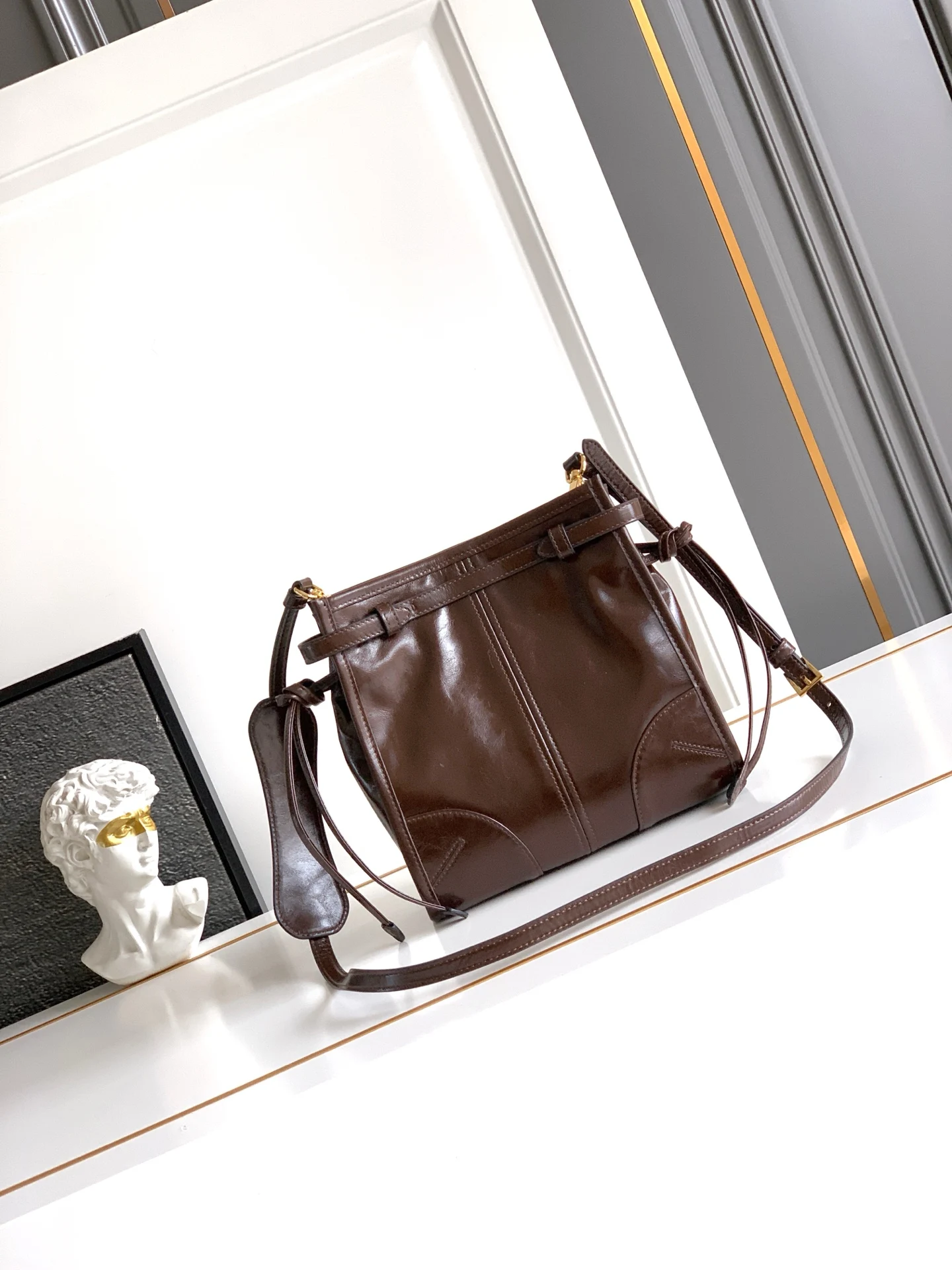 This crossbody bag is made of imported waxed leather, with a glossy finish that exudes a classic charm. It comes with a detachable adjus..