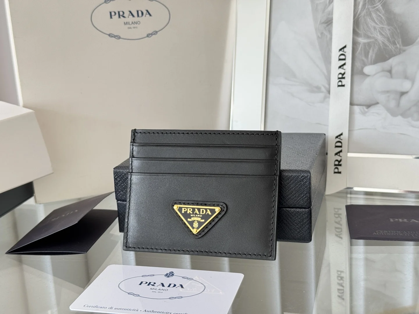 Prada classic men s and women s card holder synchronizes with the official store website, genuine development, model 1MC025, made of top-quality Italian plain grain cowhide with an..