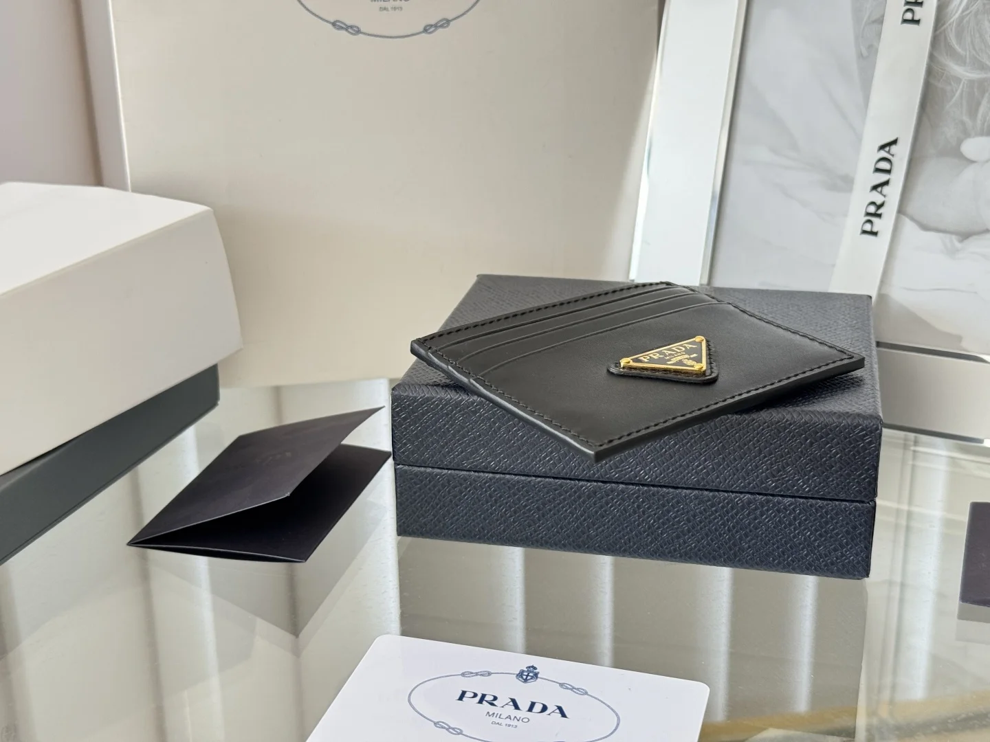 Prada classic men s and women s card holder synchronizes with the official store website, genuine development, model 1MC025, made of top-quality Italian plain grain cowhide with an excellent texture, featuring imported environmentally friendly oil edges and imported steel hardware accessories! The stitching and craftsmanship are exquisite and perfect, with quality comparable to genuine products. This Saffiano leather card holder is adorned with a signature enamel metal plaque, embarking on a journey of imaginative fashion. It features a tone-on-tone engraved logo, showcasing meticulous quality. Dimensions: Length 10cm, Height 8cm.