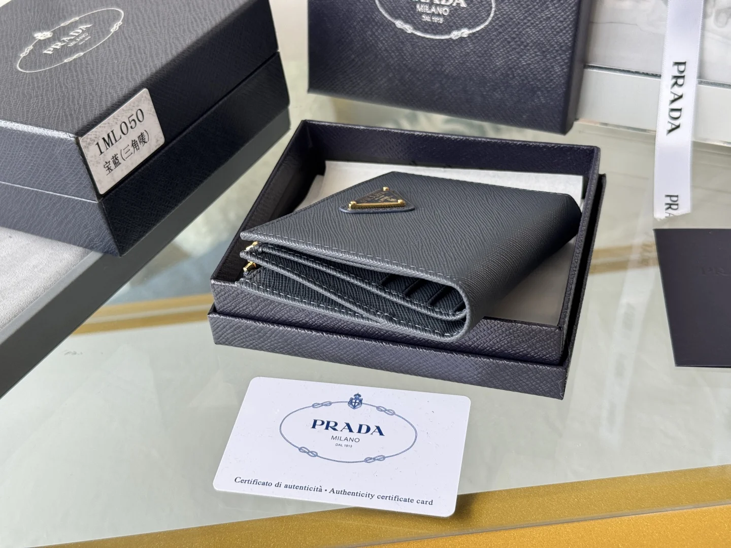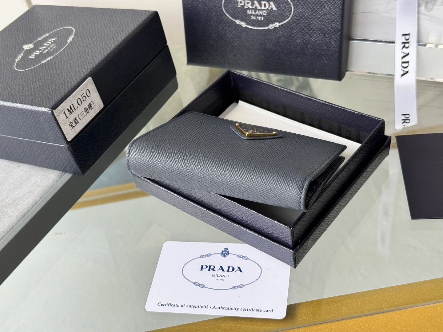 Prada 1ML050 Cross-grain Cowhide Short Wallet