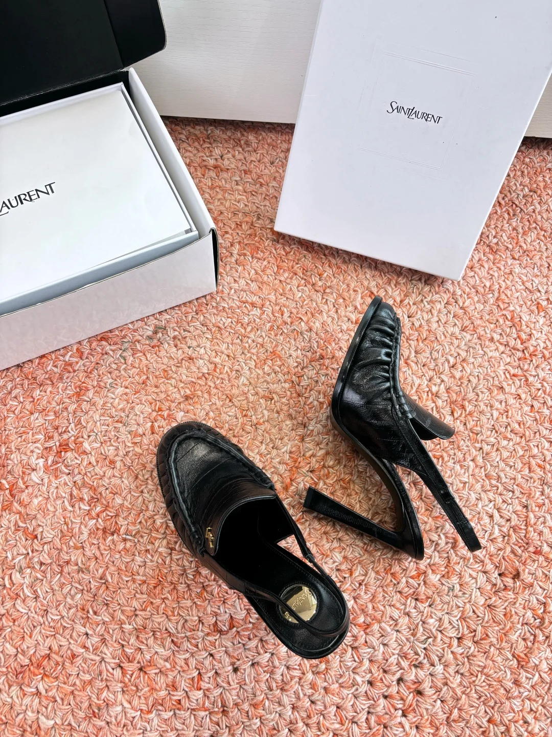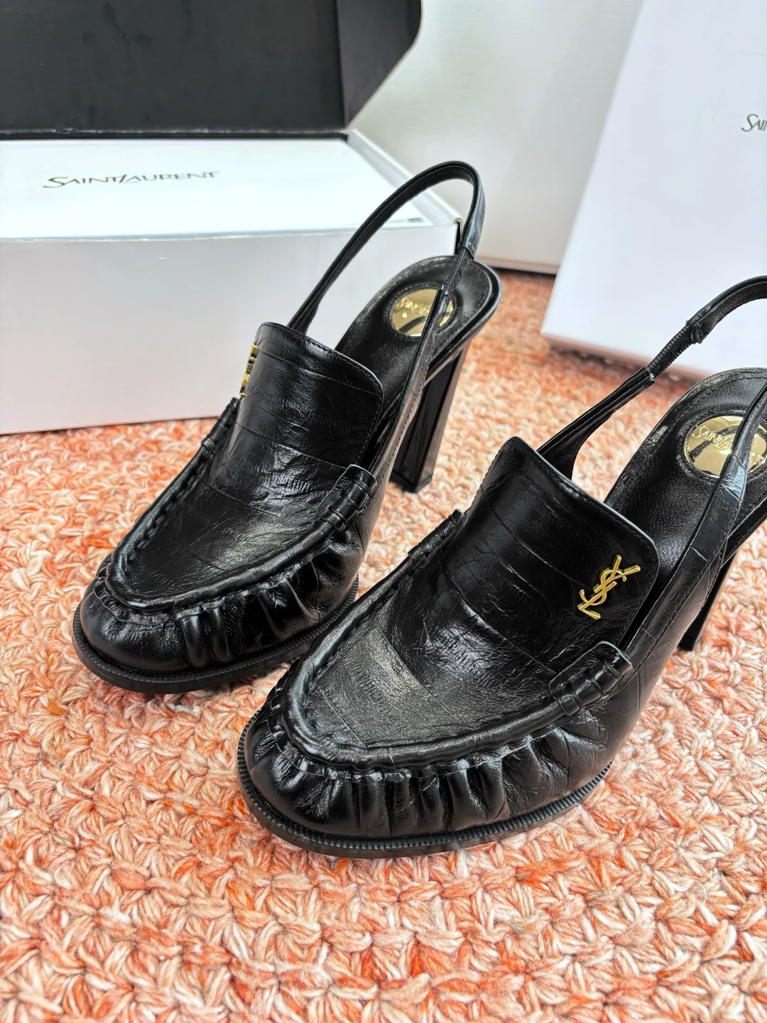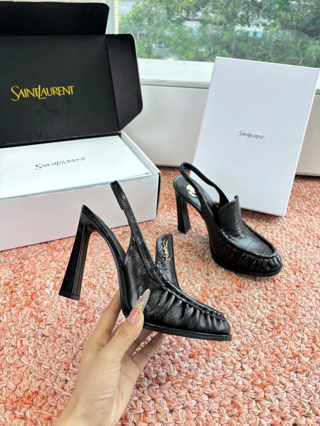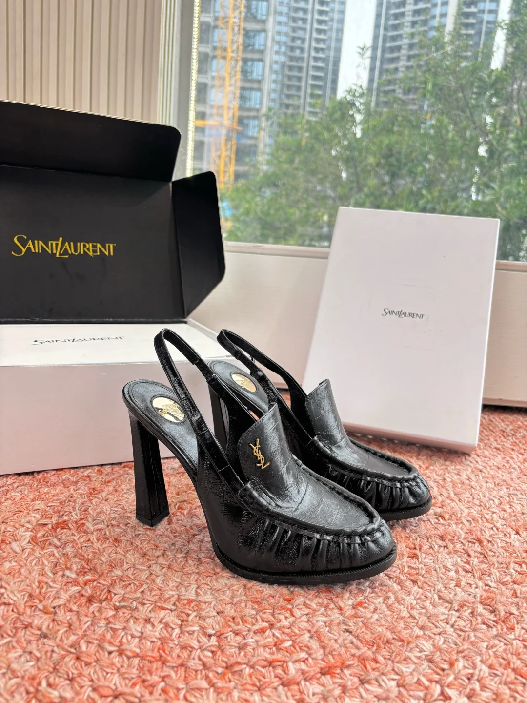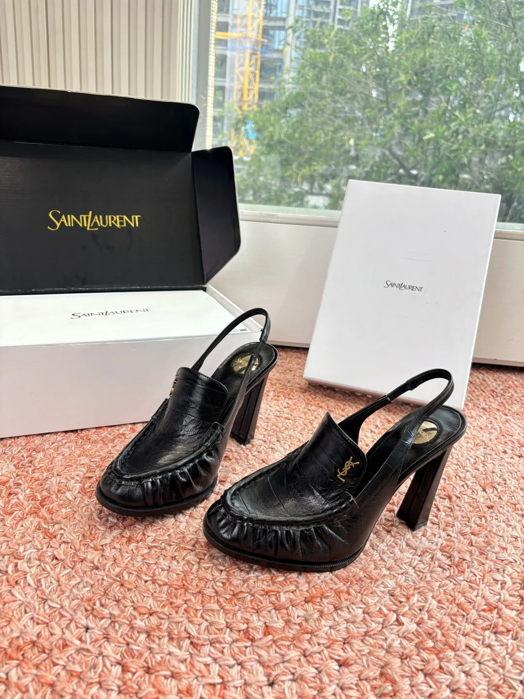 G988Saint Lauren*YSL2026 New YSL Small Logo High Heel Loafers Slippers