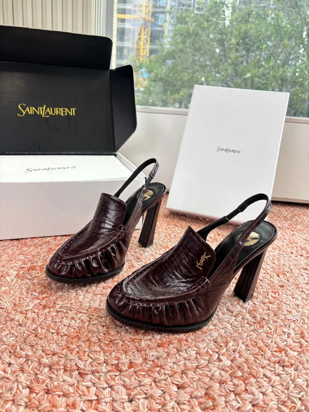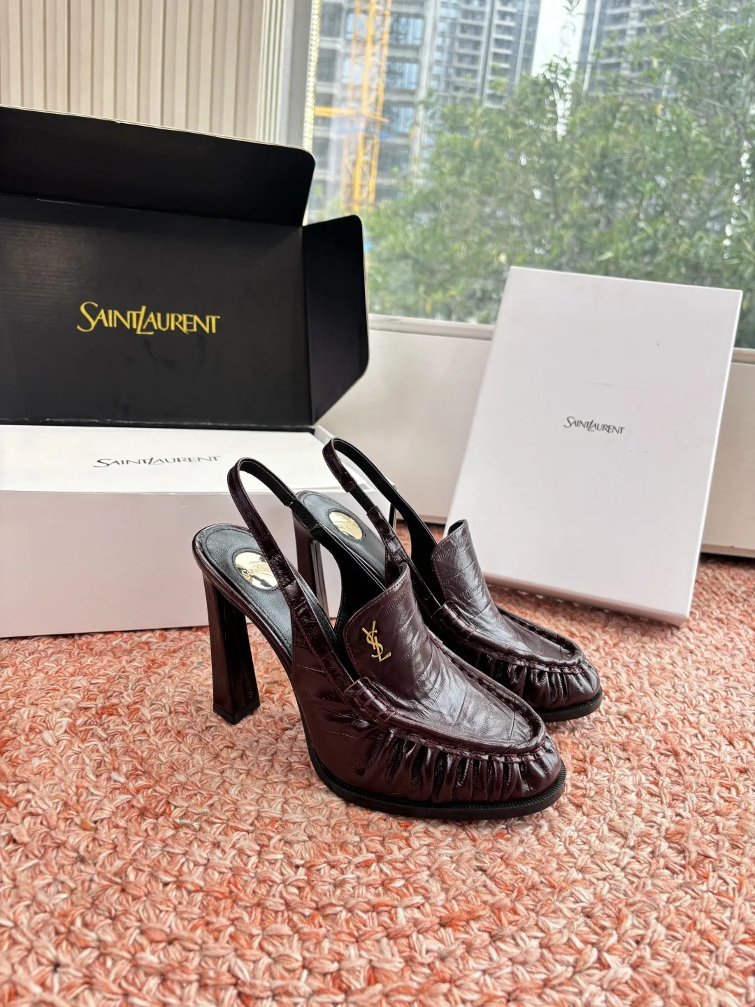 G988Saint Lauren*YSL2026 New YSL Small Logo High Heel Loafers Slippers