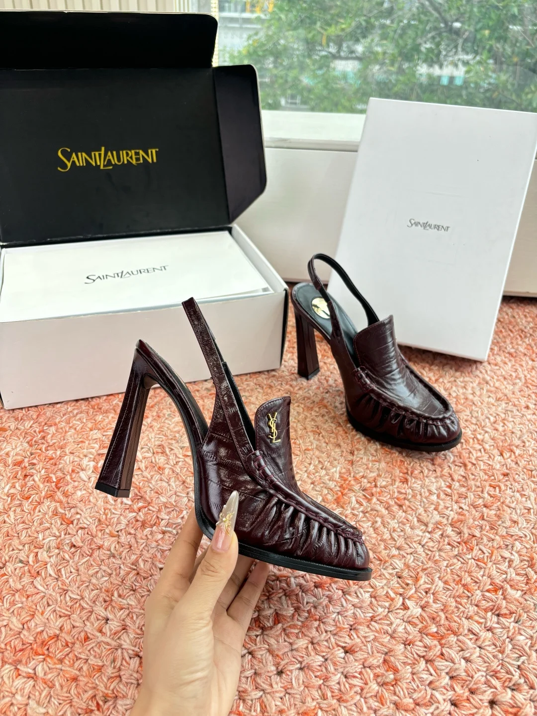 SAINT LAURENT 2026 New YSL Small Logo High Heel Loafers Slippers