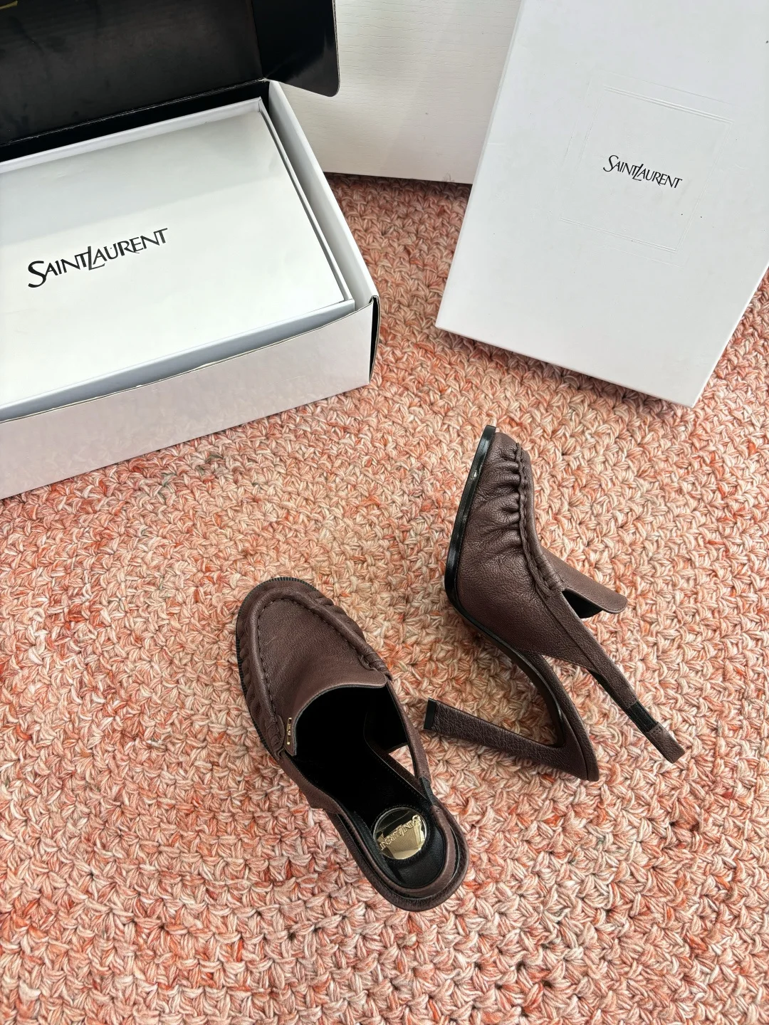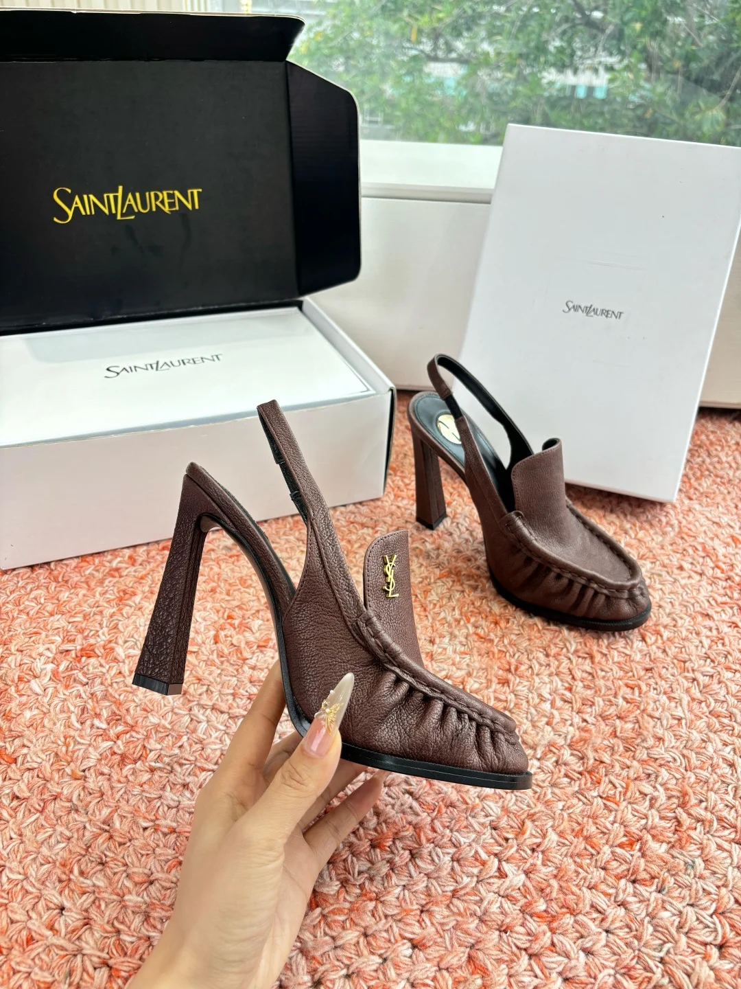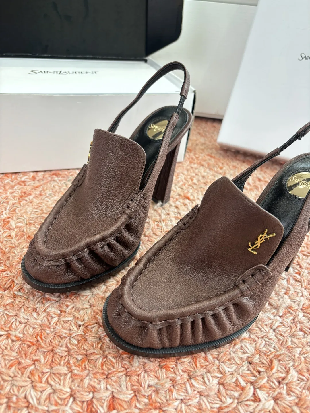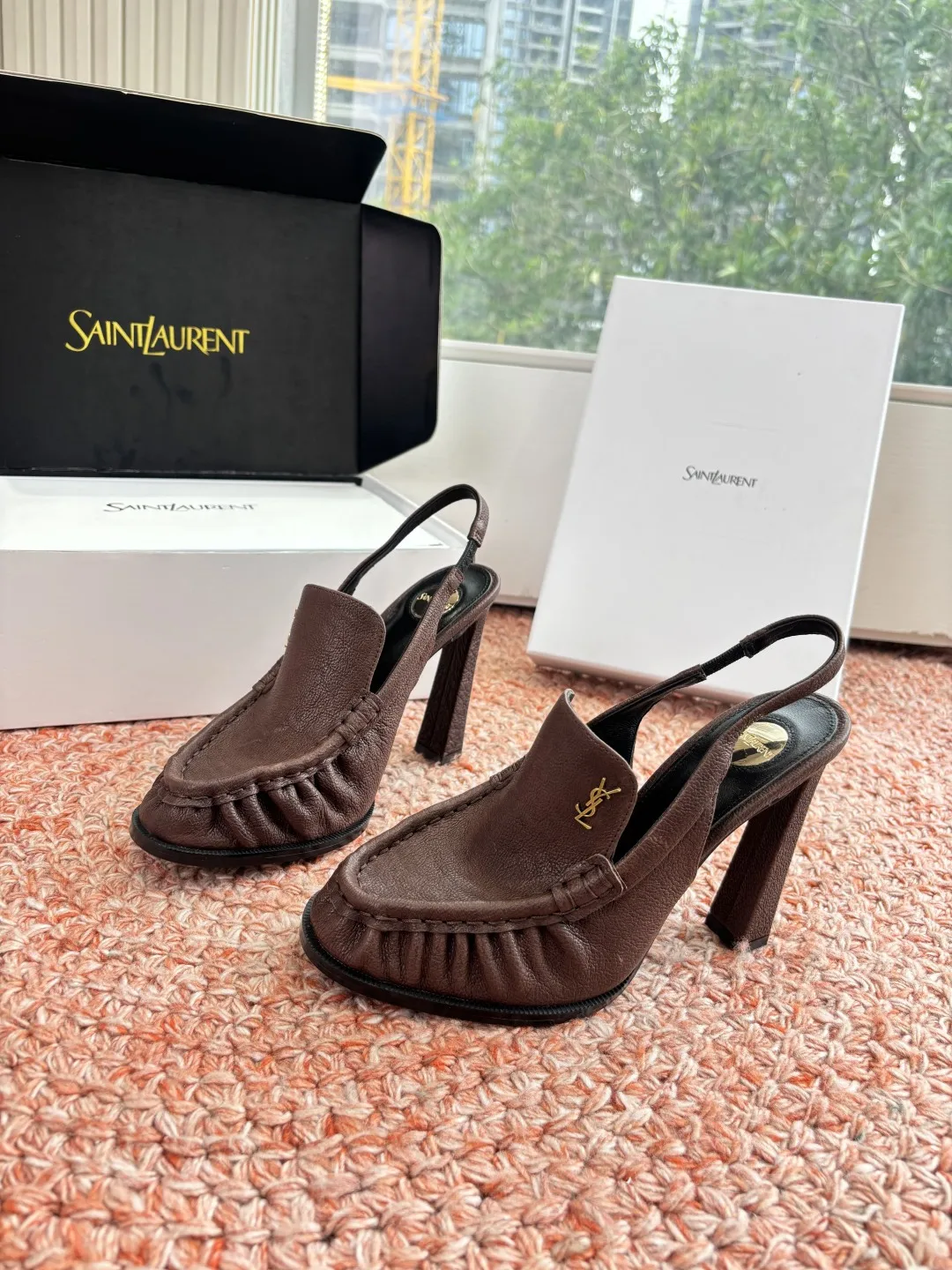 G988Saint Lauren*YSL2026 New YSL Small Logo High Heel Loafers Slippers