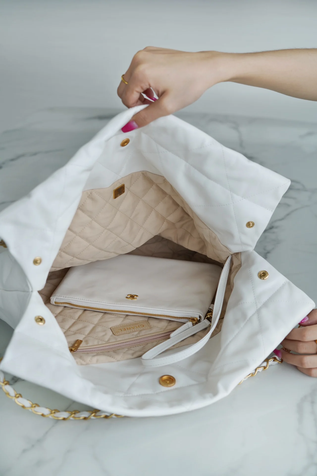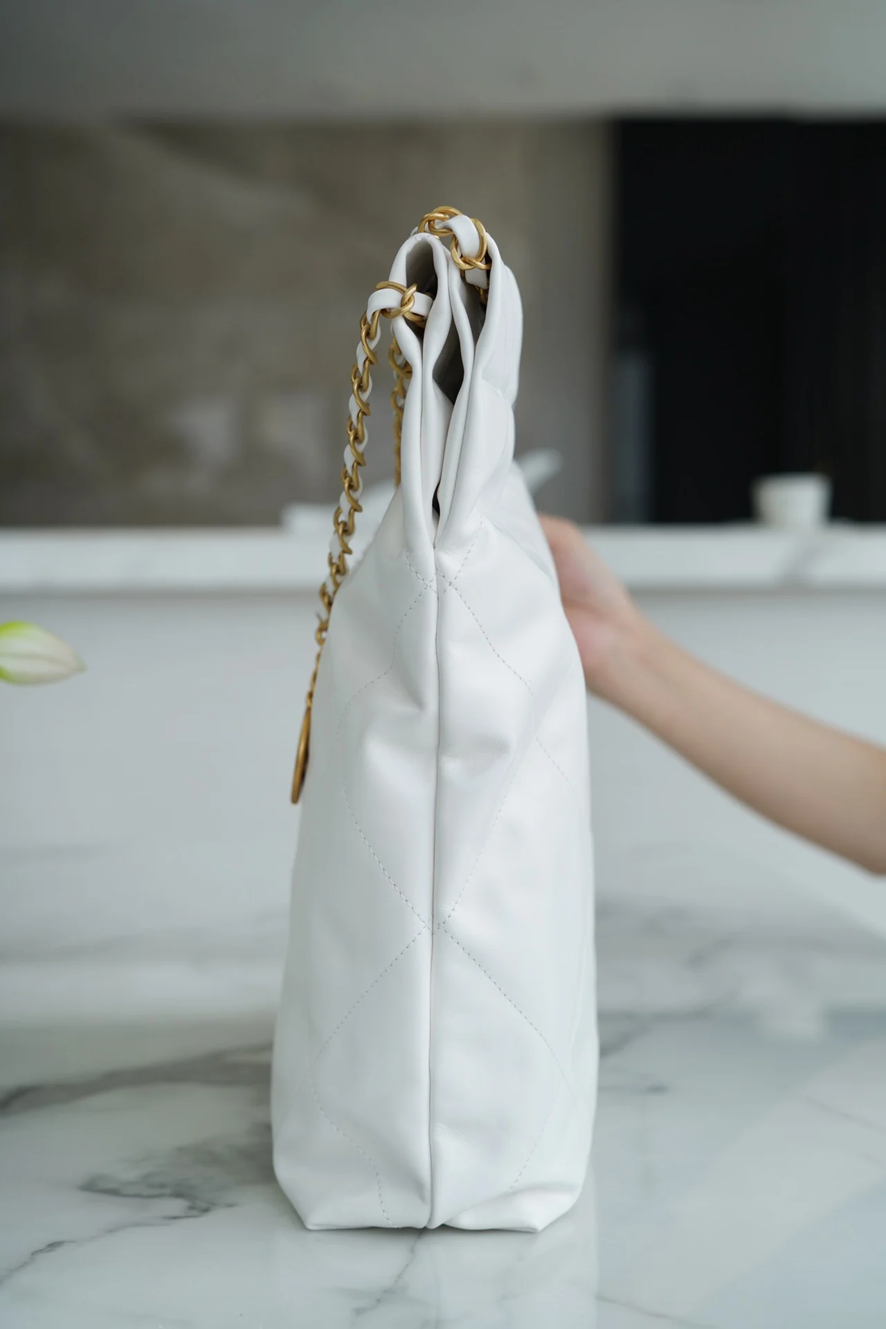 Top-tier original factory all-steel, scan code official website 𝗖𝗛𝗔𝗡𝗘𝗟 𝟐𝟐𝗣 Spring Summer new collection, 𝟐𝟐 handbag, genuine surplus leather, medium size white gold, using Italian ..