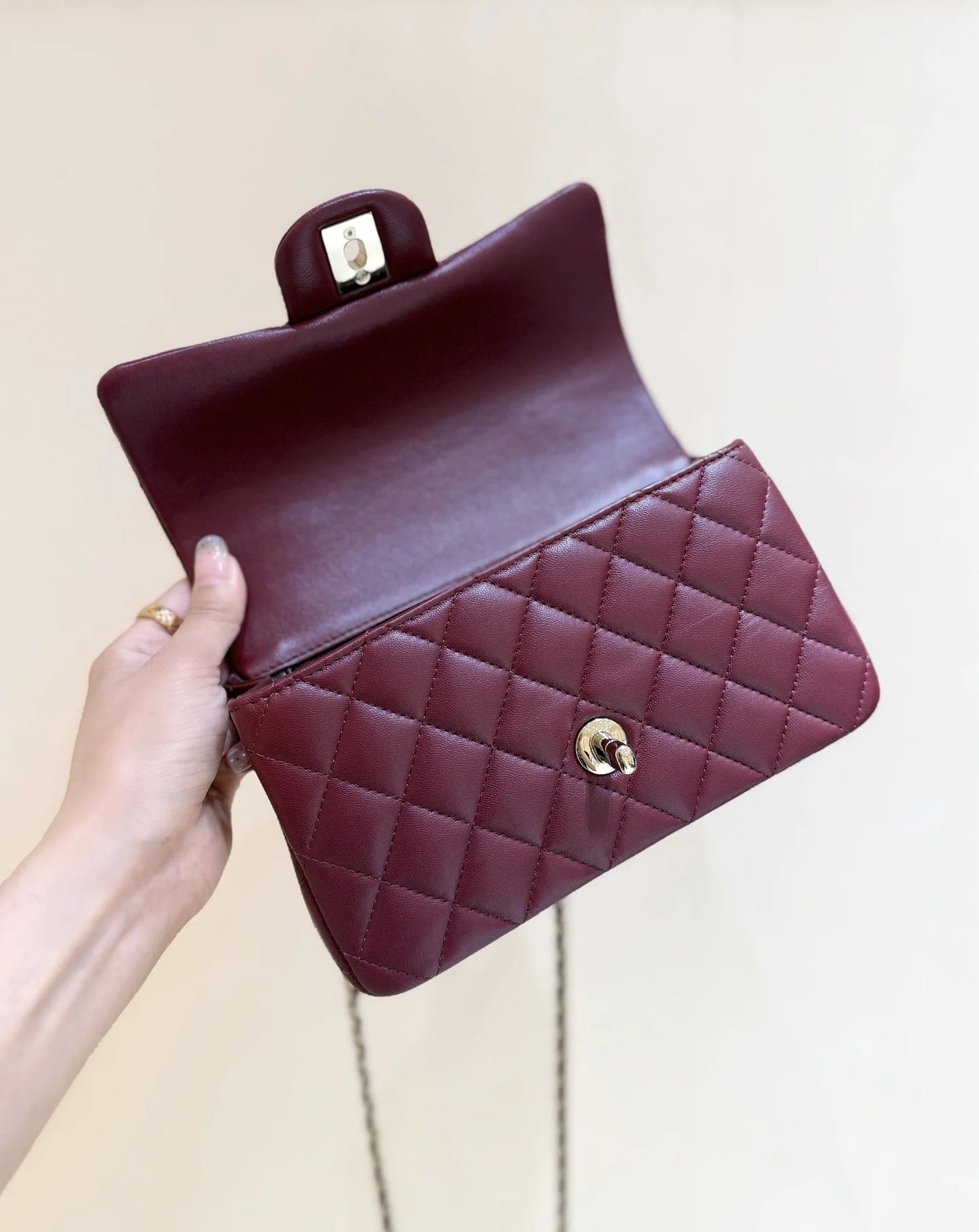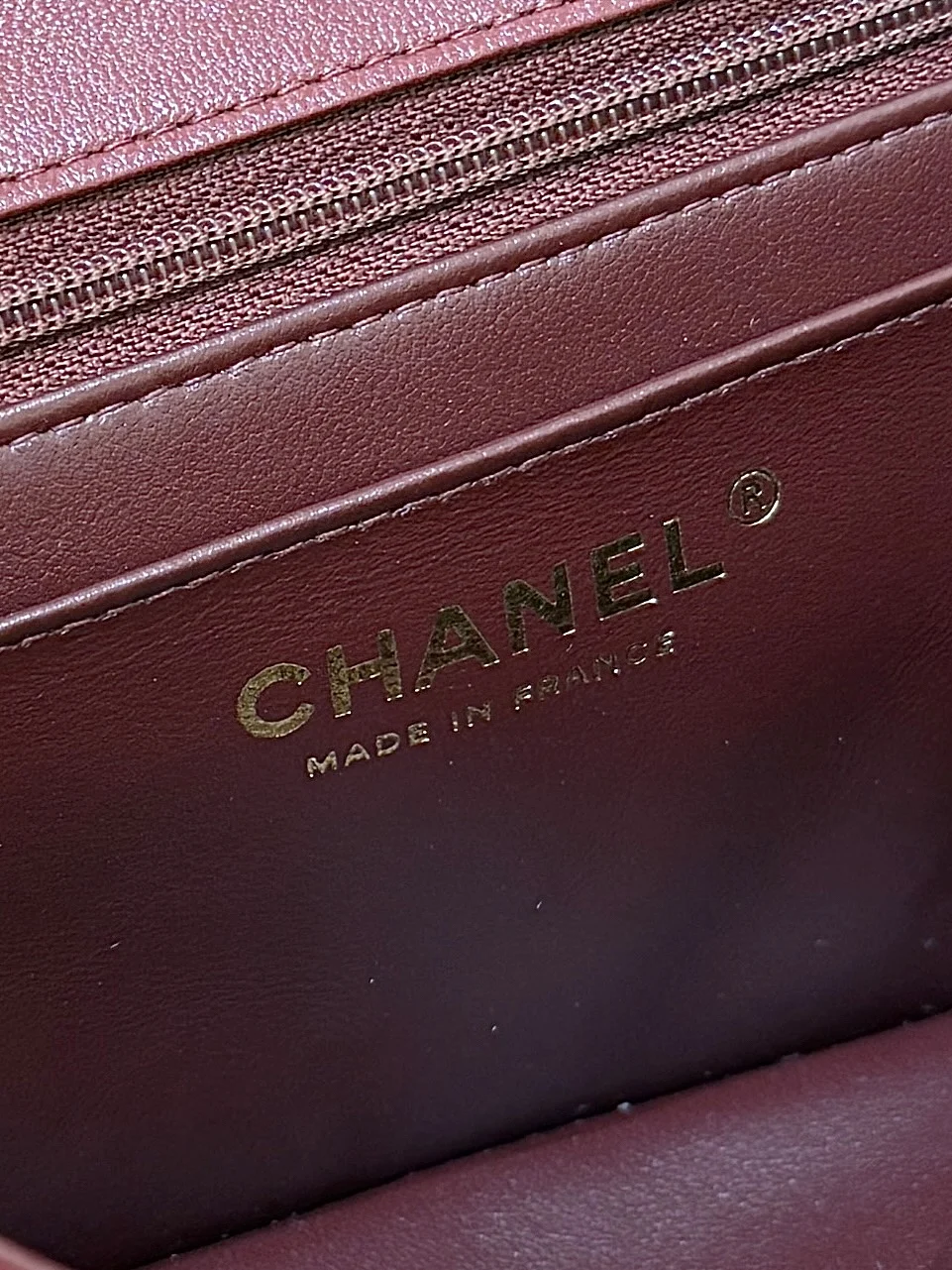 Original chip version, pure original factory handle CF Mini classic CF Mini Handle 25A new color, the most beautiful burgundy classic ceiling, super practical and durable leather: European original factory square genuine lambskin hardware: Italian imported 24k gold-plated champagne gold hardware, scarce supply, often out of stock. The feel of the entire bag is perfectly consistent with the authentic product. Size 2431: 20cm.