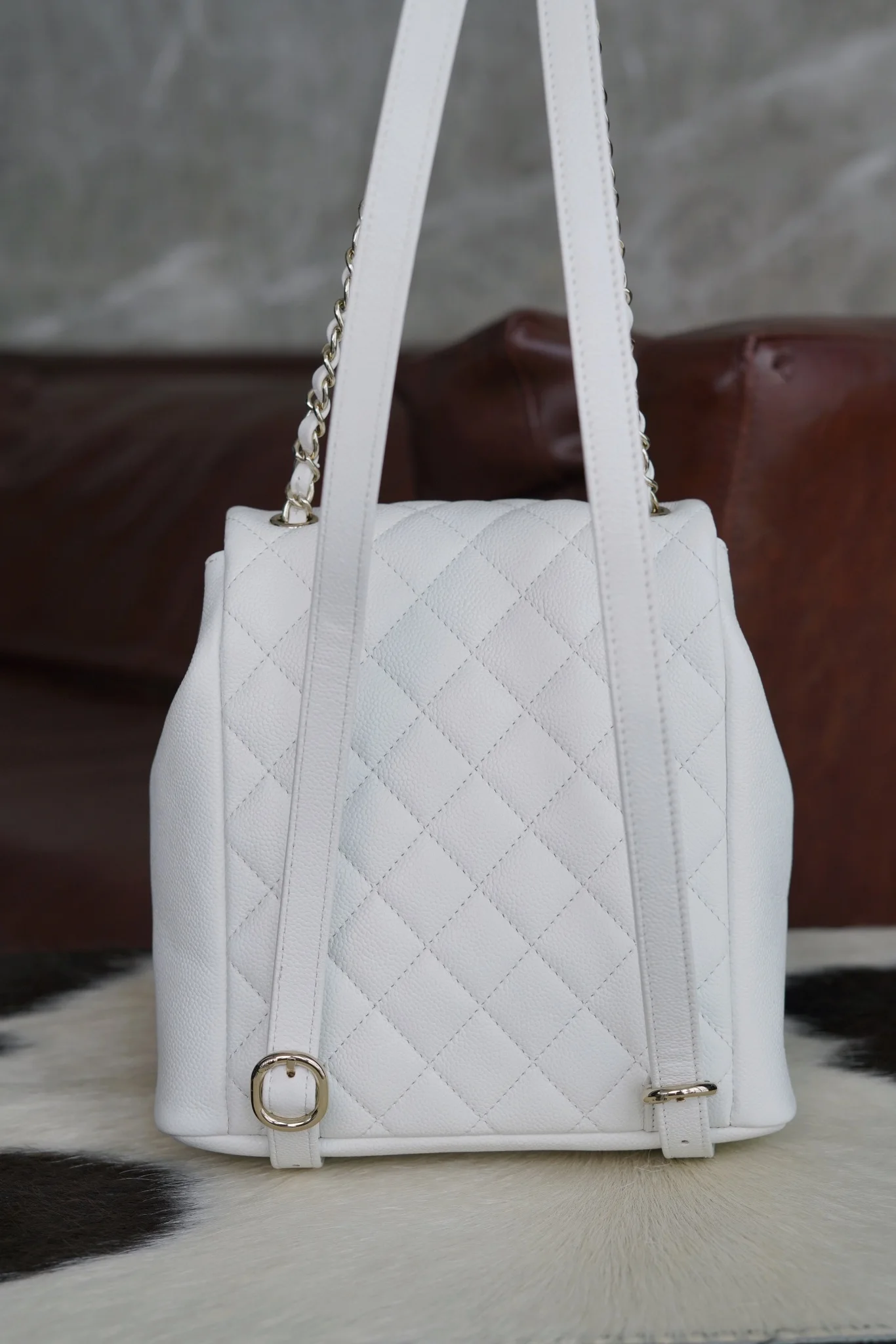 Original factory chip version 𝗖𝗛𝗔𝗡𝗘𝗟 𝟐𝟒𝐀 Duma Backpack, genuine leather, white, this season s dark horse. Made with granular embossed caviar calfskin from the French 𝐇𝐀𝐀𝐒 leathe..