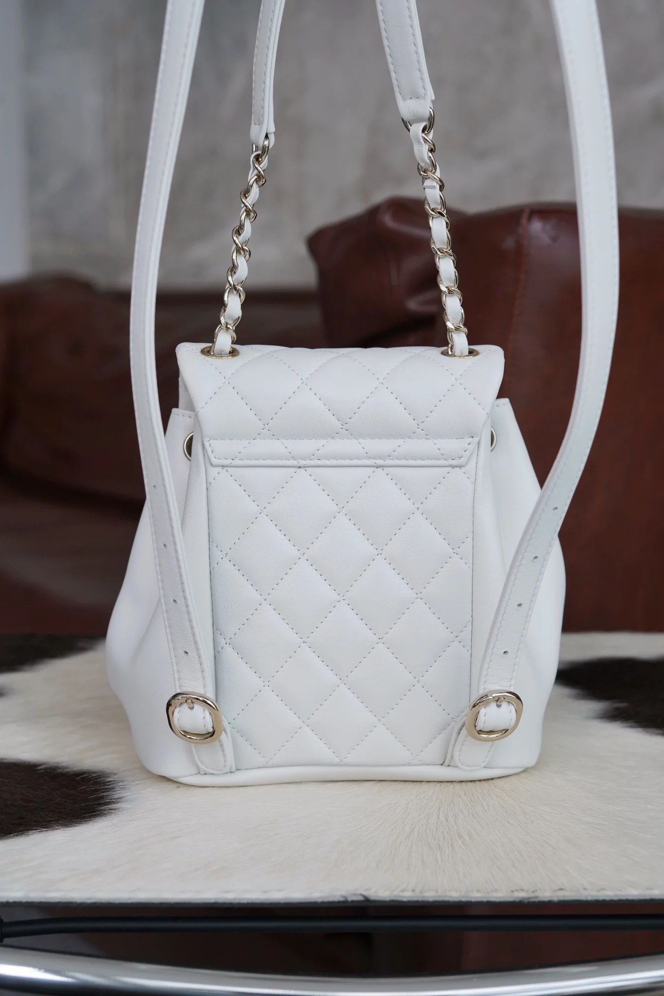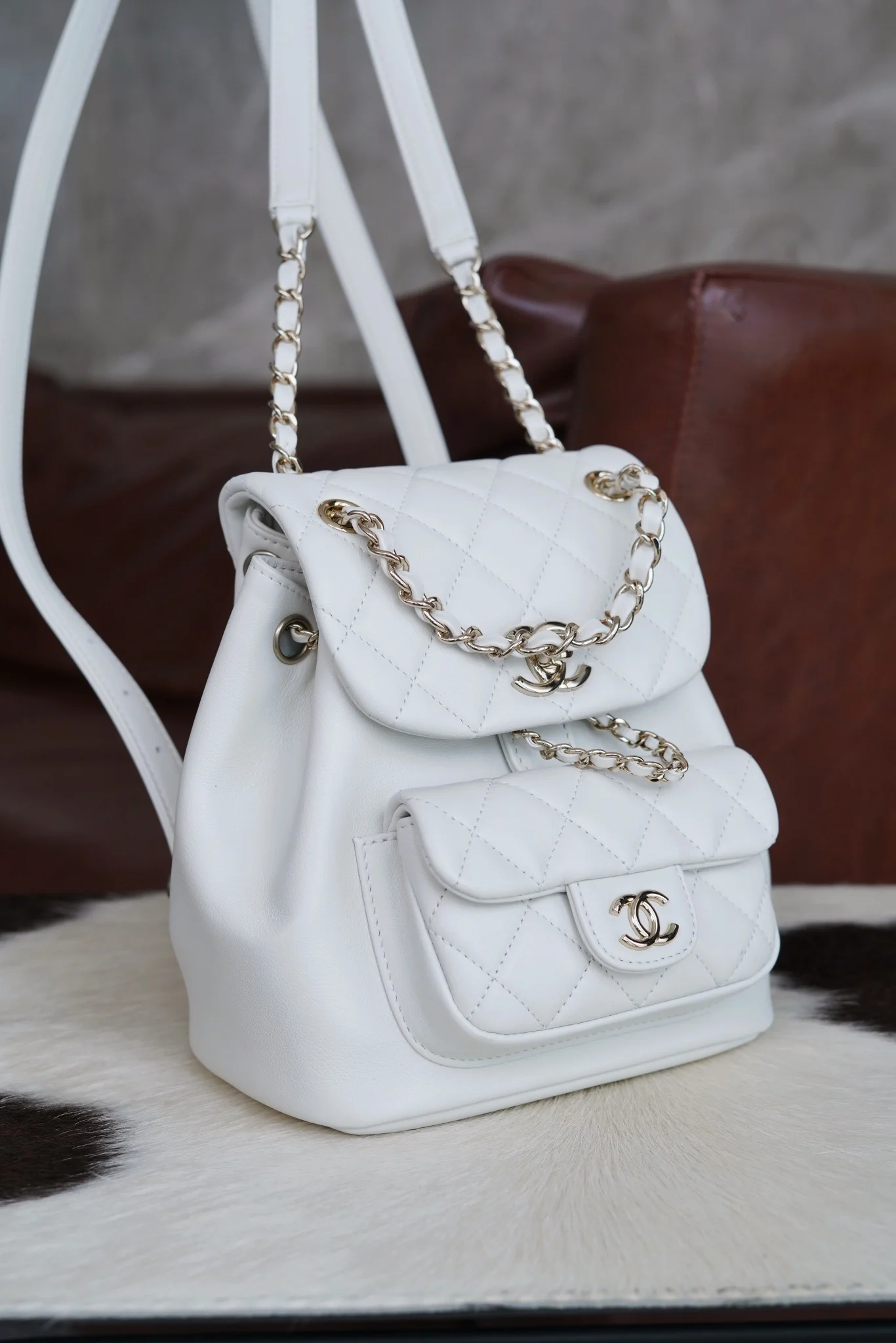 Premium Original Factory All-Steel, Scan Code Official Website 𝗖𝗛𝗔𝗘𝗡𝗟𝟐𝟒𝐩 New 𝐃𝐮𝐦𝐚 Backpack, White, Authentic Leather, French Original Factory Plain First-Grade Calfskin, Soft Lu..