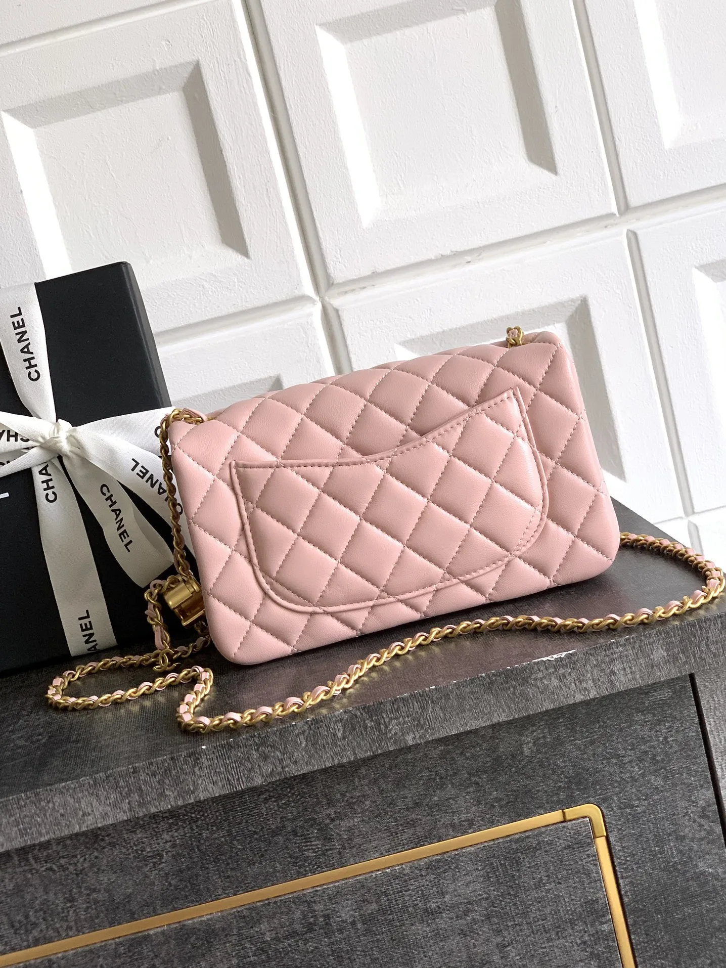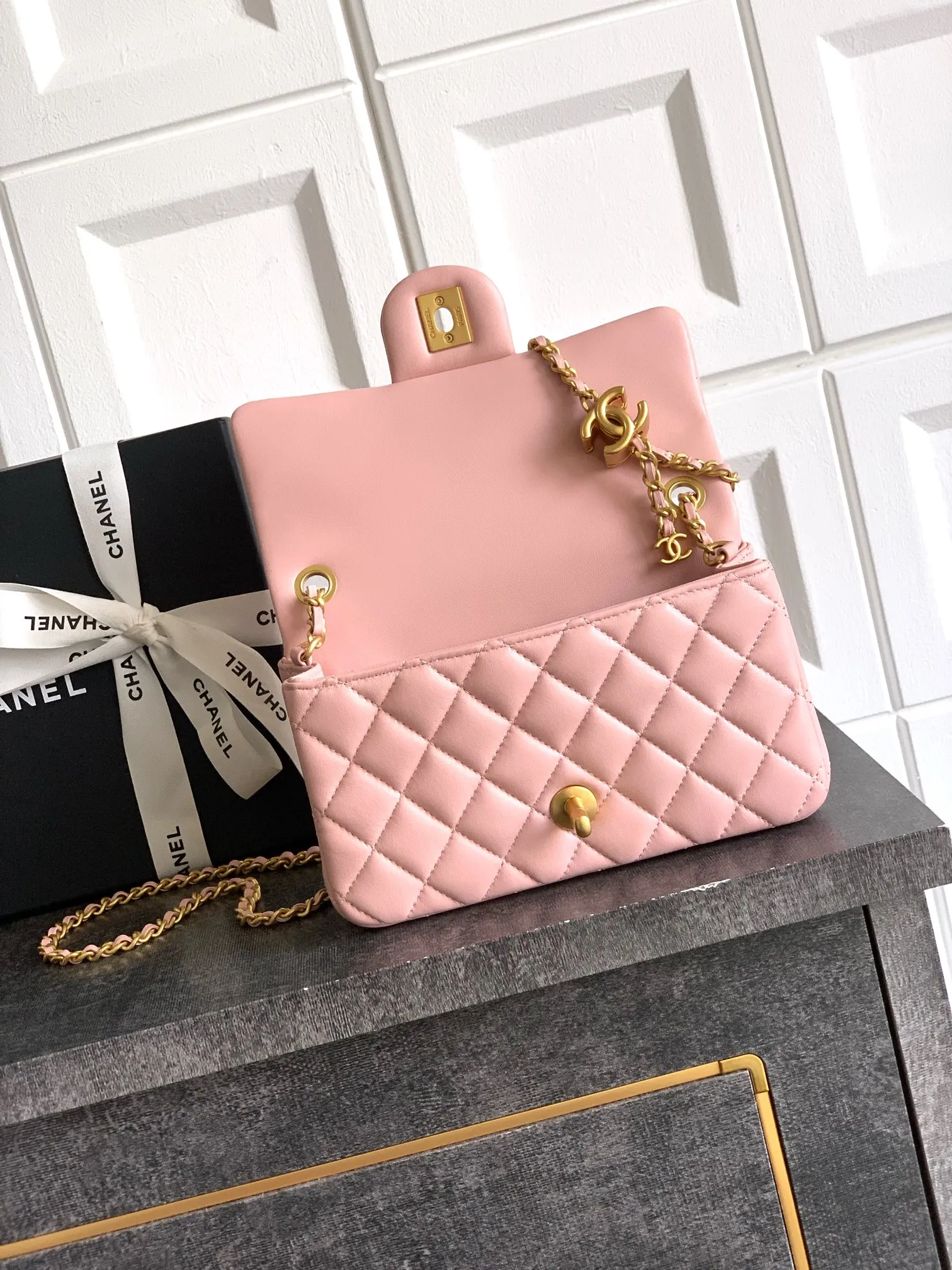 Extra Grade Old Factory Sakura Pink Medium Mini 20cm CHANEL 25B Double C Adjustable Buckle Square Vanity Case, Return Style Double Logo Chain Bag Charmingly Explosive and Super Pretty! Always a Chanel Hot Seller, Retro Glossy Lambskin, Possessing Both the Soft and Delicate Appearance of Lambskin, and the Advantages of Cowhide s Wear Resistance and Easy Care Distressed Retro Hardware, Smooth Glossy Leather, Small and Exquisite Double Adjustable Logo Embellishments on Both Ends of the Bag Chain, etc... Adjustable Chain Various Styles as You Wish Square Bag Shape Can be worn on the Shoulder, Crossbody, or Carried by Hand, Versatile for Outfits. Dimensions: 23.5x14.5x7cm Mini 20x13x7cm Square Vanity Case: 18x13.5x7cm