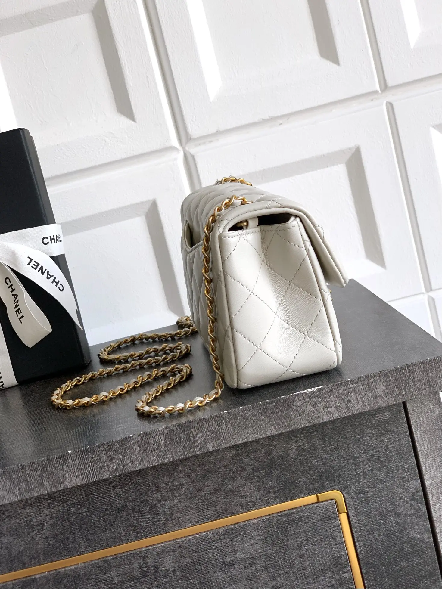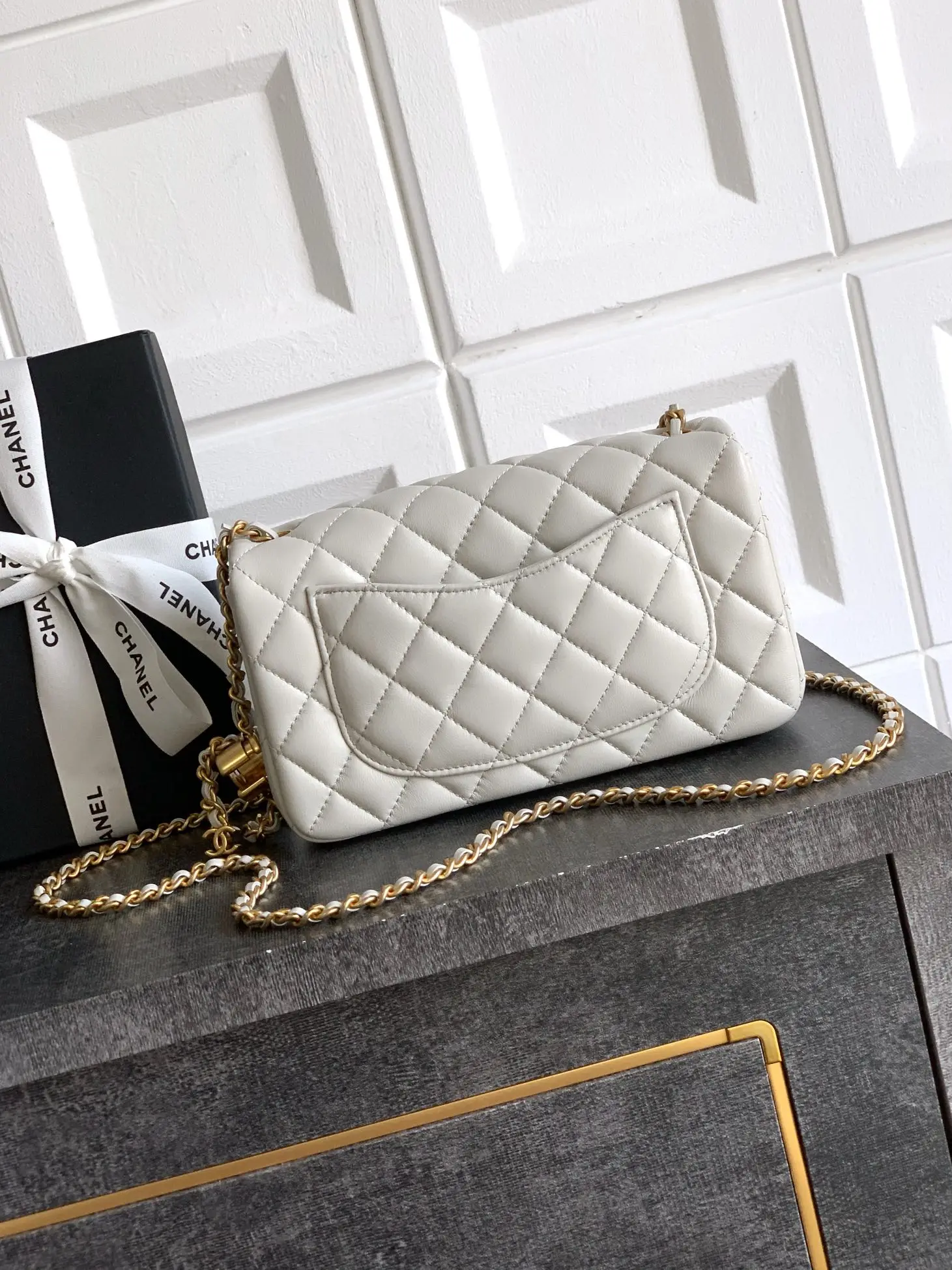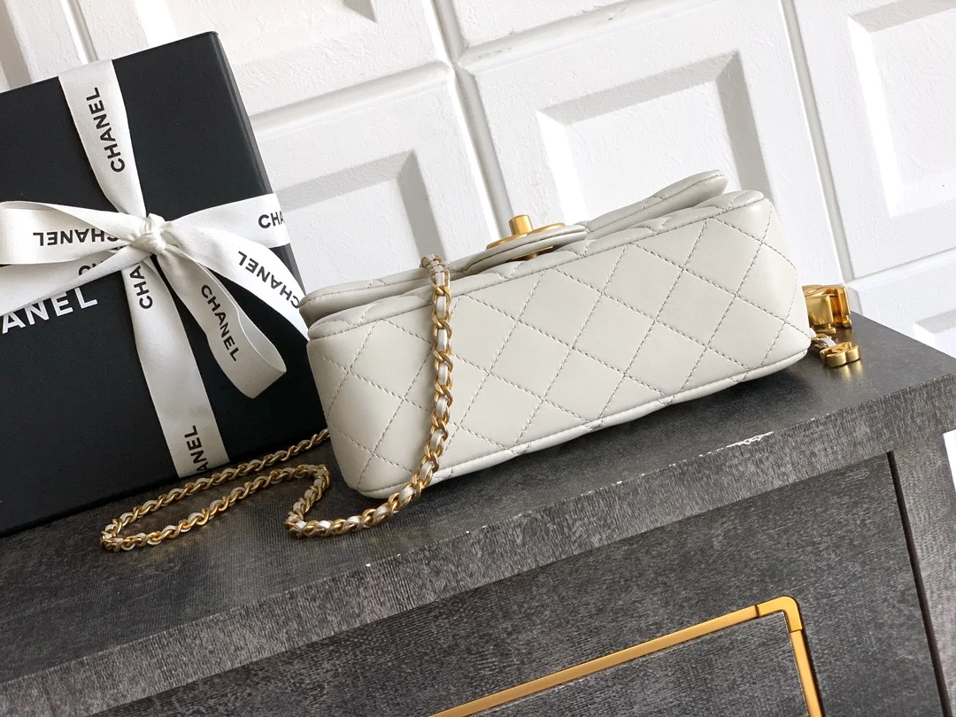 Extra Grade Old Factory Grayish-White Medium Mini 20cm CHANEL 25B Double C Adjustable Buckle Square Vanity Case, Return Style Double Logo Chain Bag Charmingly Explosive and Super Pretty! Always a Chanel Hot Seller, Retro Glossy Lambskin, Possessing Both the Soft and Delicate Appearance of Lambskin, and the Advantages of Cowhide s Wear Resistance and Easy Care Distressed Retro Hardware, Smooth Glossy Leather, Small and Exquisite Double Adjustable Logo Embellishments on Both Ends of the Bag Chain, etc... Adjustable Chain Various Styles as You Like Square Bag Shape Can be Carried on One Shoulder, Crossbody, or Hand-Carried, Versatile for Outfits. Dimensions: 23.5x14.5x7cm Mini 20x13x7cm Square Vanity Case: 18x13.5x7cm