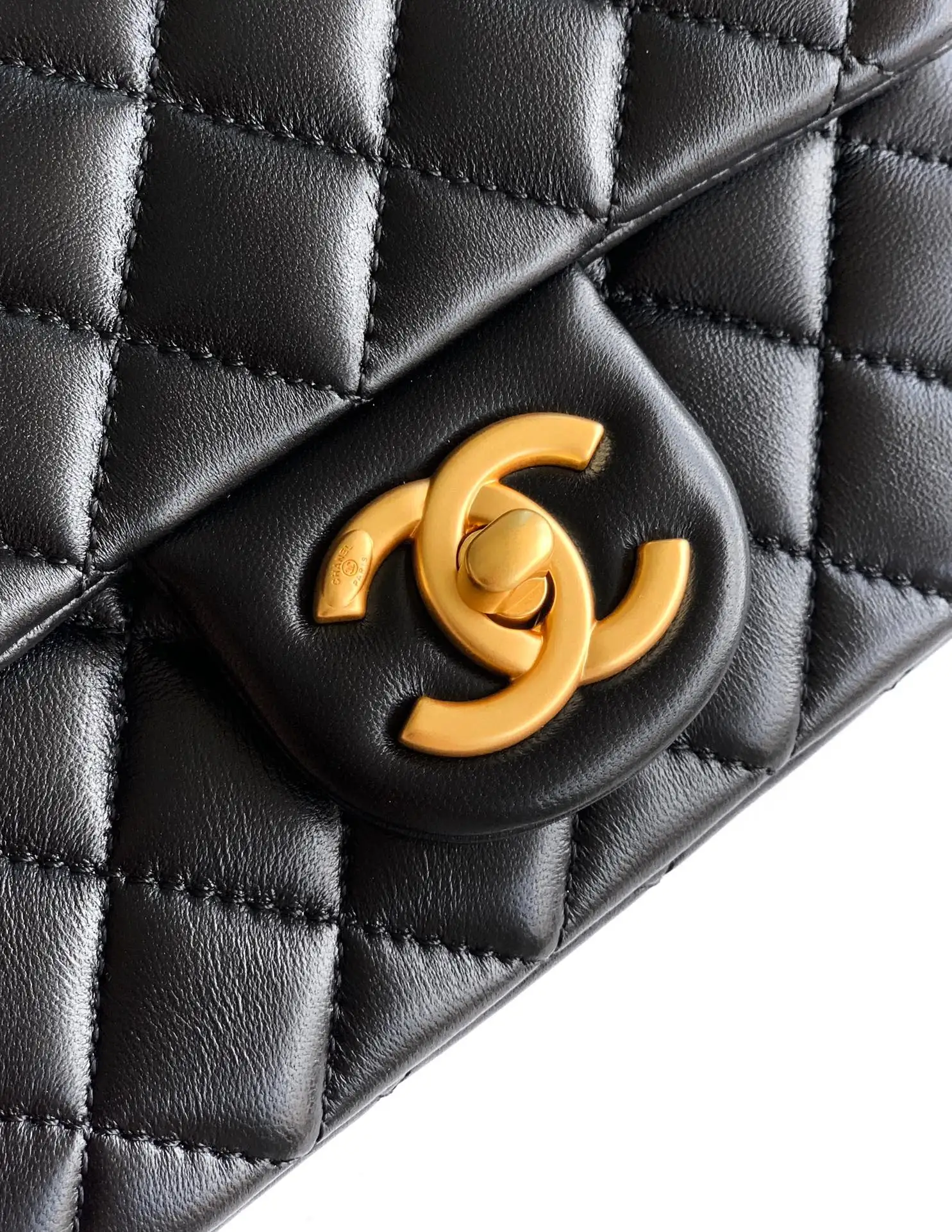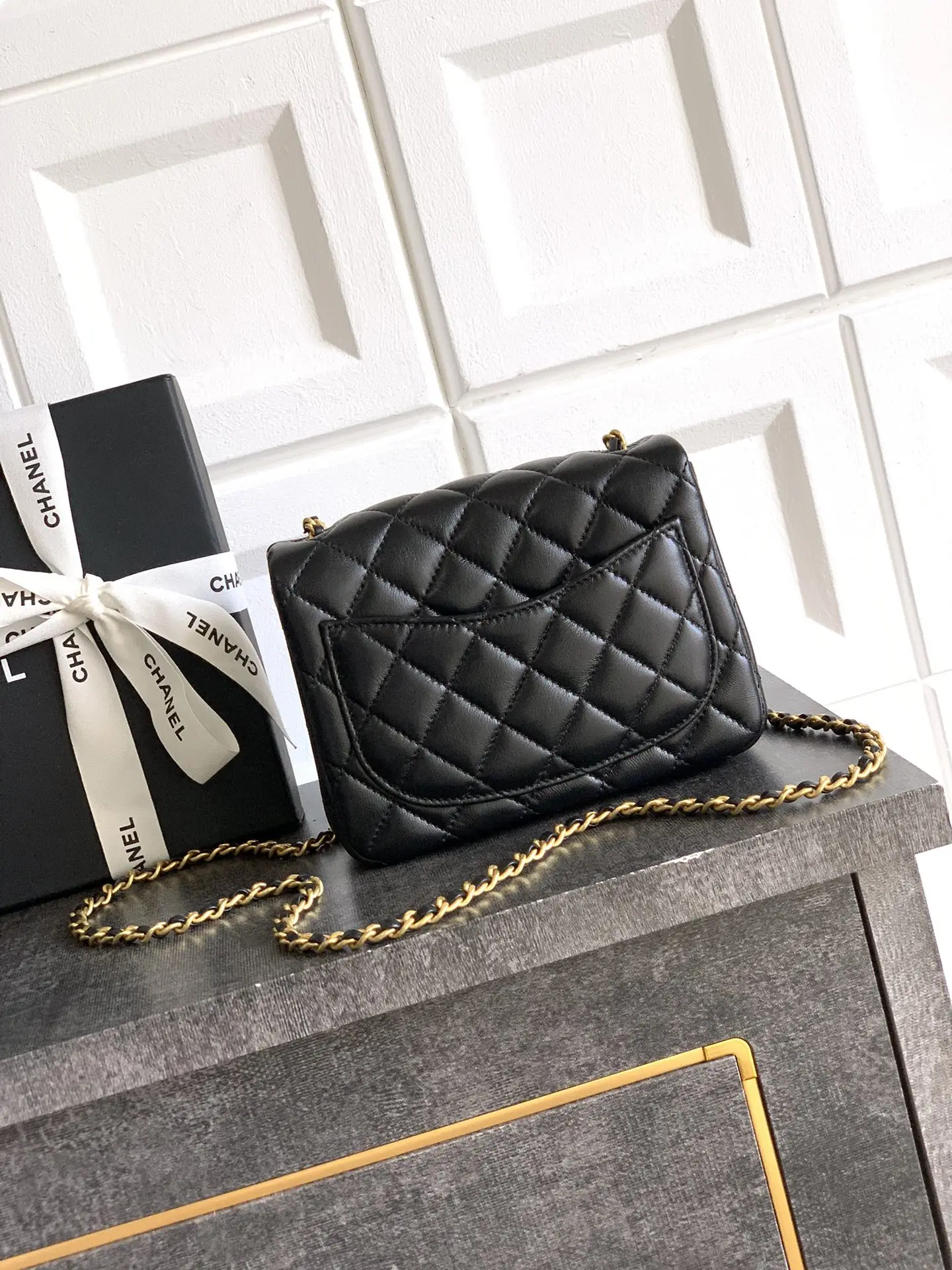 Top-tier Original Factory Chubby 18cm CHANEL 25B Double C Adjustable Buckle Chubby Square Bag, Return Edition Double Logo Chain Bag. Explosive charm and stunning appearance! Always a popular Chanel retro-style glossy lambskin, possessing both the soft and delicate appearance of lambskin and the wear-resistant and easy-to-maintain advantages of cowhide. Distressed retro hardware, smooth glossy leather, small and exquisite double adjustable logo embellishments on both ends of the bag chain, etc... Adjustable chain for various styles as desired. The square bag can be worn on the shoulder, crossbody, or carried by hand, versatile for any outfit. Dimensions: 23.5x14.5x7cm Mini 20x13x7cm Chubby Square: 18x13.5x7cm
